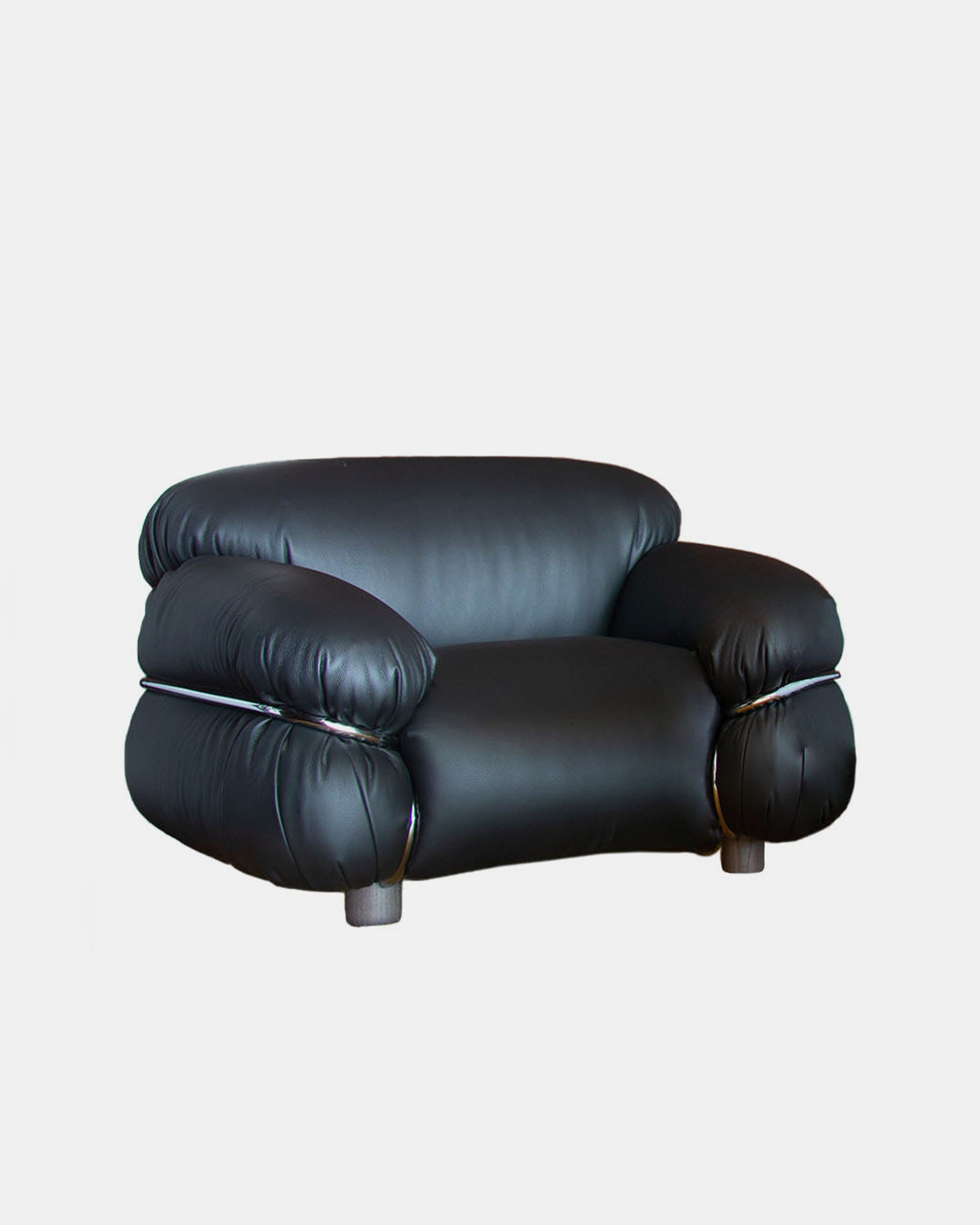 Frattinis begavede designkonsept produserer sitteelementer med sensuelle, sjenerøst harmoniske, innbydende former. Den har en eksponert, omsluttende krom- eller pulverlakkert rørformet metallstruktur som former møbeltrekket, og blir med det i en enorm, myk, sømløs omfavnelse. Polstringen, pyntet med ekstremt sofistikerte detaljer, er fullstendig håndlaget med ekstraordinære håndverkerferdigheter, noe som gjør dette til et unikt mesterverk.