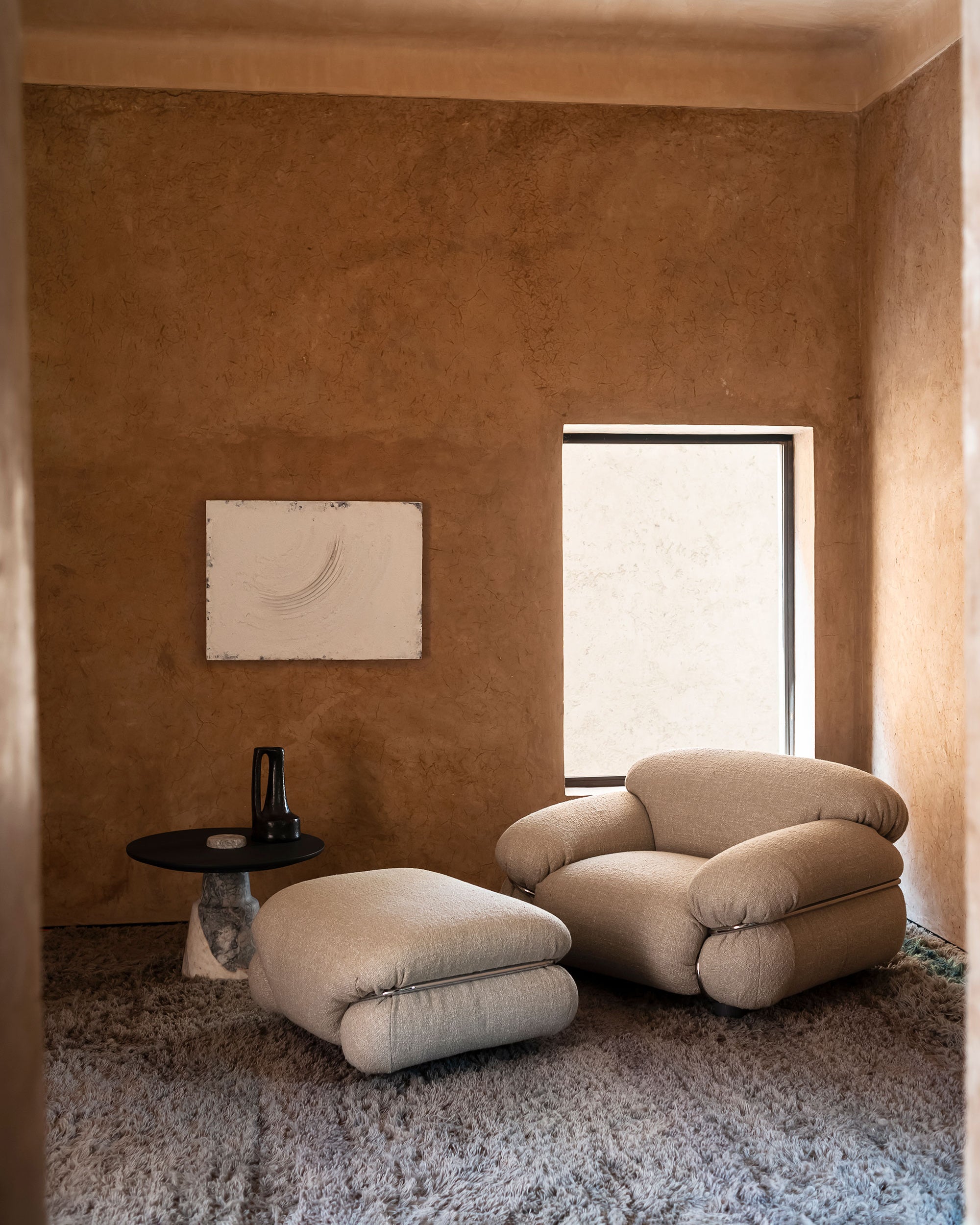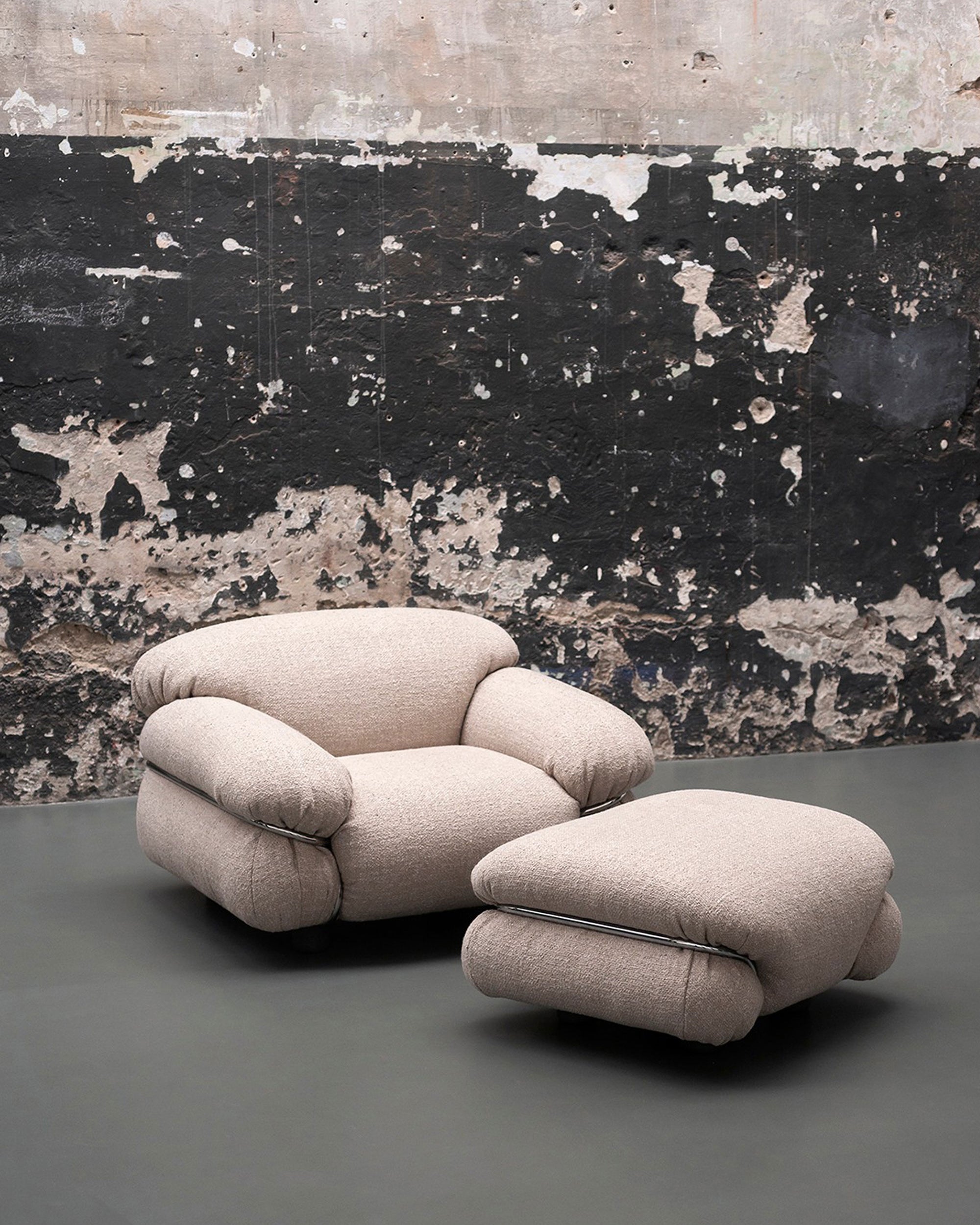 Sesann Ottoman fra Tacchini fremkaller følelser av varme og sensualitet, takket være den rørformede metallrammen som fungerer som en arkitektonisk struktur for den myke polstringen. Sammen med lenestolen og sofaen, som ble relansert av Tacchini i 2015, fortsetter Sesann ottoman historien om en visjon for moderne livsstil, som inviterer deg til å verdsette skjønnheten og innbydelsen av autentisk komfort. De sensuelle og harmoniske formene, født fra Frattinis geniale design, blir unike i hvert enkelt møbel takket være den håndlagde polstringen, som er tilgjengelig i et bredt utvalg av farger og utførelser.
