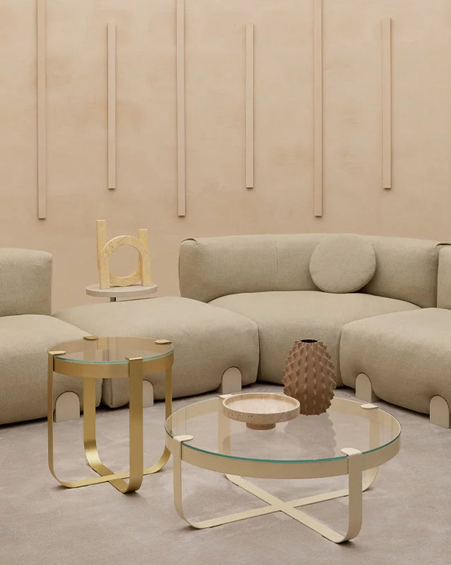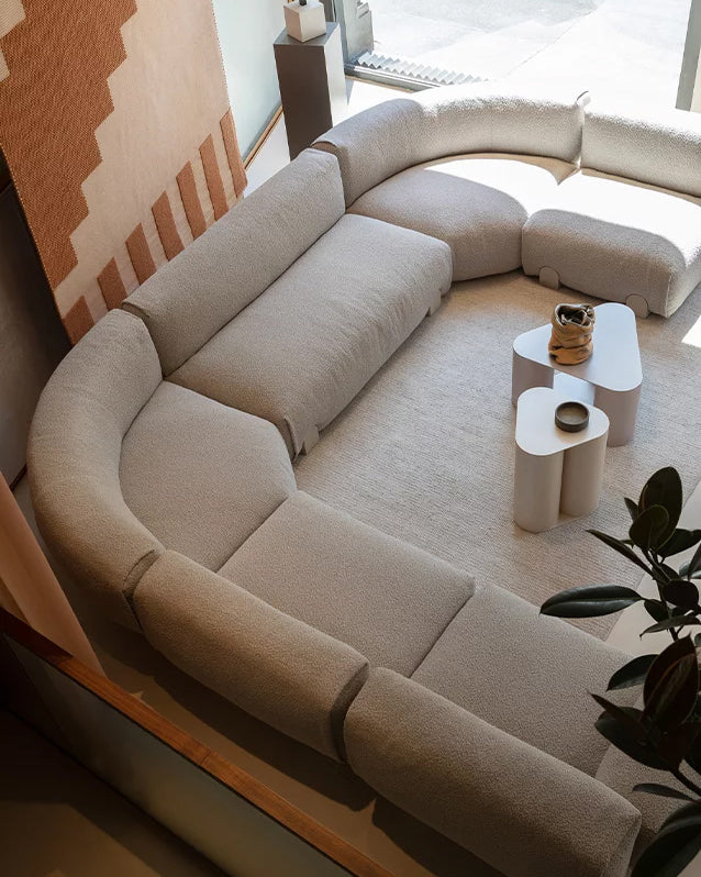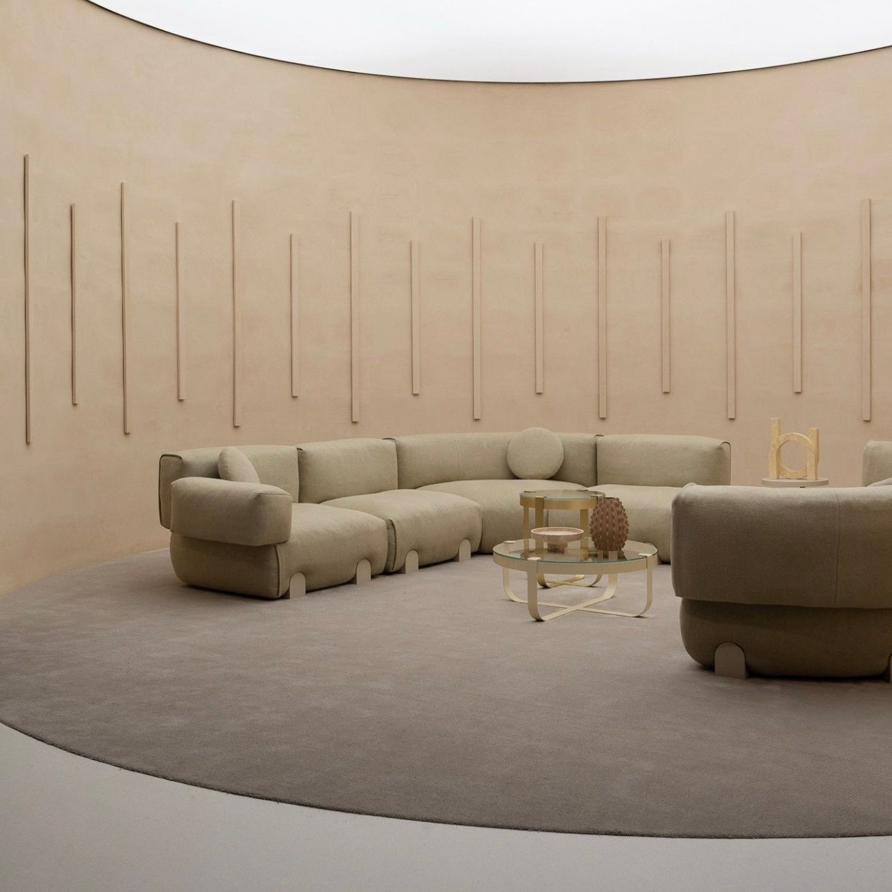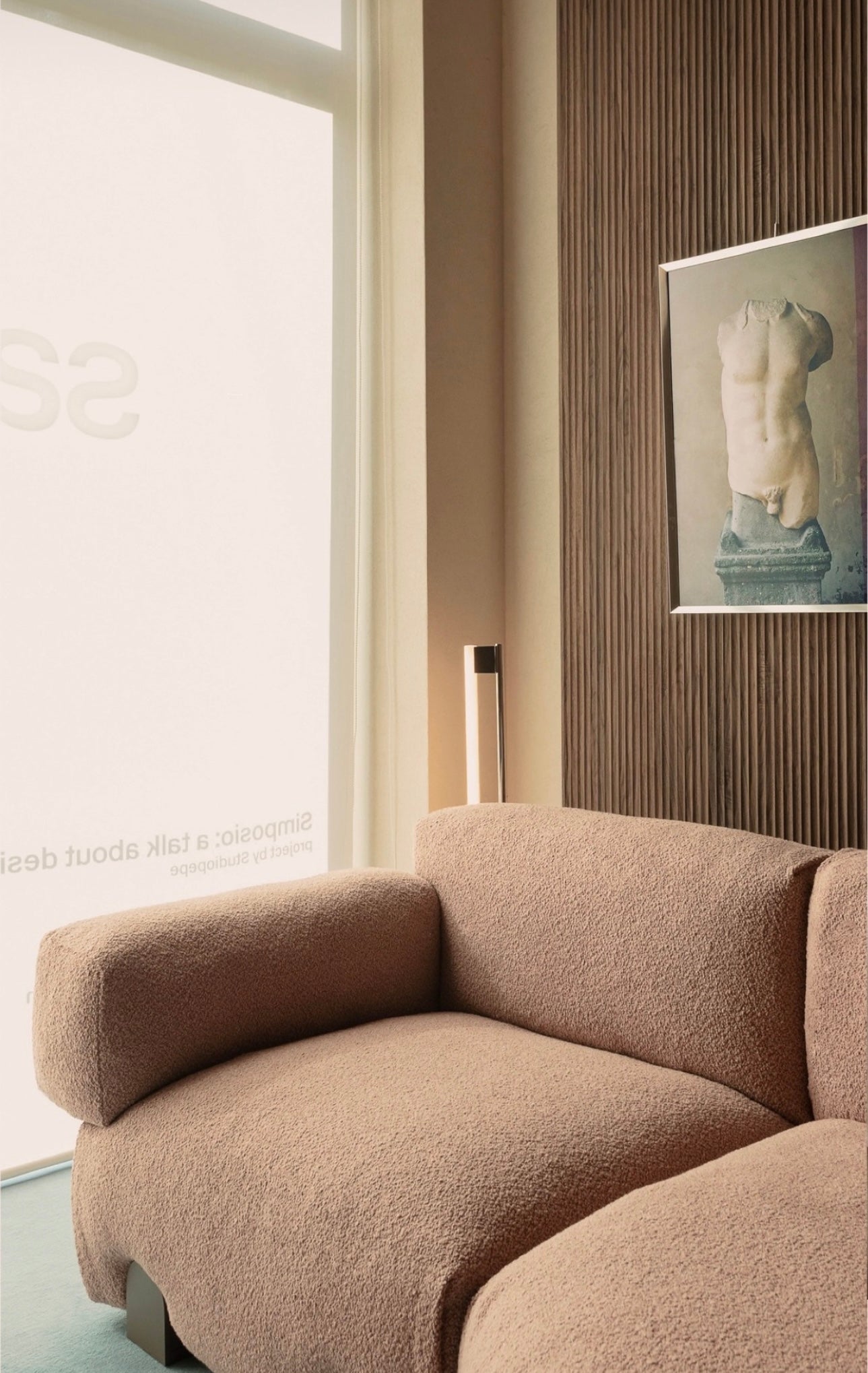 Simposio-sofaen, med sine avrundede og lineære elementer, blir et ideelt sted for gjestfrihet hvor man kan snakke om skjønnhetsmysteriet, og skape små eller store hjemlige arenaer.