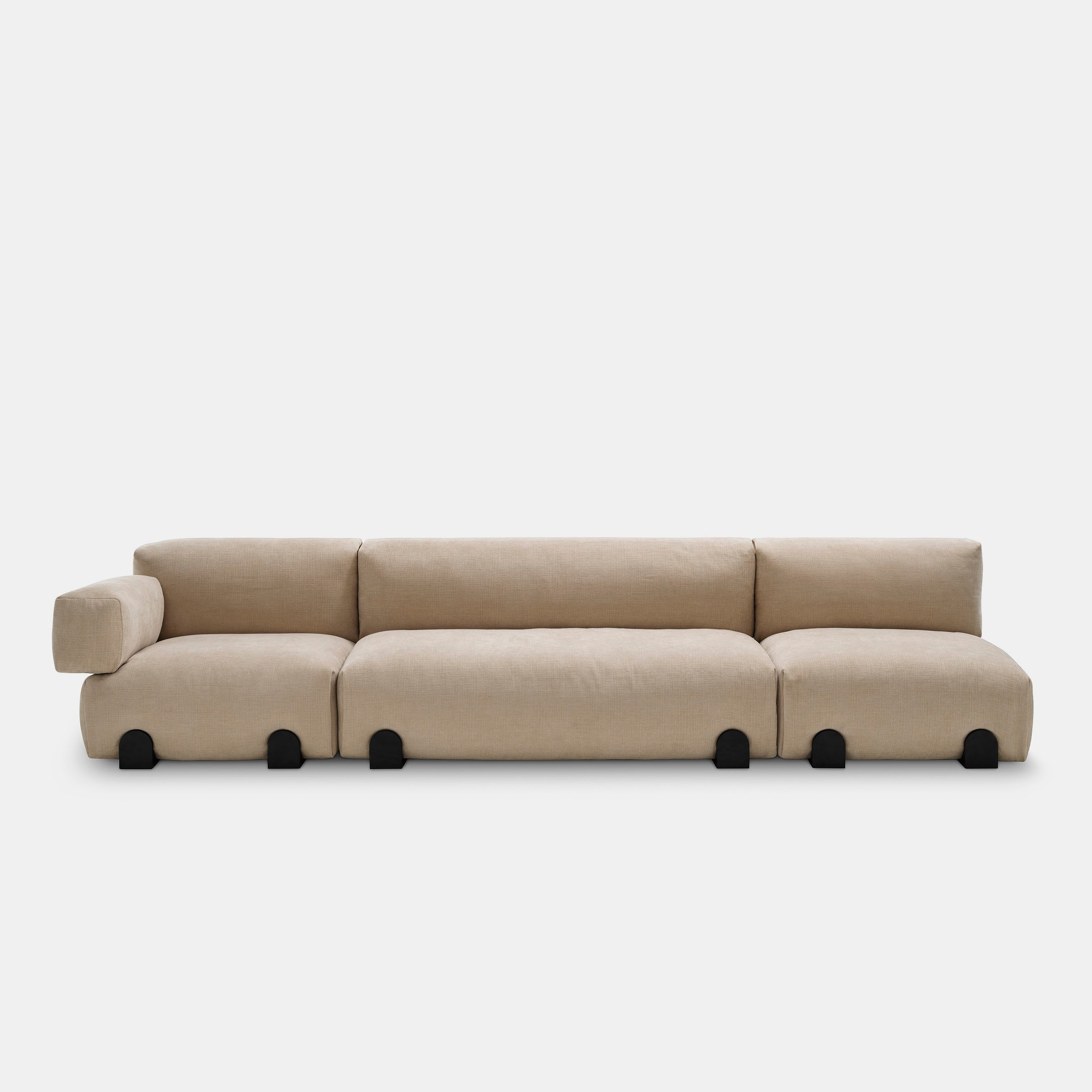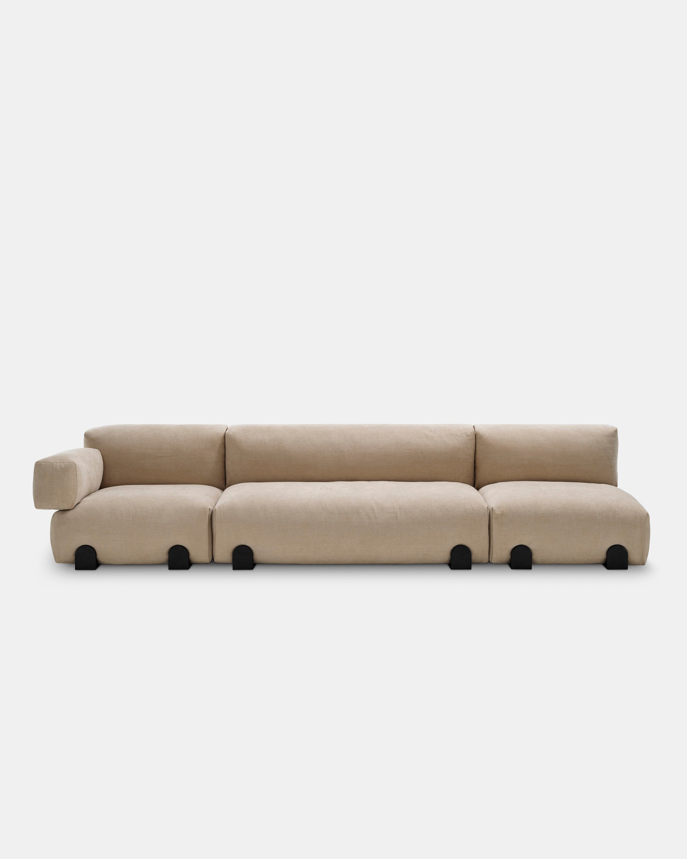 Dette er en modulsofa, det vil si det kan settes sammen etter ulike ønsker, størrelser og rom. Det finnes totalt seks moduler, som gjør at du kan bygge alt fra toseter sofa, til hjørne, sjeselong eller en hel hestesko. For mer info om sofaen se her.