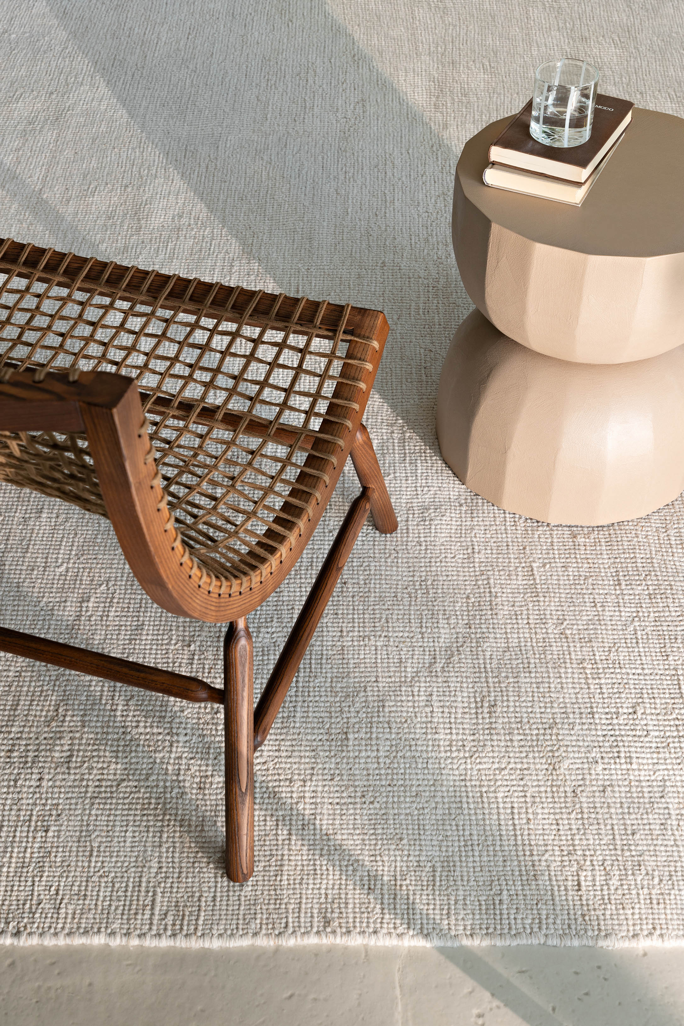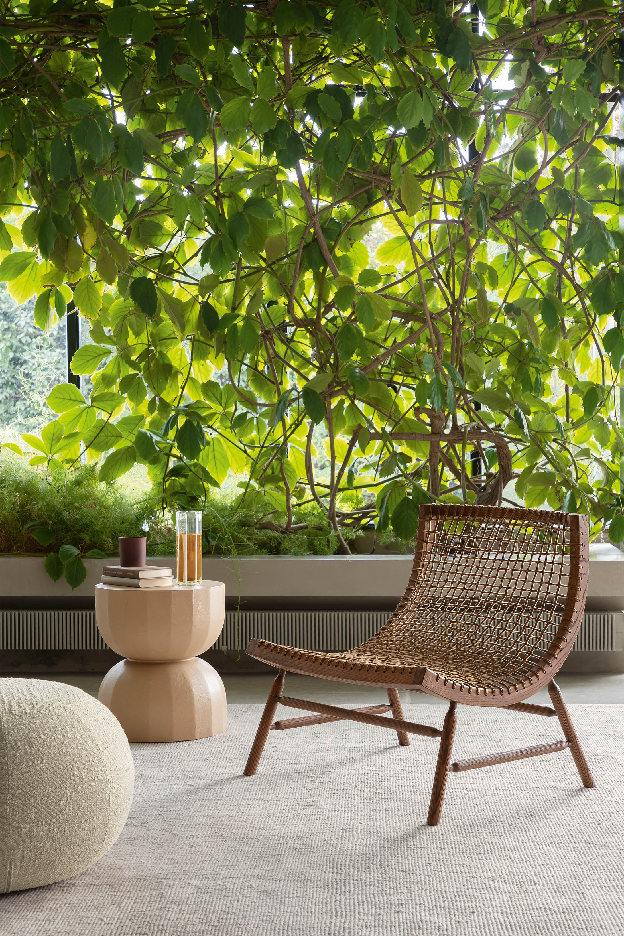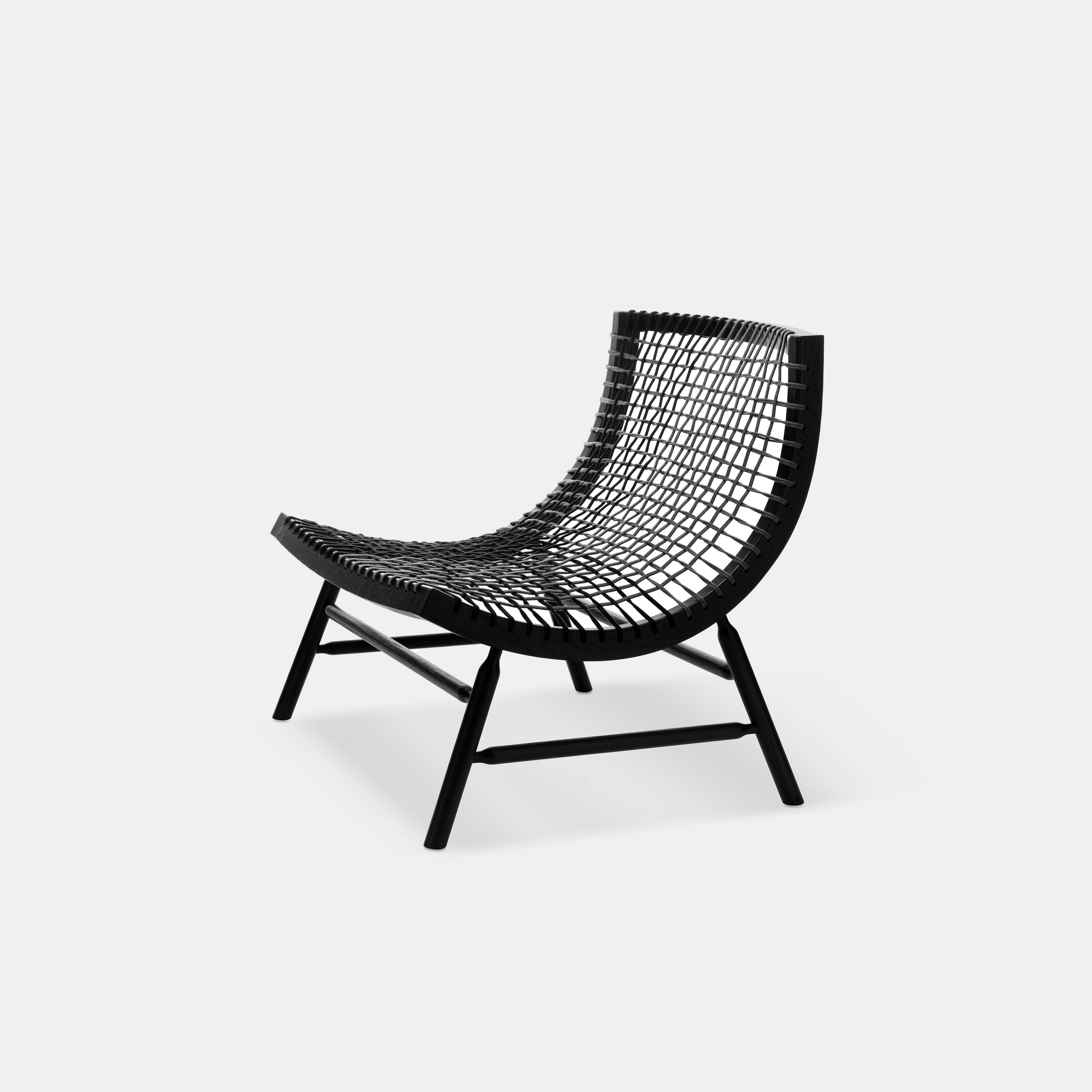 En lett lenestol som bringer tankene til mykheten av en fjær, et kjærtegn, et øyeblikk av harmoni i asketre og vevde nautiske