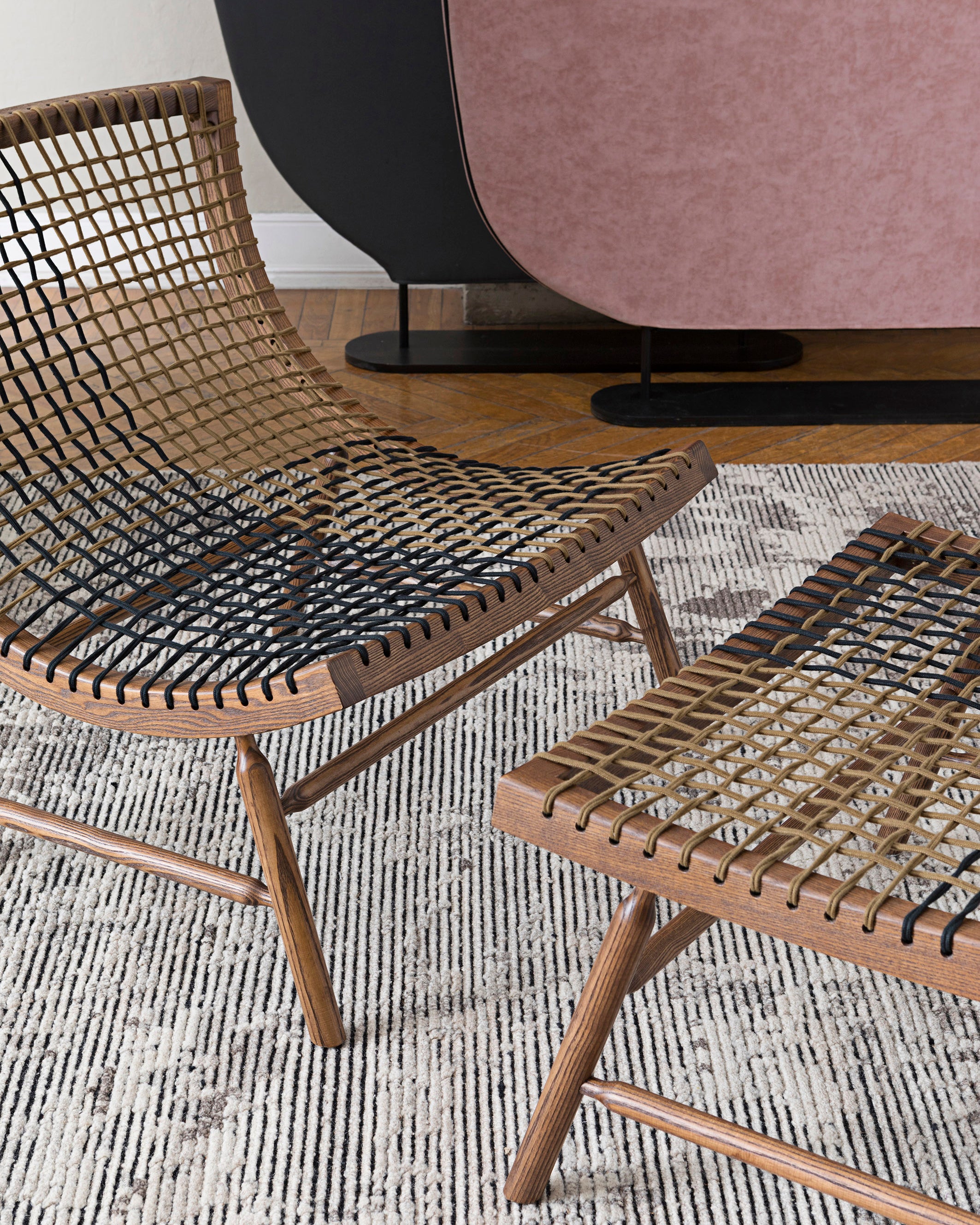 En lett puff som bringer tankene til mykhet som en fjær, et kjærtegn, et øyeblikk av harmoni mellom asketre og vevde nautiske materialer. Puffens navn har persisk opprinnelse: “seh-tar,” som bokstavelig talt betyr tre strenger, og designet er inspirert av det mest kjente indiske klassiske musikkinstrumentet. Med sitt fjerne opphav bærer puffen en tidløs appell, noe som gjør den ideell for både moderne interiør og utendørs rom.