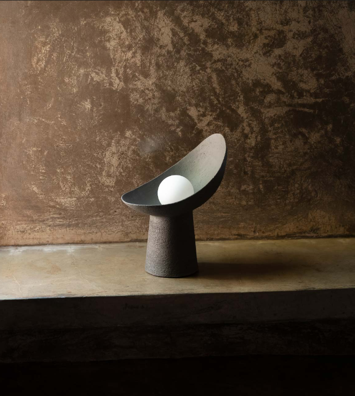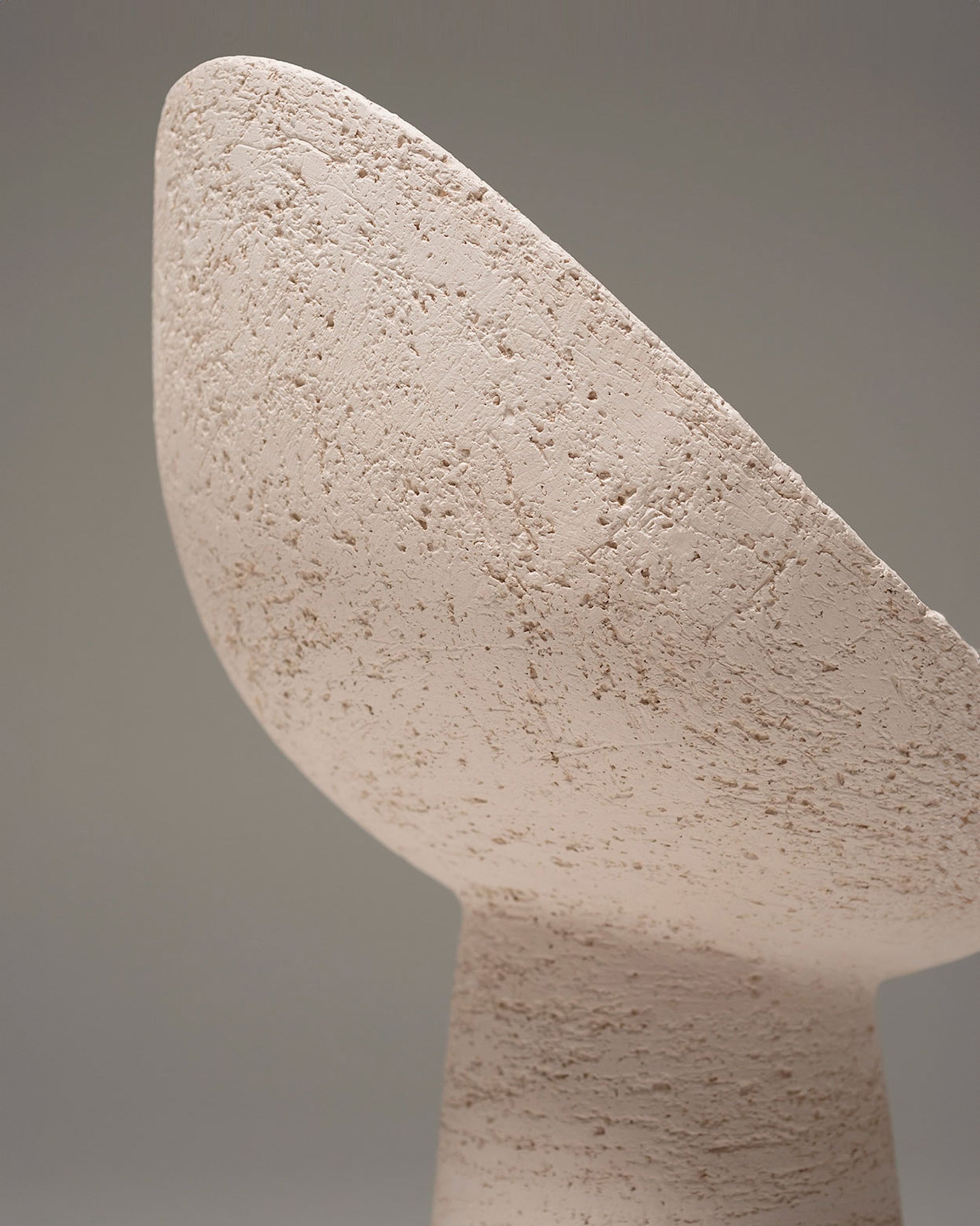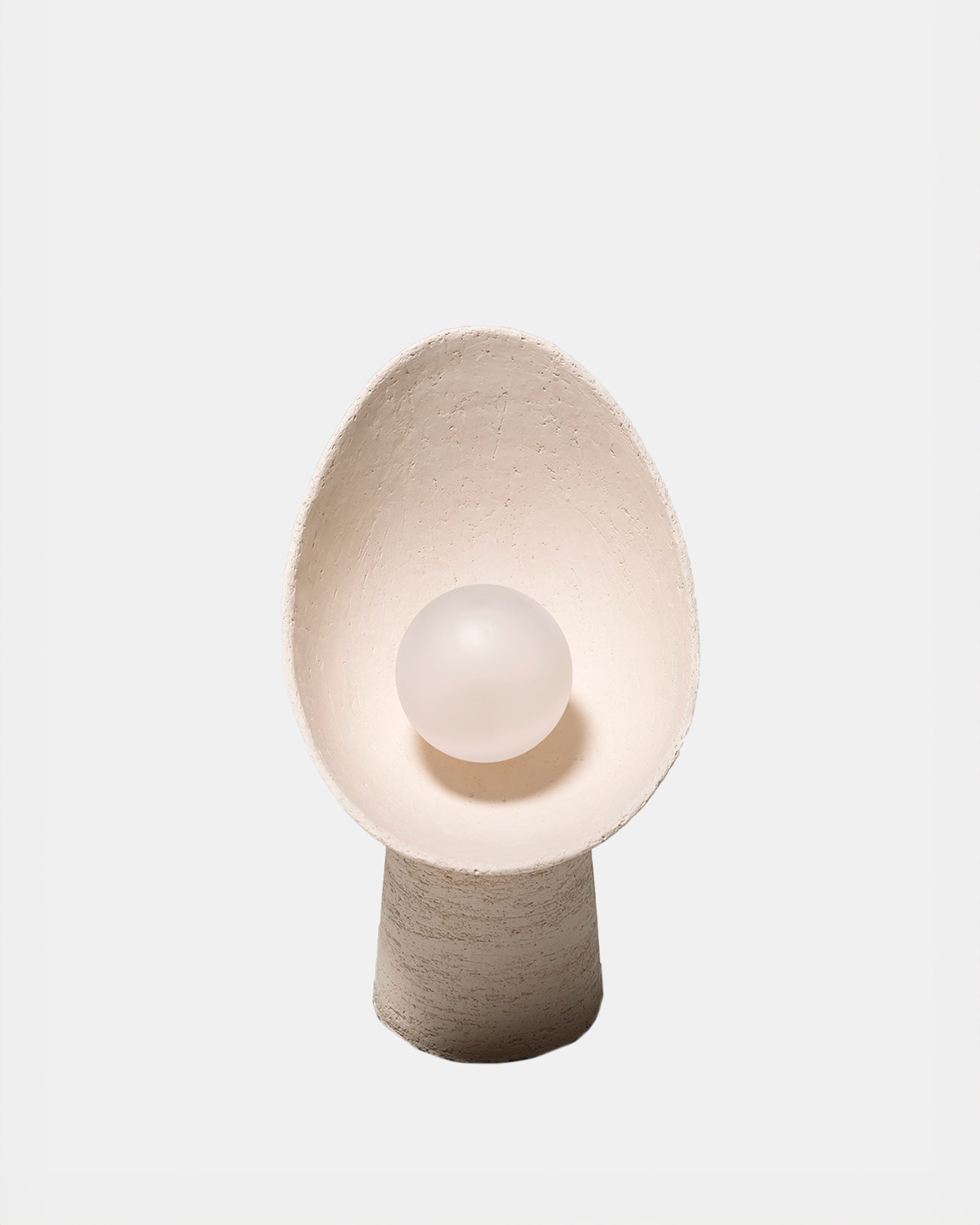 En liten lyskule, som nesten ser ut som en perle som fortsatt er innelukket i skallet, blender av absolutt renhet. Keramikk og opalglass er kledd i eleganse og enkelhet, i en skulpturell lampe som fremhever den delikate kombinasjonen av materialer knyttet sammen av de samme kromatiske nyansene.