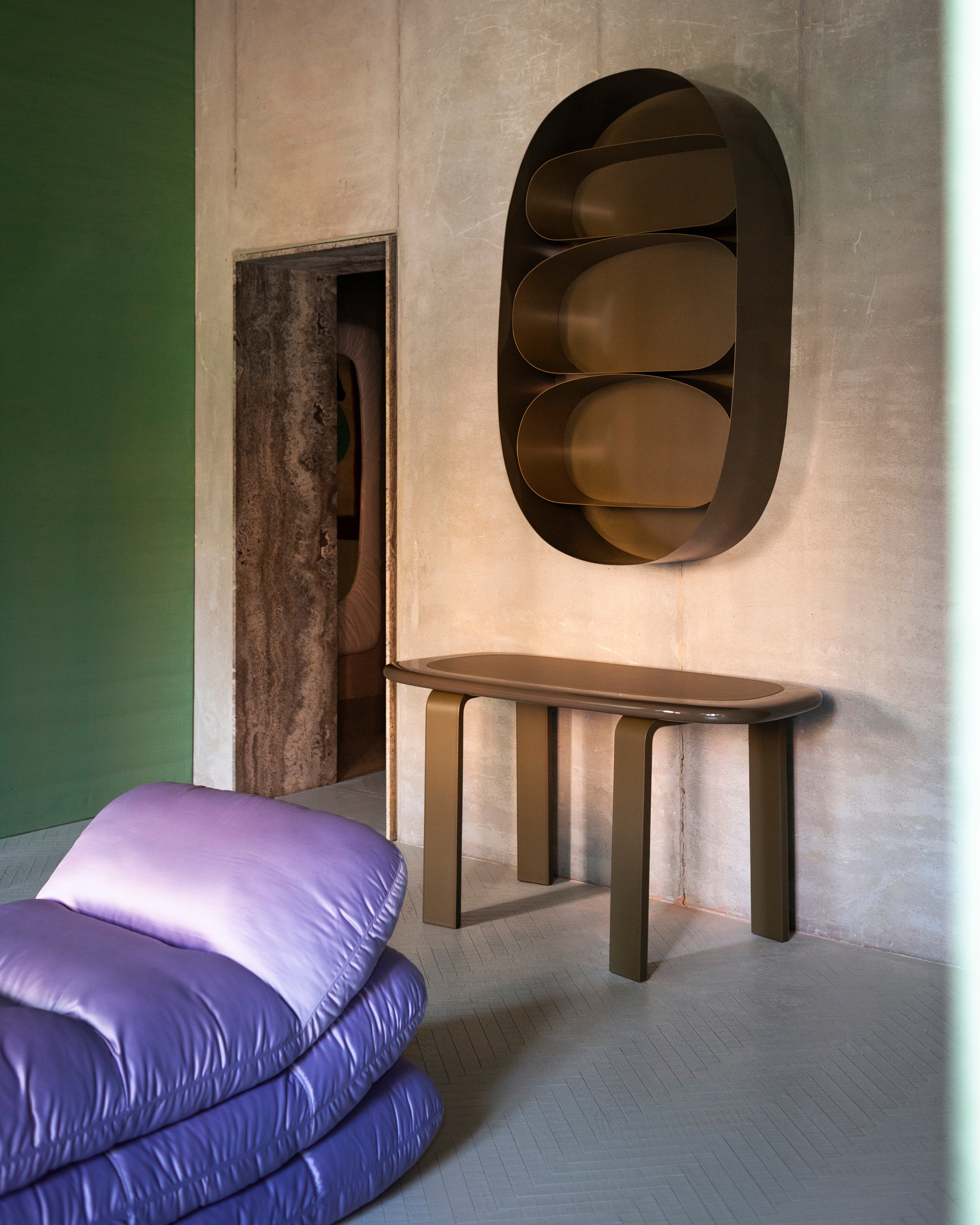 Solar Daybed fra Tacchini er en sentral del av Toogood og Tacchinis Cosmic-kolleksjon. Dette unike dagbeddet har et polstret sete som minner om en haug med puter. Solar kombinerer skulpturelle former med mykhet og gir en ny tolkning av Tacchinis ikoniske polstring. Tekstilet er med vilje rynket, noe som gir setet en behagelig og myk følelse. Dagbeddet har en avslappet estetikk som gjenspeiler den uformelle elegansen til Faye Toogoods studio.