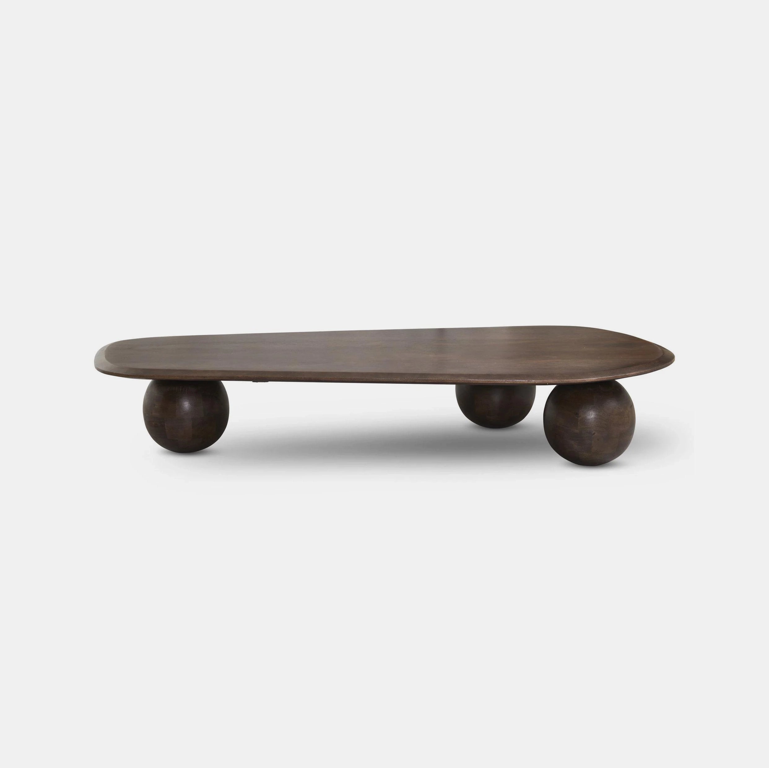 Sphere er et imponerende statement-bord i mangotre, designet i en unik og organisk form med mykt avrundede kanter. Med sine gode mål blir dette bordet ikke bare et funksjonelt møbel, men også en stilig og unik detalj i hjemmet ditt. The Sphere har tre kuler som ben som bare bidrar til dets spennende utseende og design, noe som virkelig gjør den til et blikkfang. Den naturlige skjønnheten og varmen til mangotreet skinner gjennom bordet, og formen gir en moderne vri som føles leken og levende. Avrundingen av kantene gir en mykhet og eleganse til bordets design, noe som gjør bordet virkelig luksuriøst og et ekte eyecandy.