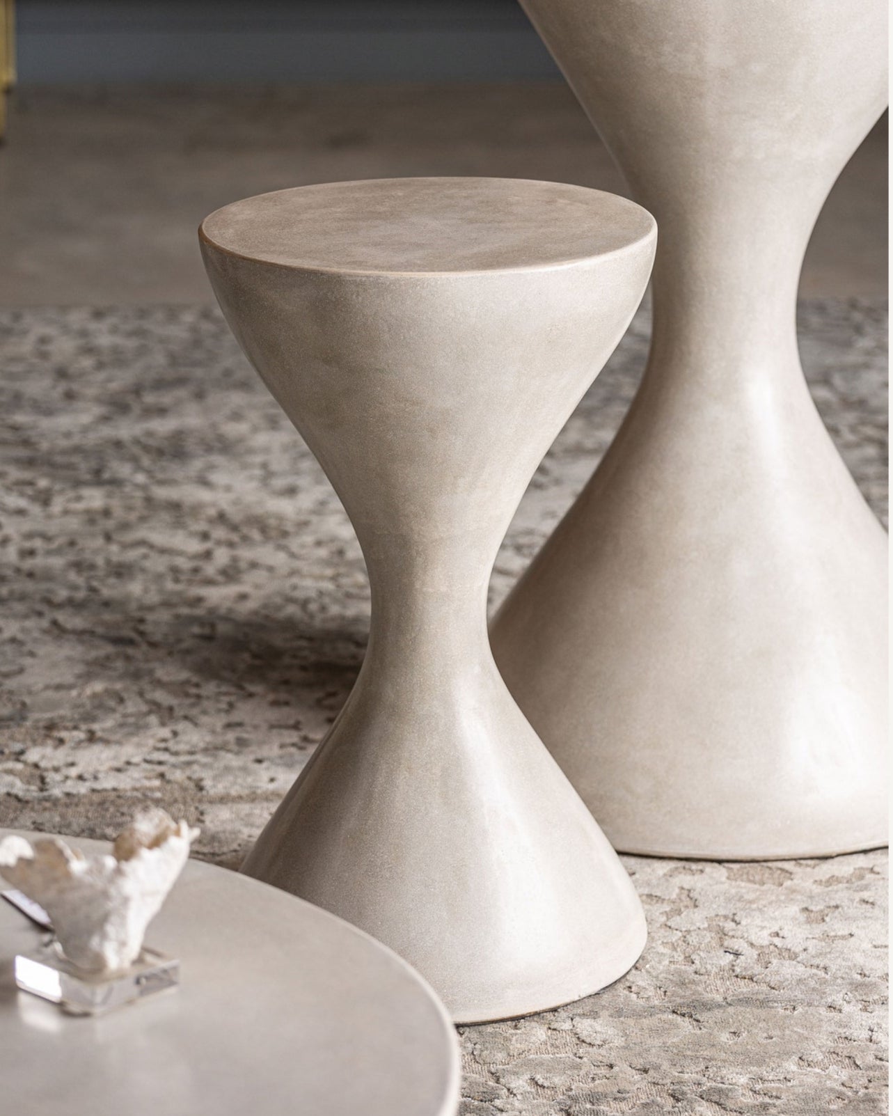 Telfs serien fra Vical kommer i flere forskjellige småbord. Dette grå barbordet er laget av grå sement med en skulpturell form. Den er perfekt for moderne omgivelser, innendørs barer eller et uterom med tak. Fungerer også som en fint sidebord og passer inn i mange ulike miljøer.
