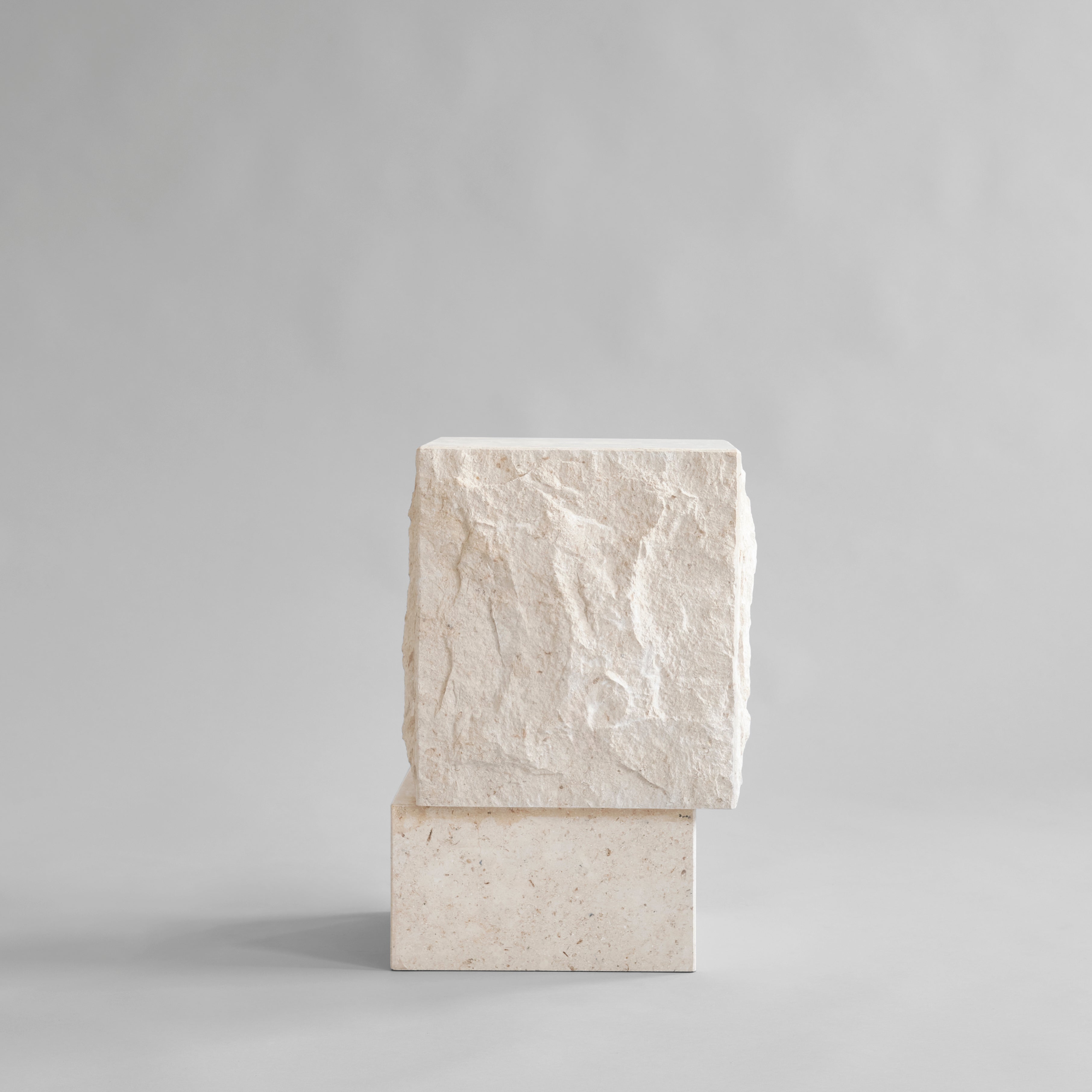 Temple sidebord er rike på arkitektoniske referanser og minner om arkitektoniske fasader for å skape et spill av taktile og polerte overflater. Laget av en vakker sandfarget kalkstein, består hvert bord av to forskjøvede blokker oppå hverandre. Rik på tekstur, små hull og «feil», hvert bord omfavner skjønnheten til natursteinen. Laget av dyktige steinhåndverkere, er den taktile overflaten oppnådd av delikate håndutskjæringer. Bordet kommer i to størrelser og egner seg til mange formål, som salongbord, sidebord og sokler for å stille ut gjenstander. Kalkstein er egnet for utendørs bruk.