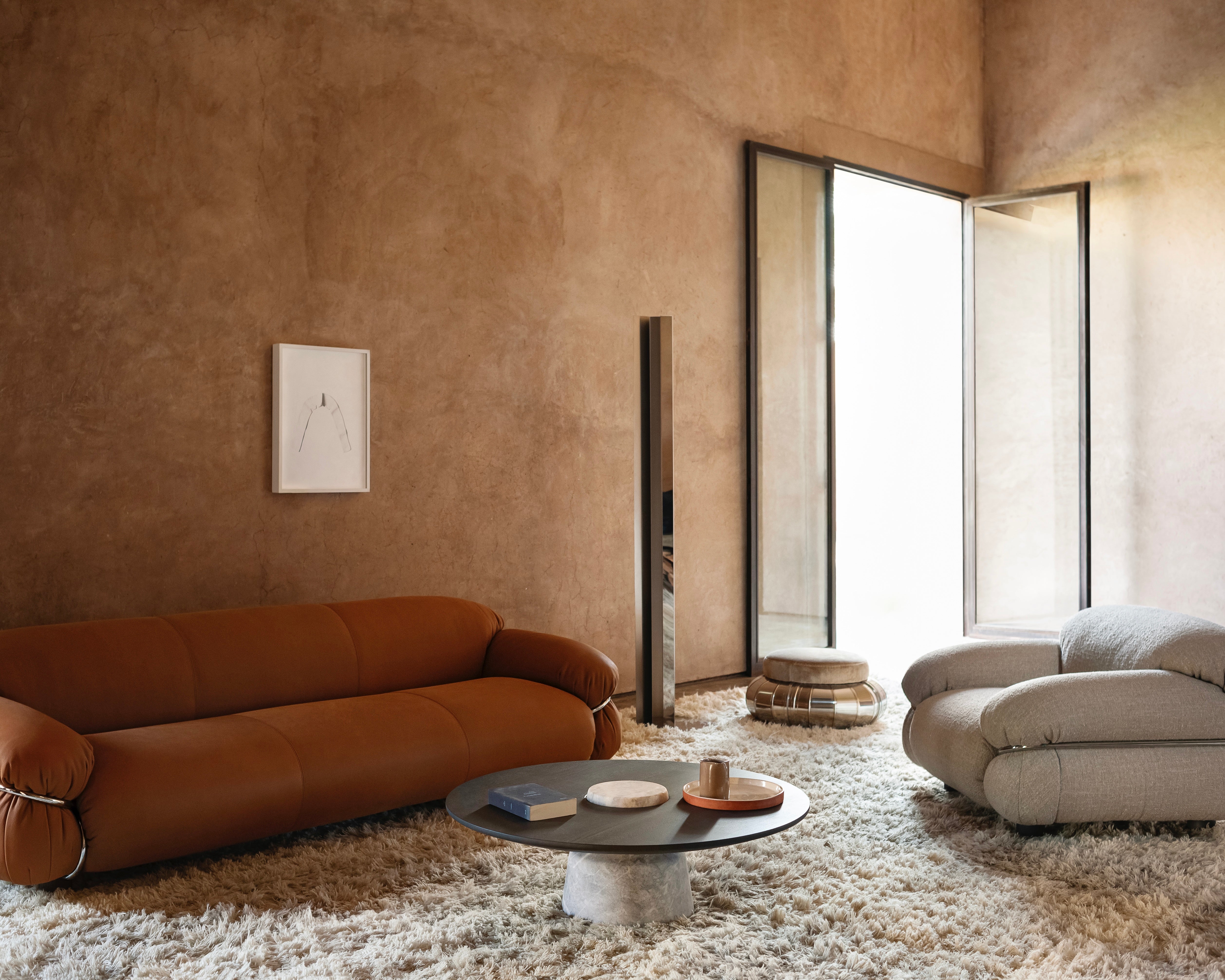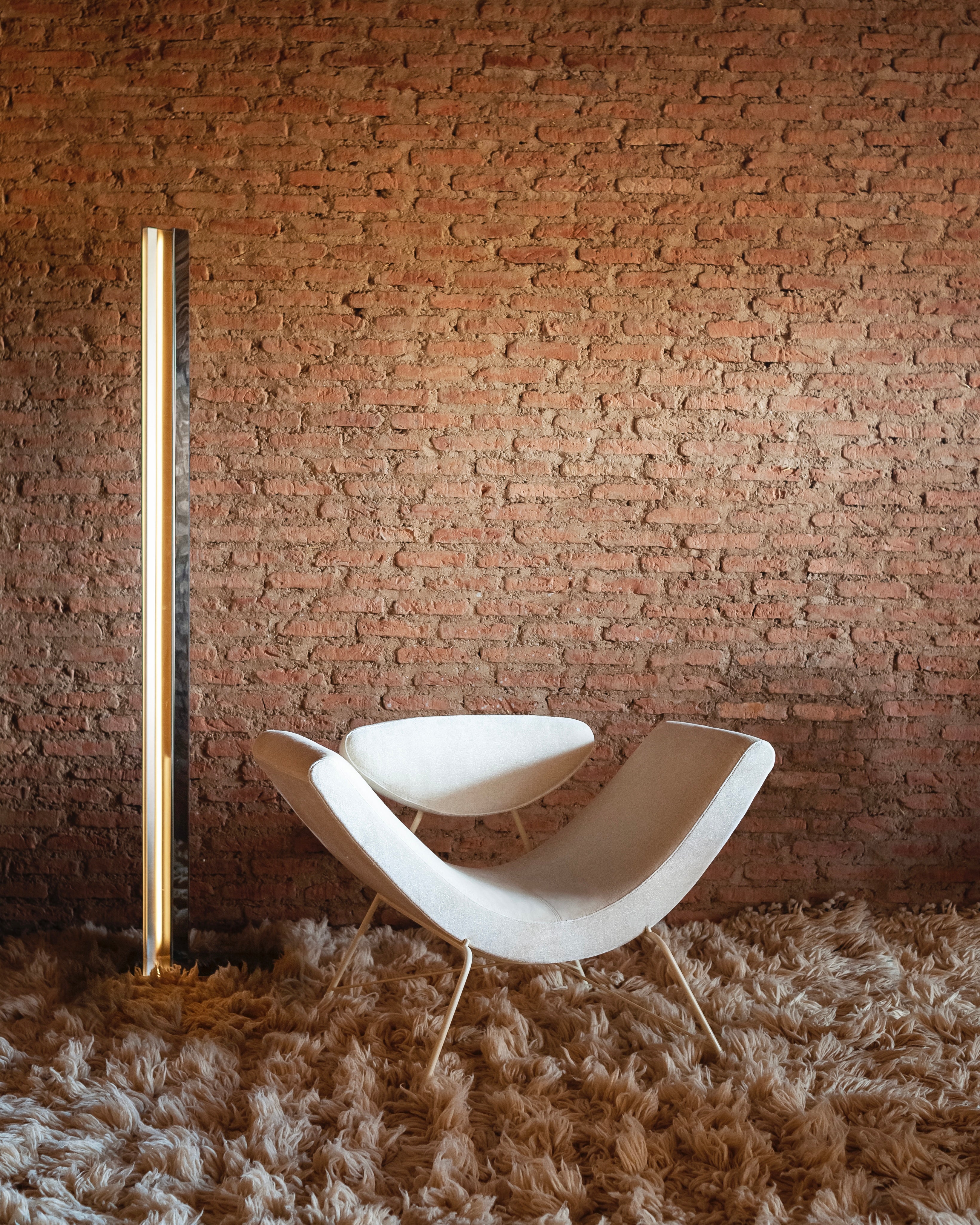 En metallplate, enkle og presise folder, et lys. Inspirert av håndbevegelsen som beskytter en stearinlysflamme, er Mano Light-kolleksjonen designet som abstrakte skisser hvis proporsjoner kan tilpasses forskjellige skalaer. Mano gulvlampe er en av hovedpersonene i serien, en to meter lysende skulptur, med en særegen design og planlegging, som gir fra seg et varmt og omsluttende lys. Designet av Umberto Bellardi Ricci, er Mano Light tilgjengelig i to utførelser, begge med polert rustfritt stålbase.