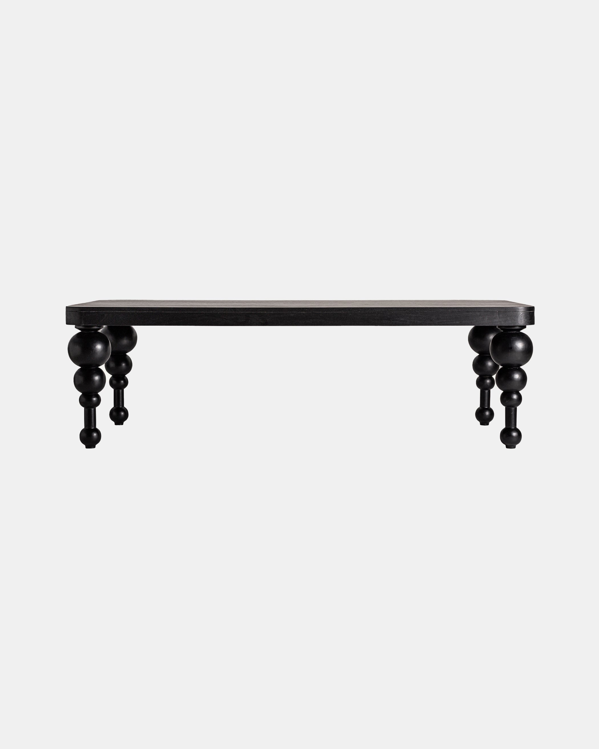 Bordet laget av mangotre i sort, kombinert med stål.