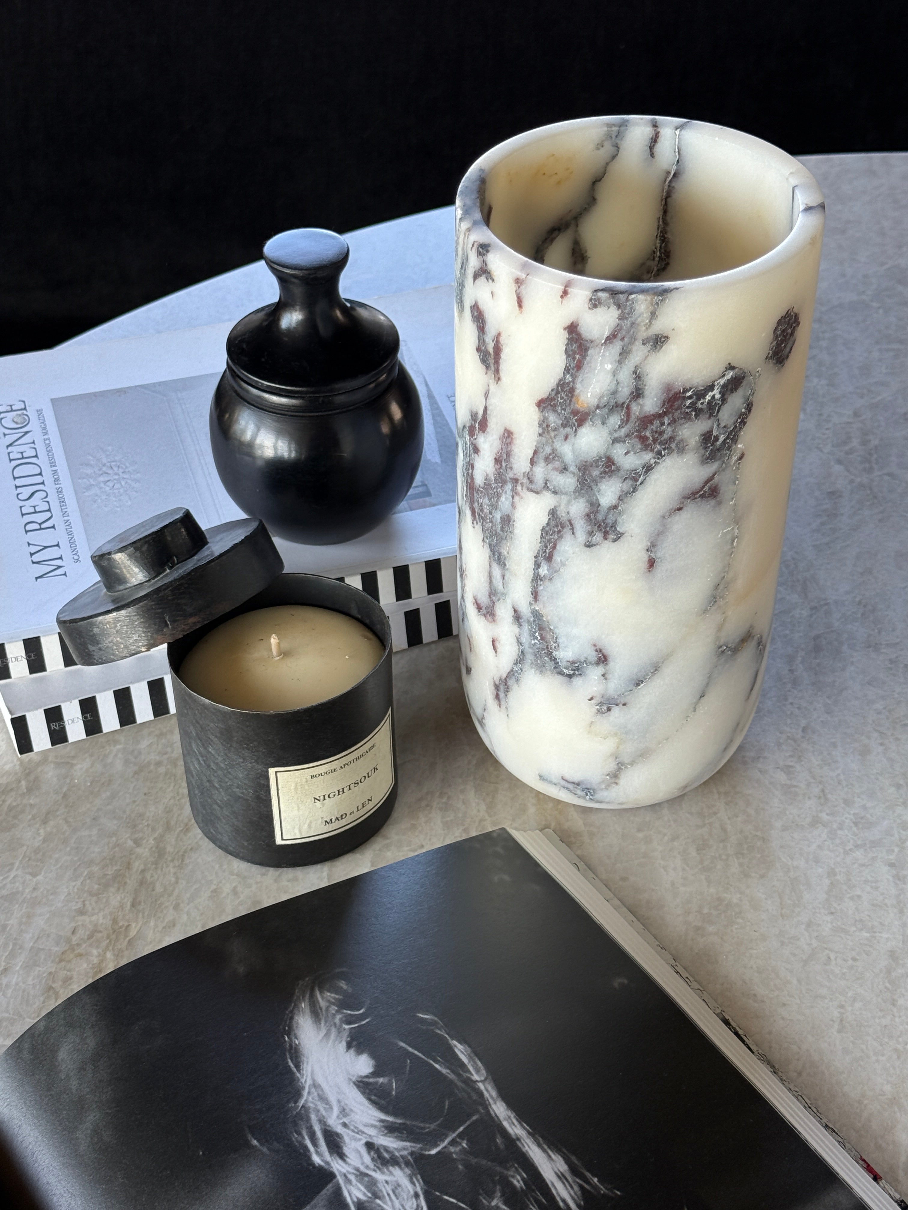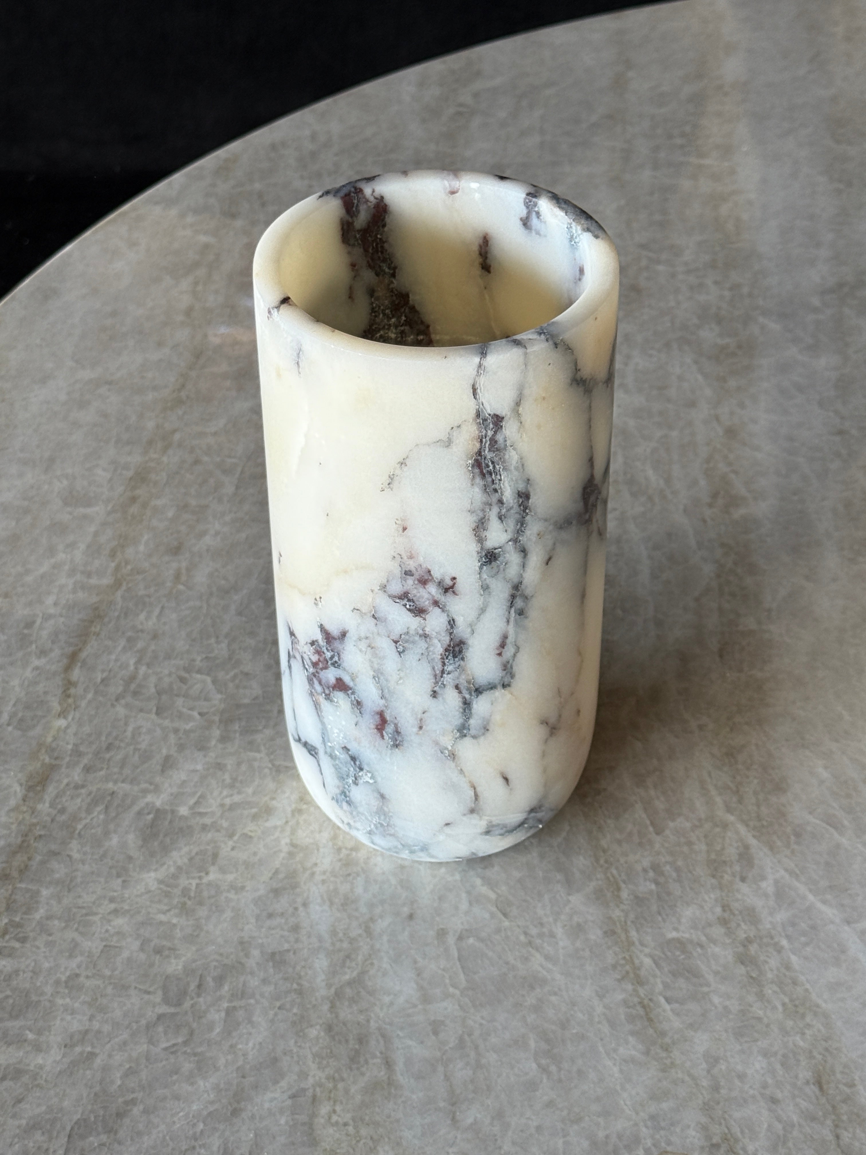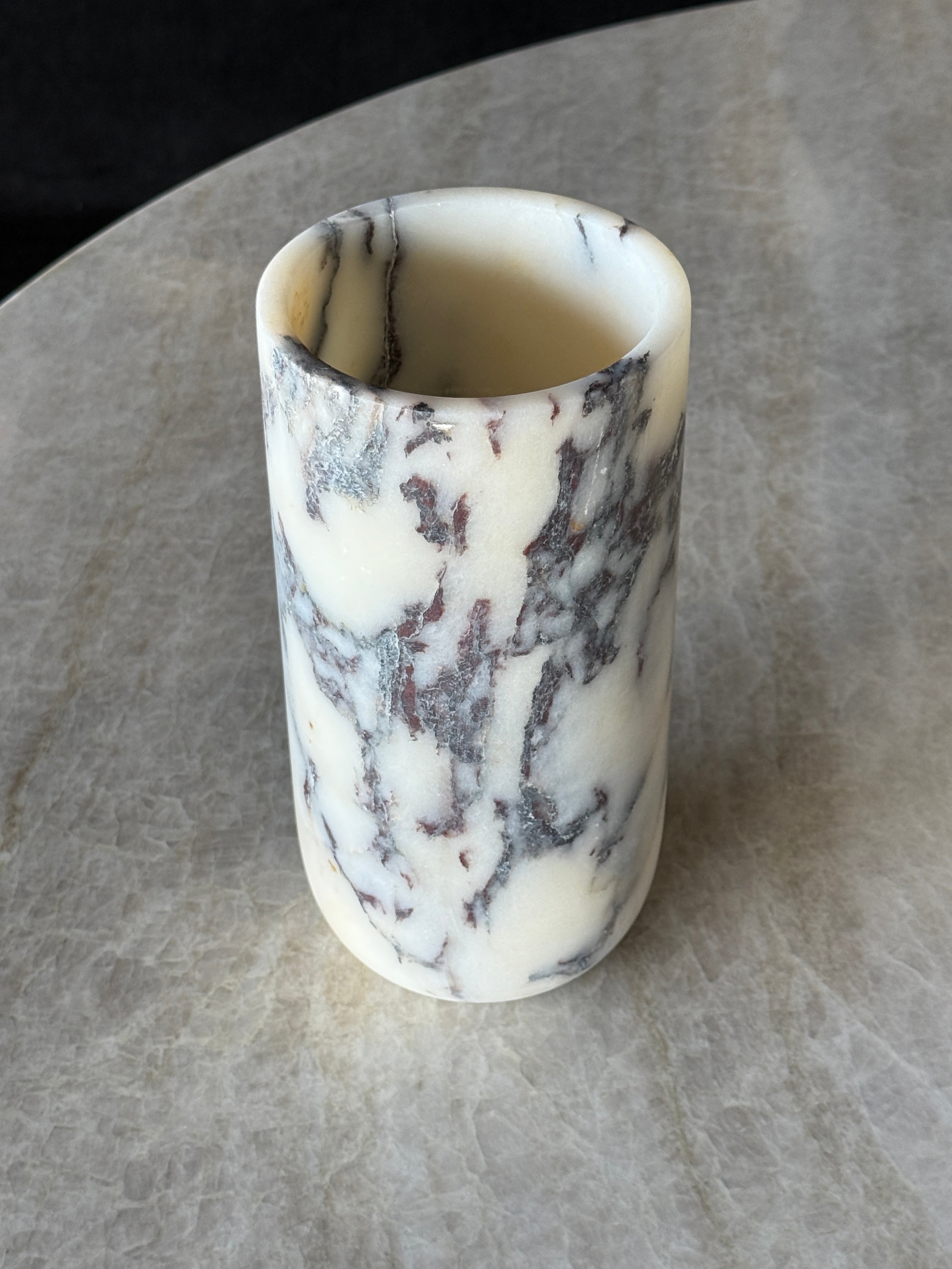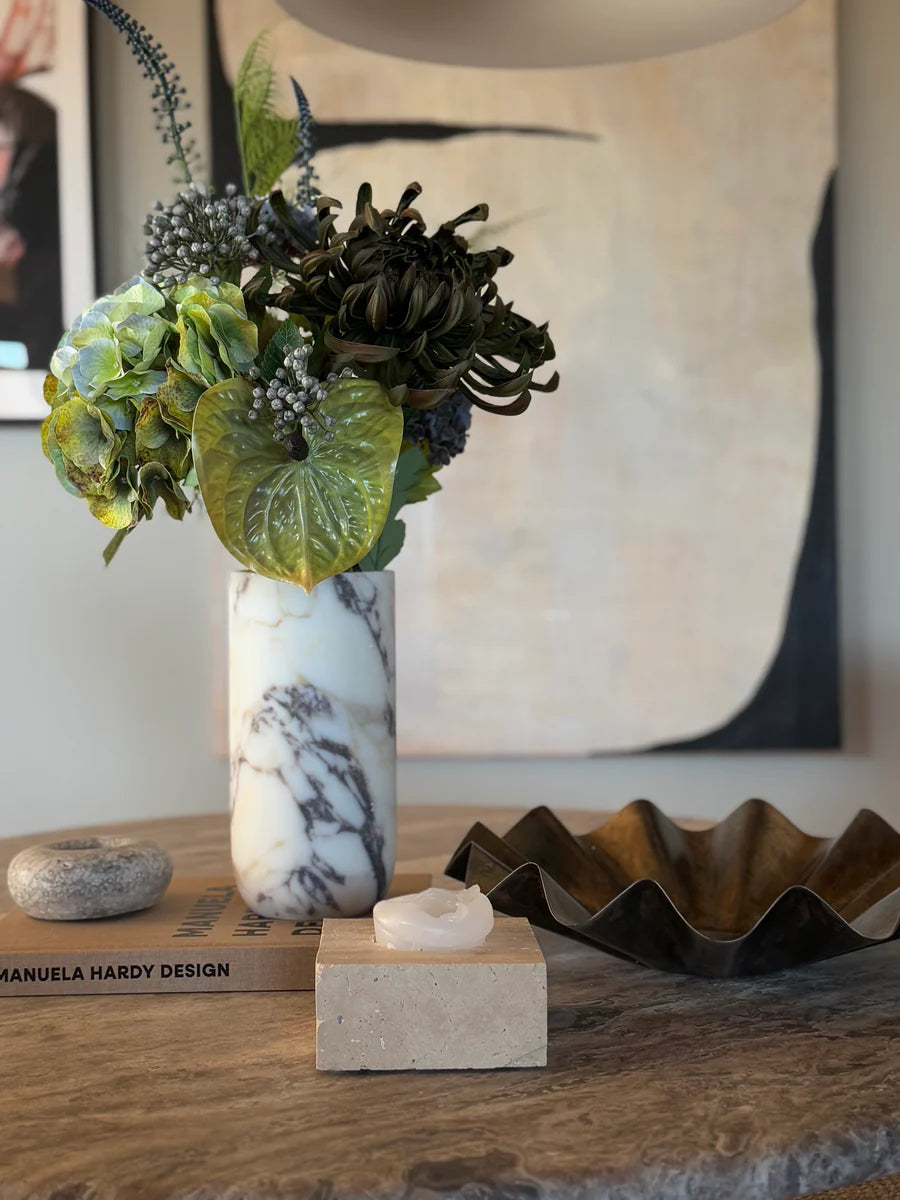 VKW Sasso i nydelig marmor er en vase i naturstein. Med sin rene, organiske form og matte overflate, er denne vasen en perfekt detalj i ethvert interiør. Den fine finishen og subtile fargetonene gir et sofistikert og minimalistisk preg, og gjør den enkel å plassere i både moderne og klassiske omgivelser.