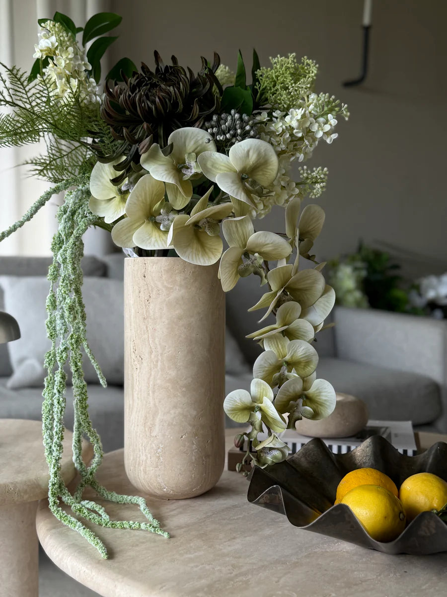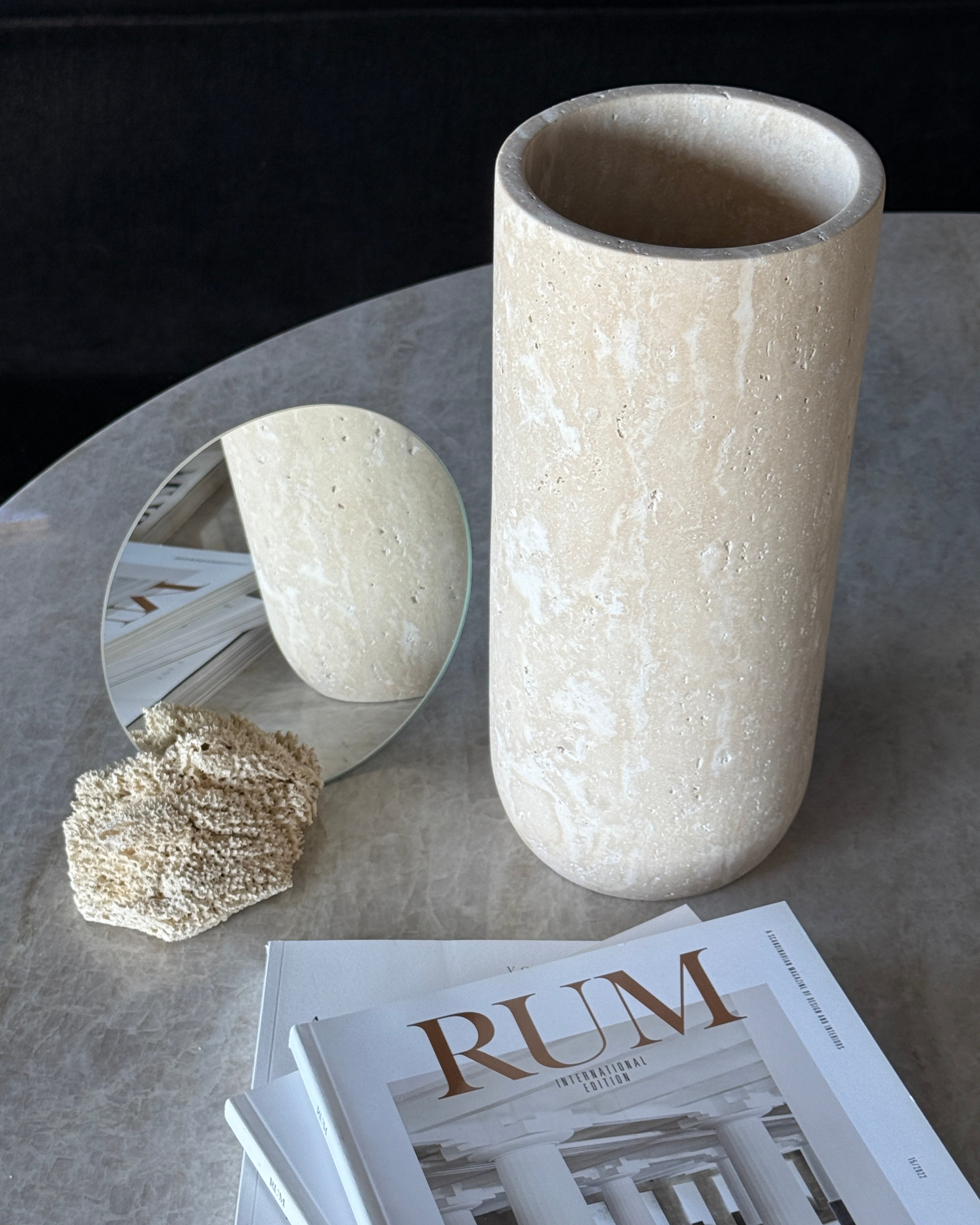 VKW Sasso i lys travertin er en vase i naturstein. Med sin rene, organiske form og matte overflate, er denne vasen en perfekt detalj i ethvert interiør. Den fine finishen og subtile fargetonene gir et sofistikert og minimalistisk preg, og gjør den enkel å plassere i både moderne og klassiske omgivelser.