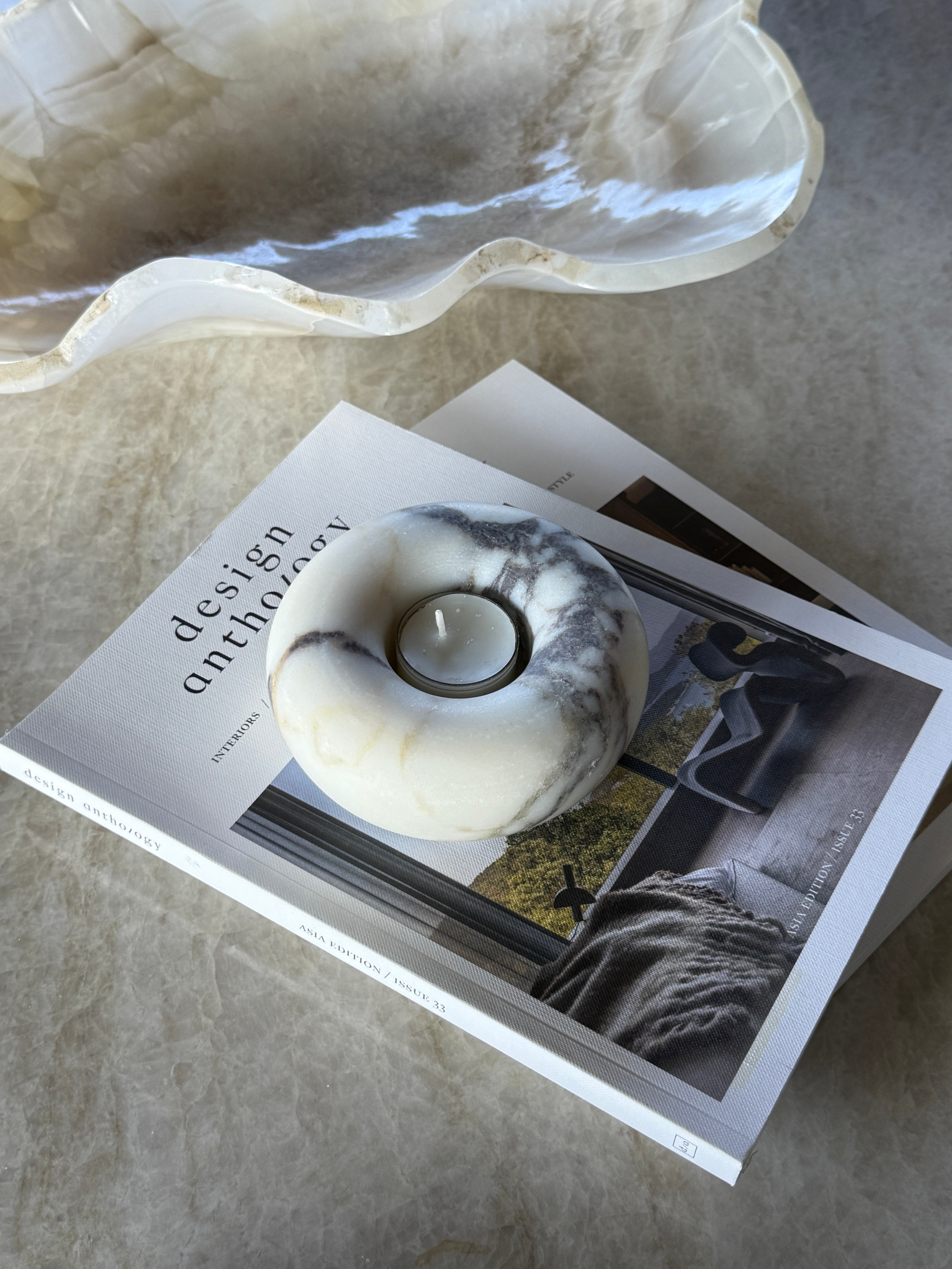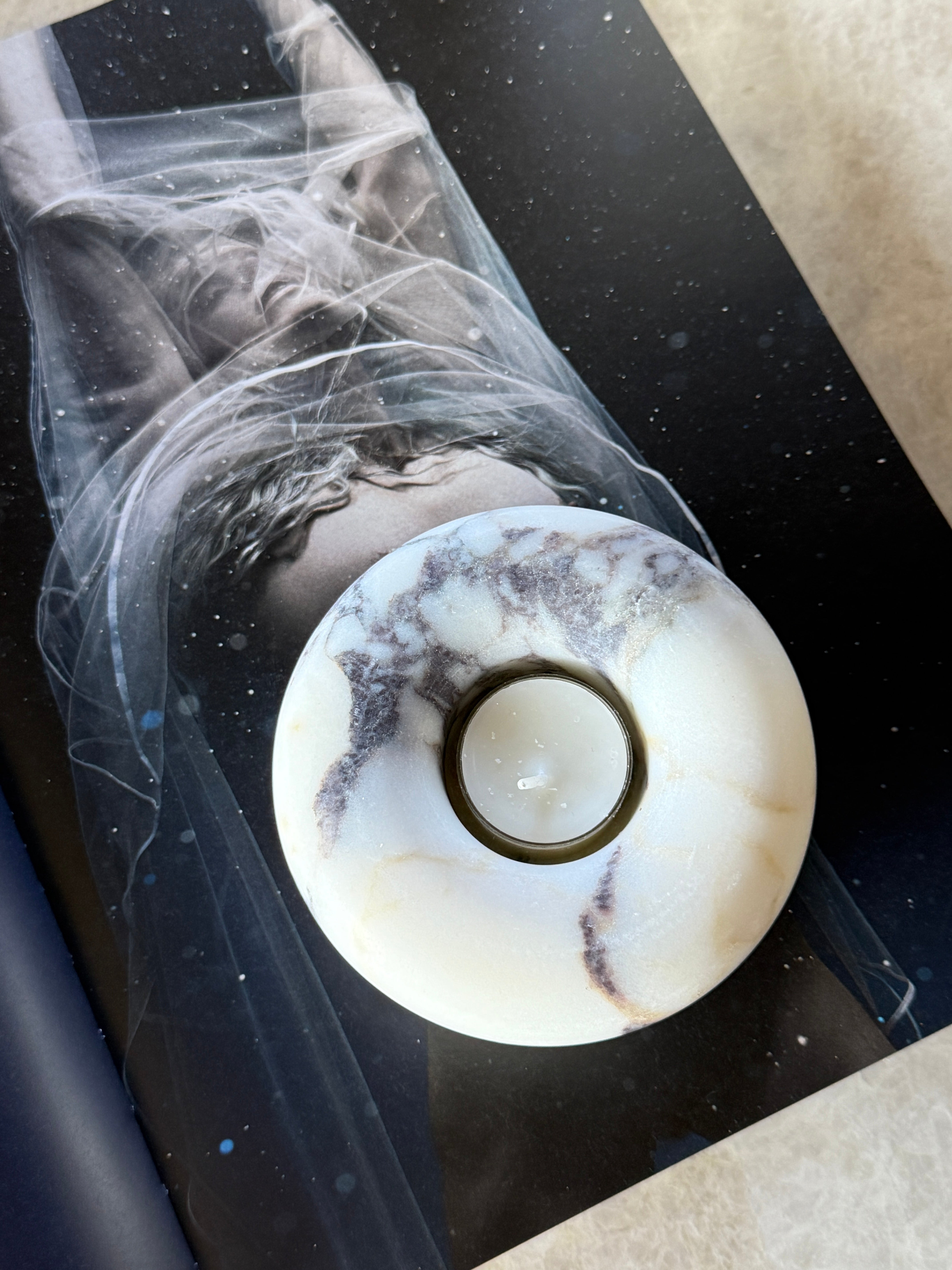 Stella er en elegant og tidløs telysholder i nydelig Calacatta viola marmor designet for å skape stemning i ethvert rom. Med sin runde form og delikate detaljer er den et statement-piece som passer perfekt i mange ulike miljøer!