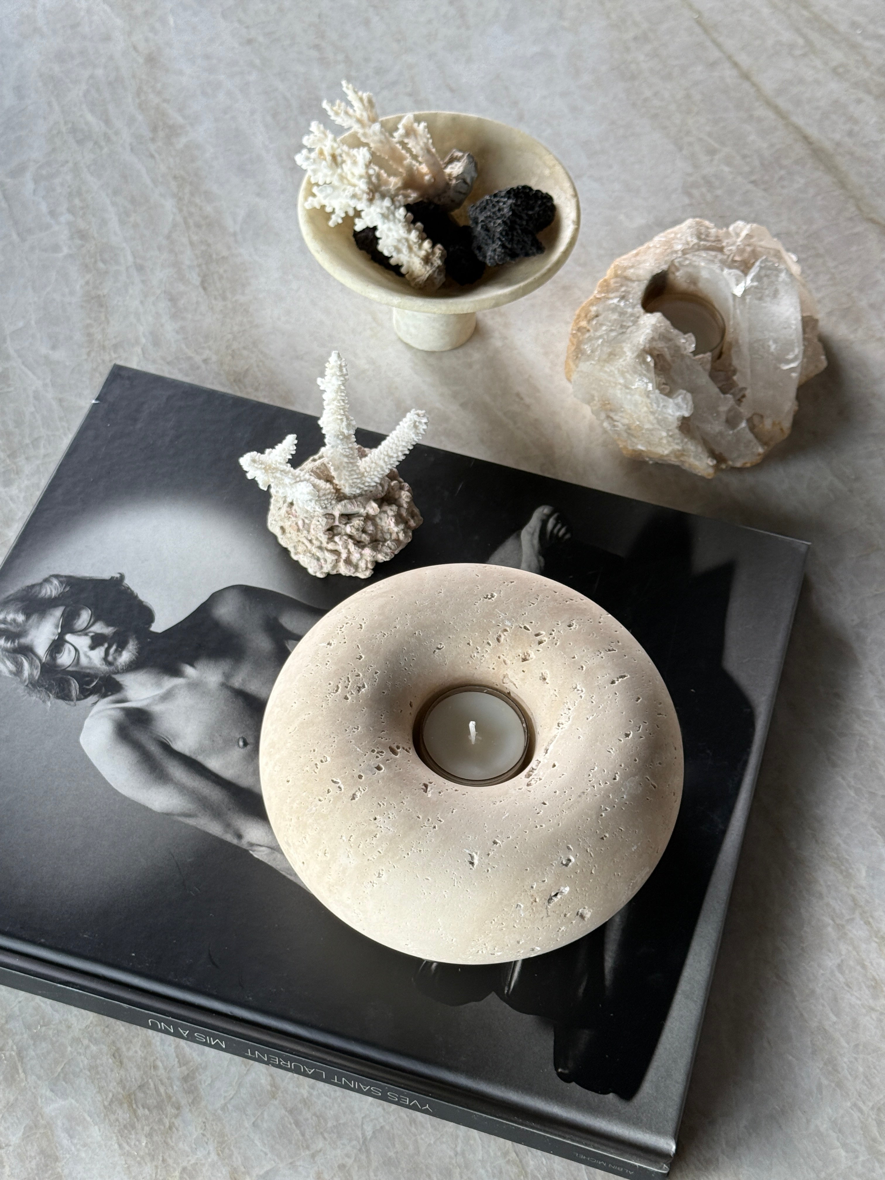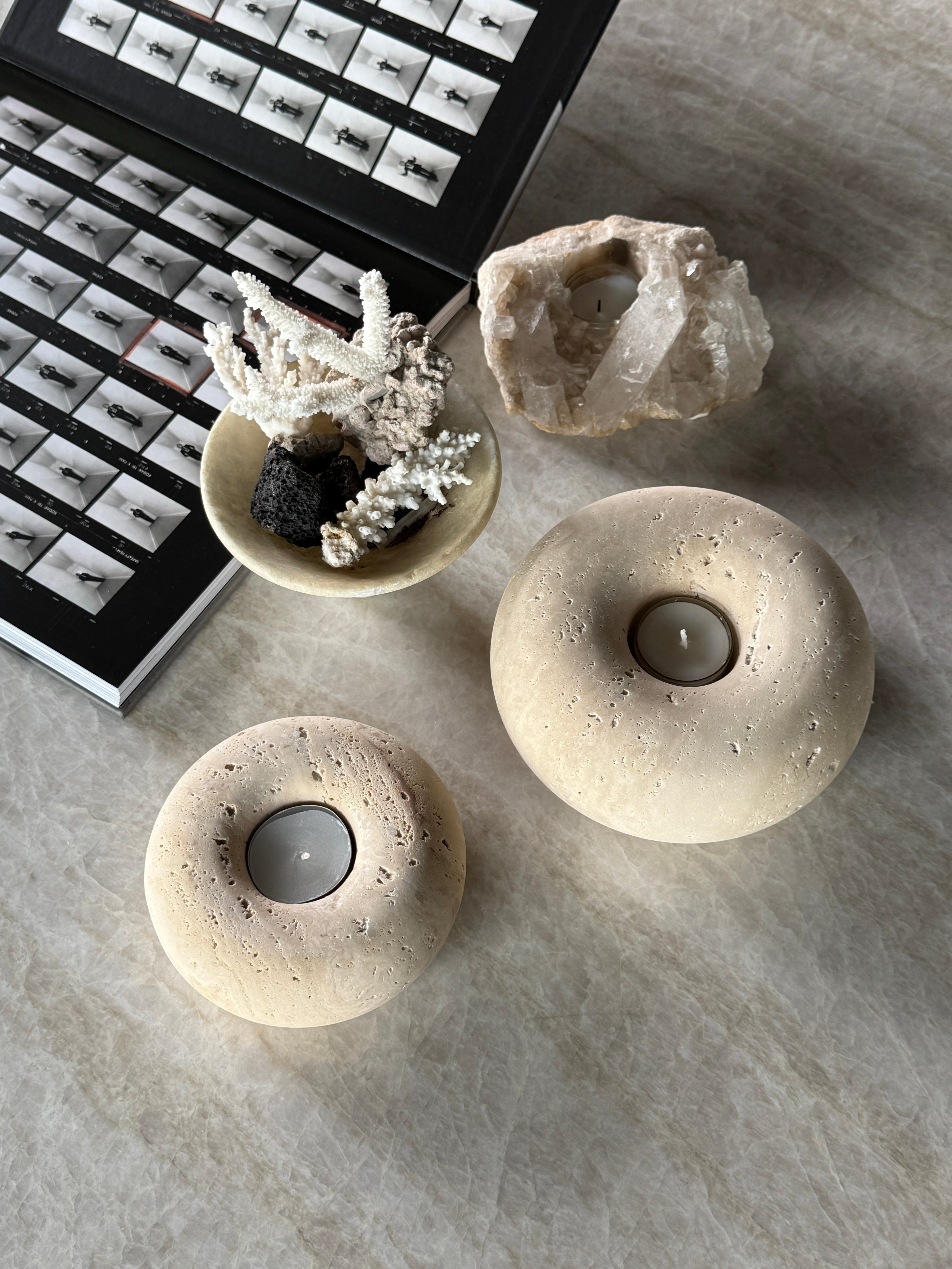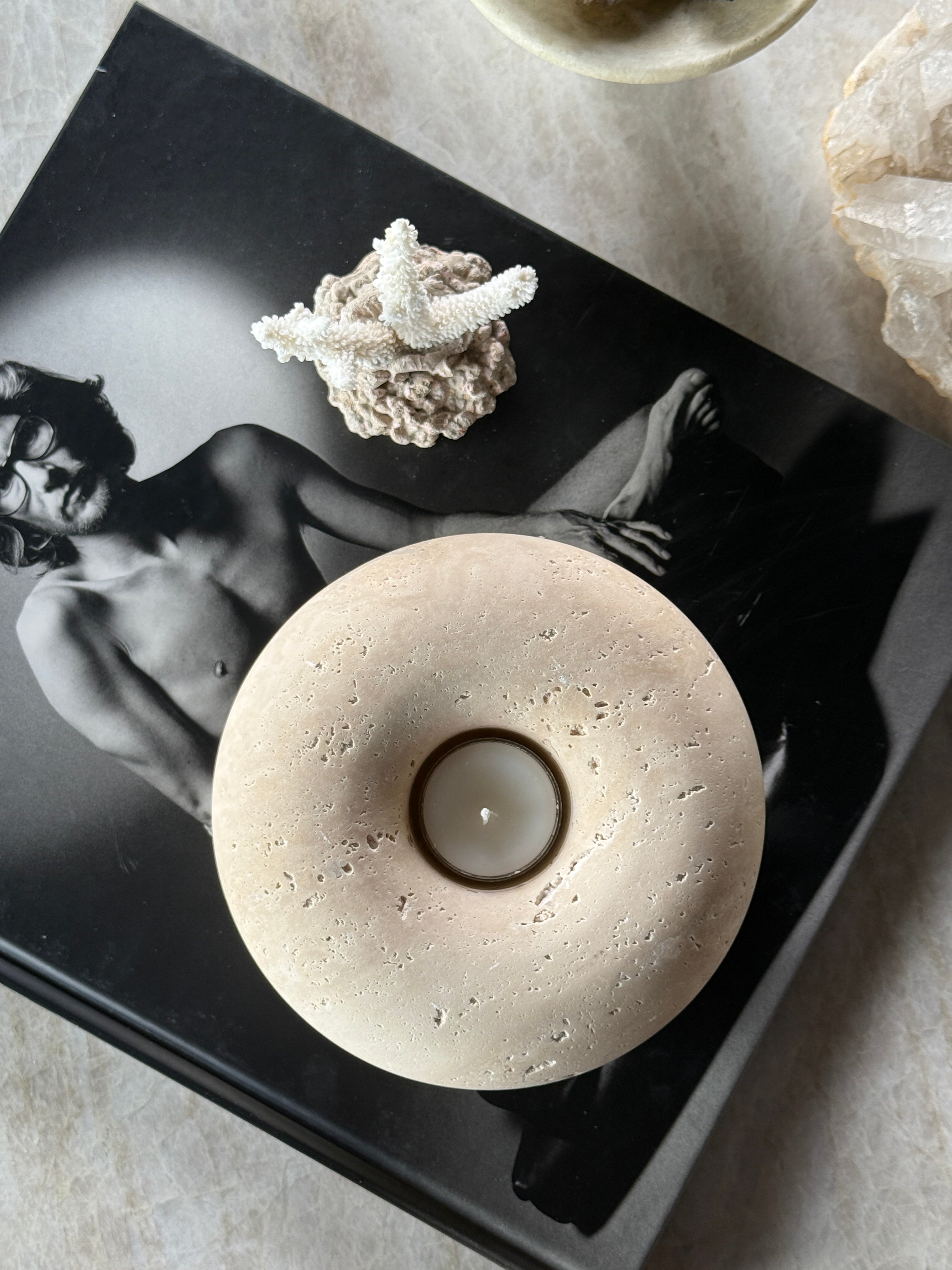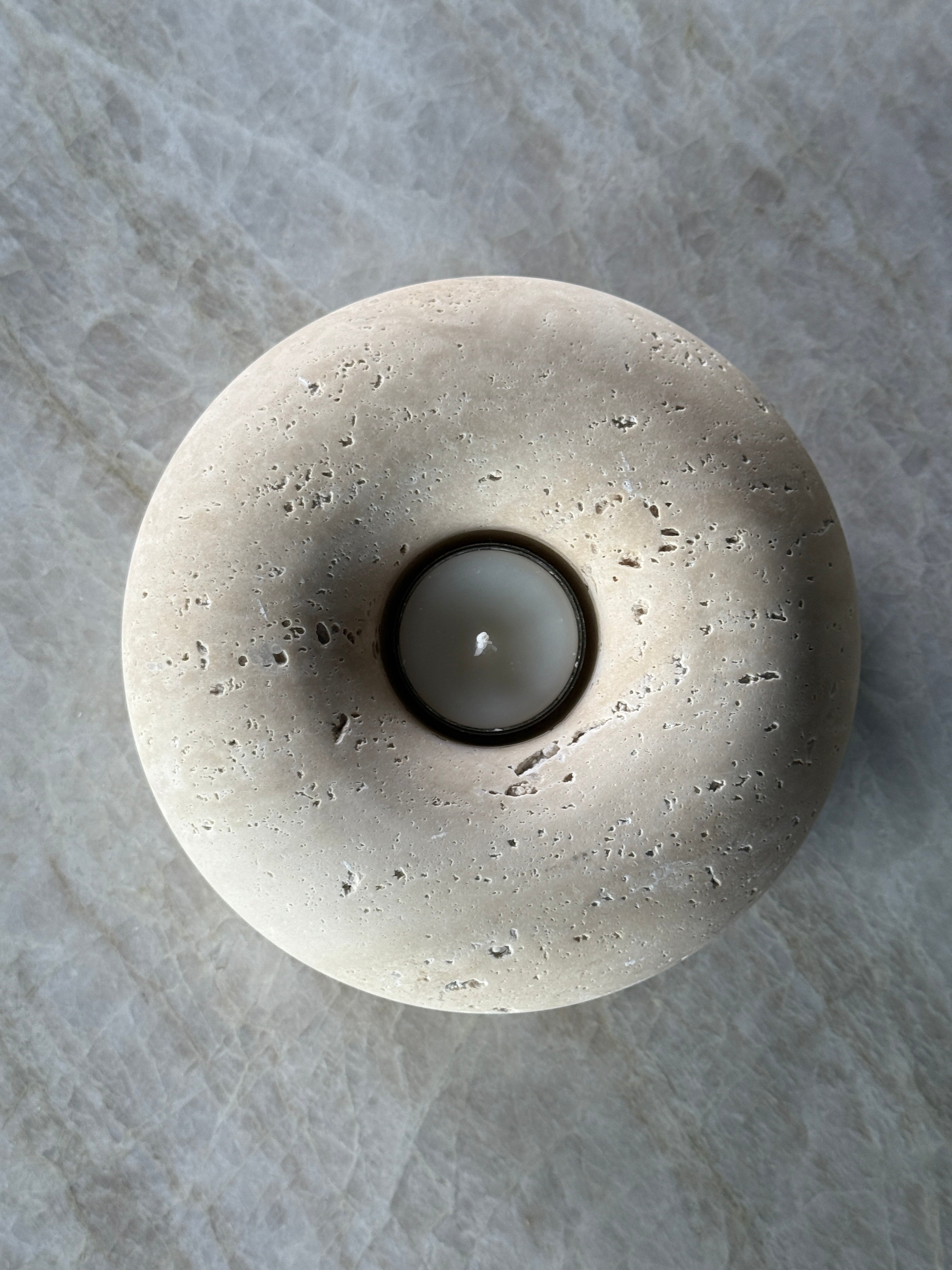 Stella er en elegant og tidløs telysholder i travertin designet for å skape stemning i ethvert rom. Med sin runde form og delikate detaljer er den et statement-piece som passer perfekt i mange ulike miljøer!