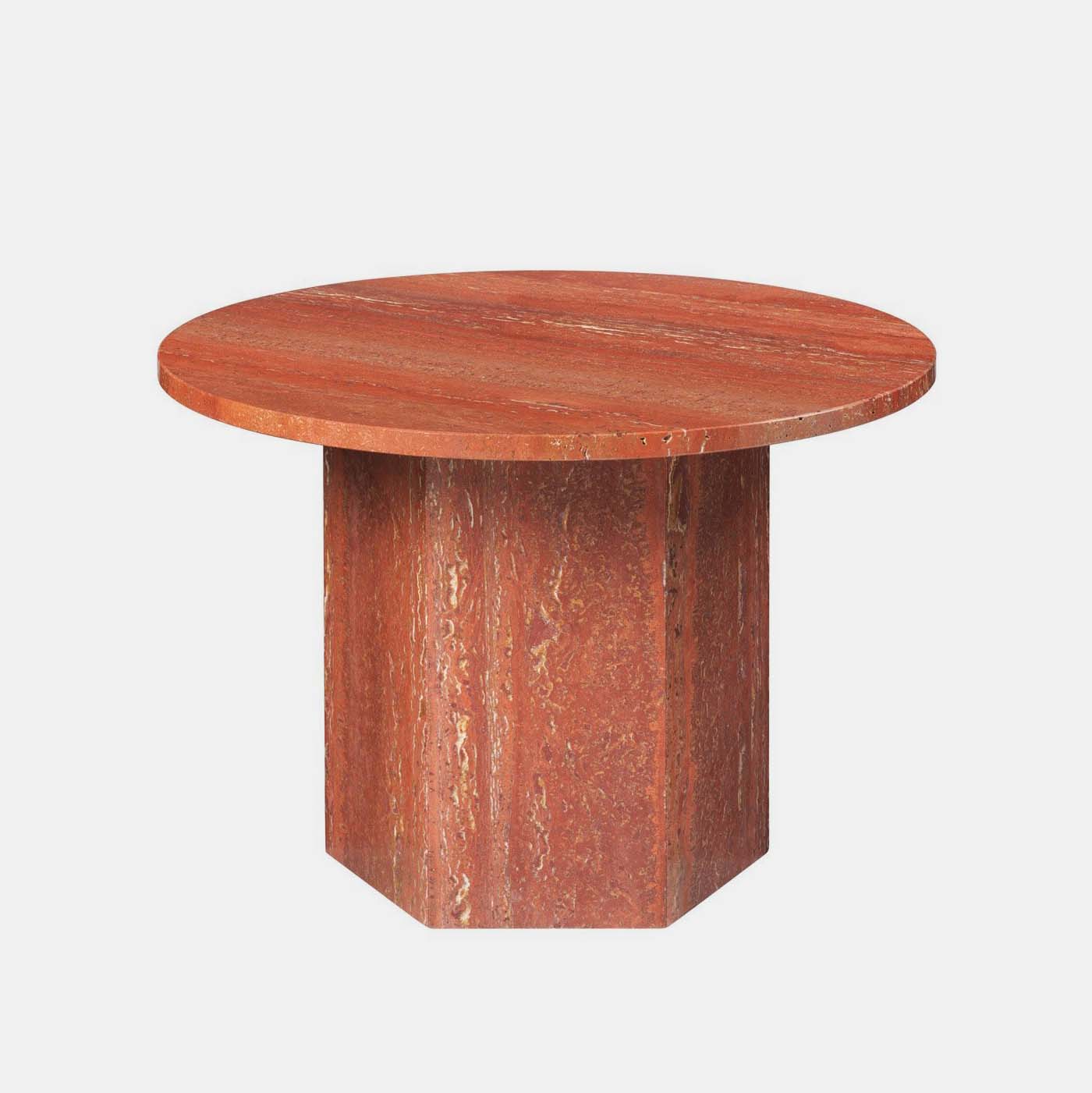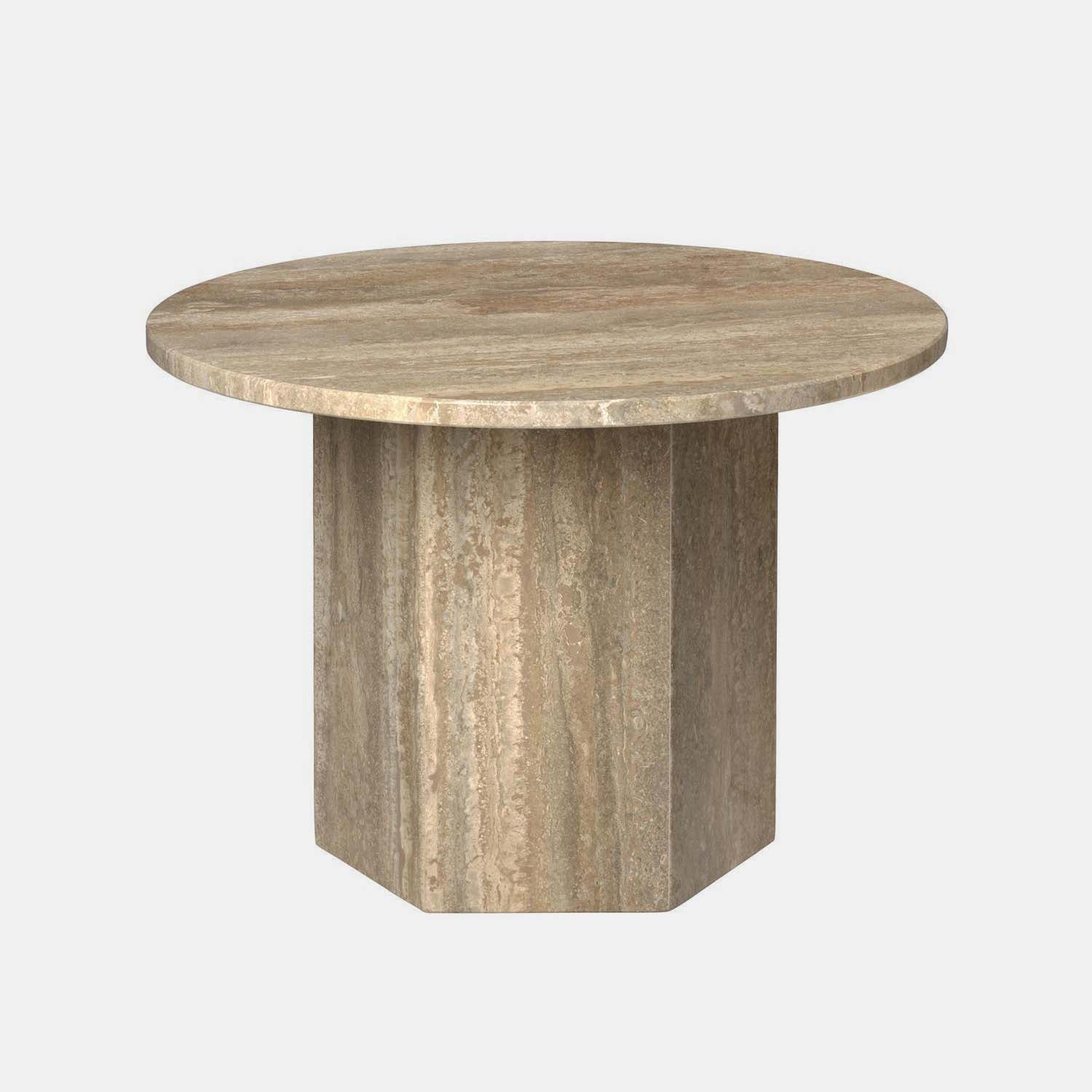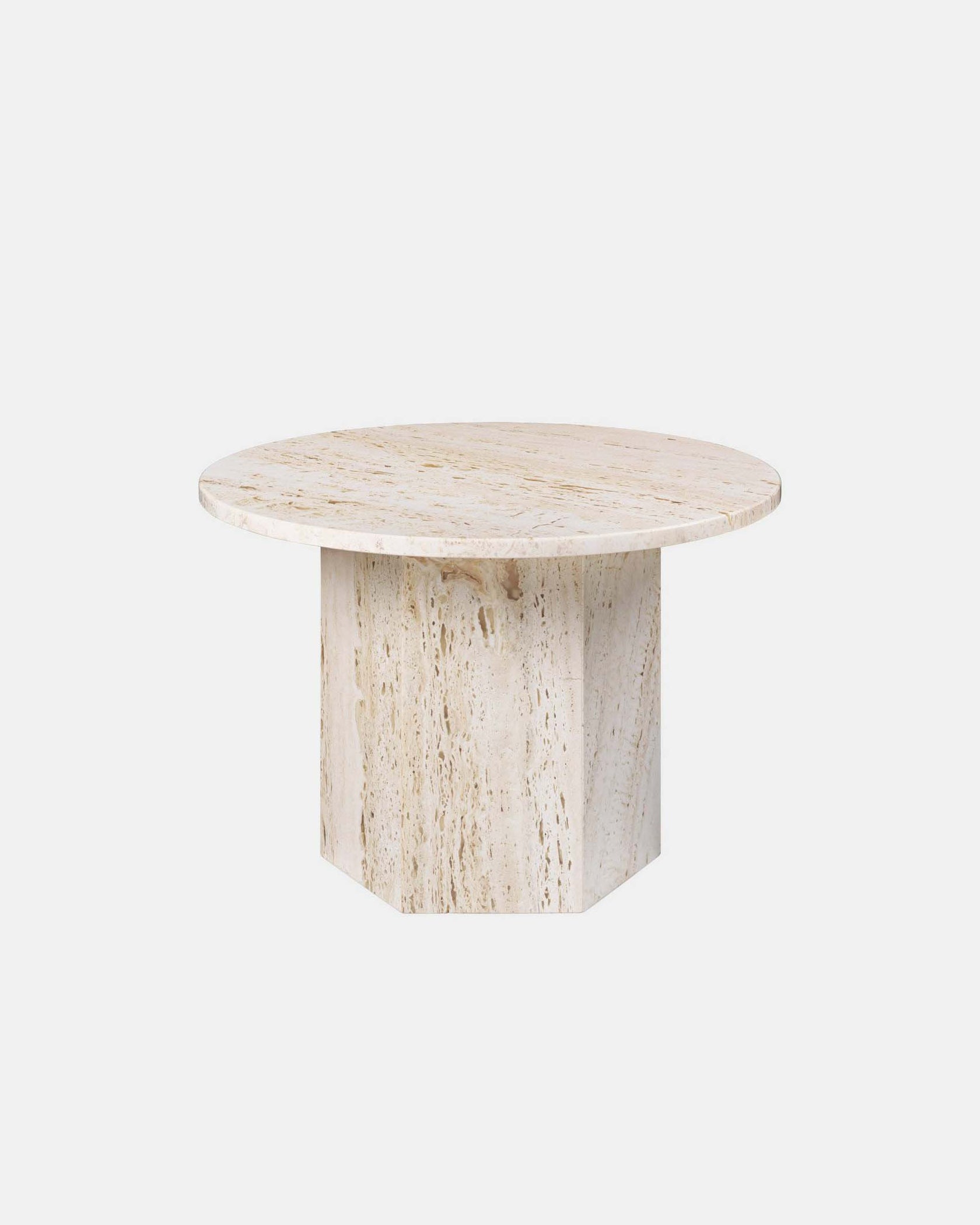 Epic-bordet, designet av GamFratesi, er et skulpturelt møbel inspirert av greske søyler og romersk arkitektur, oppkalt etter de episke diktene fra antikken. Laget i Italia av travertinstein, fremhever bordet steinens naturlige skjønnhet med livlige årer og en unik patina som utvikler seg over tid.