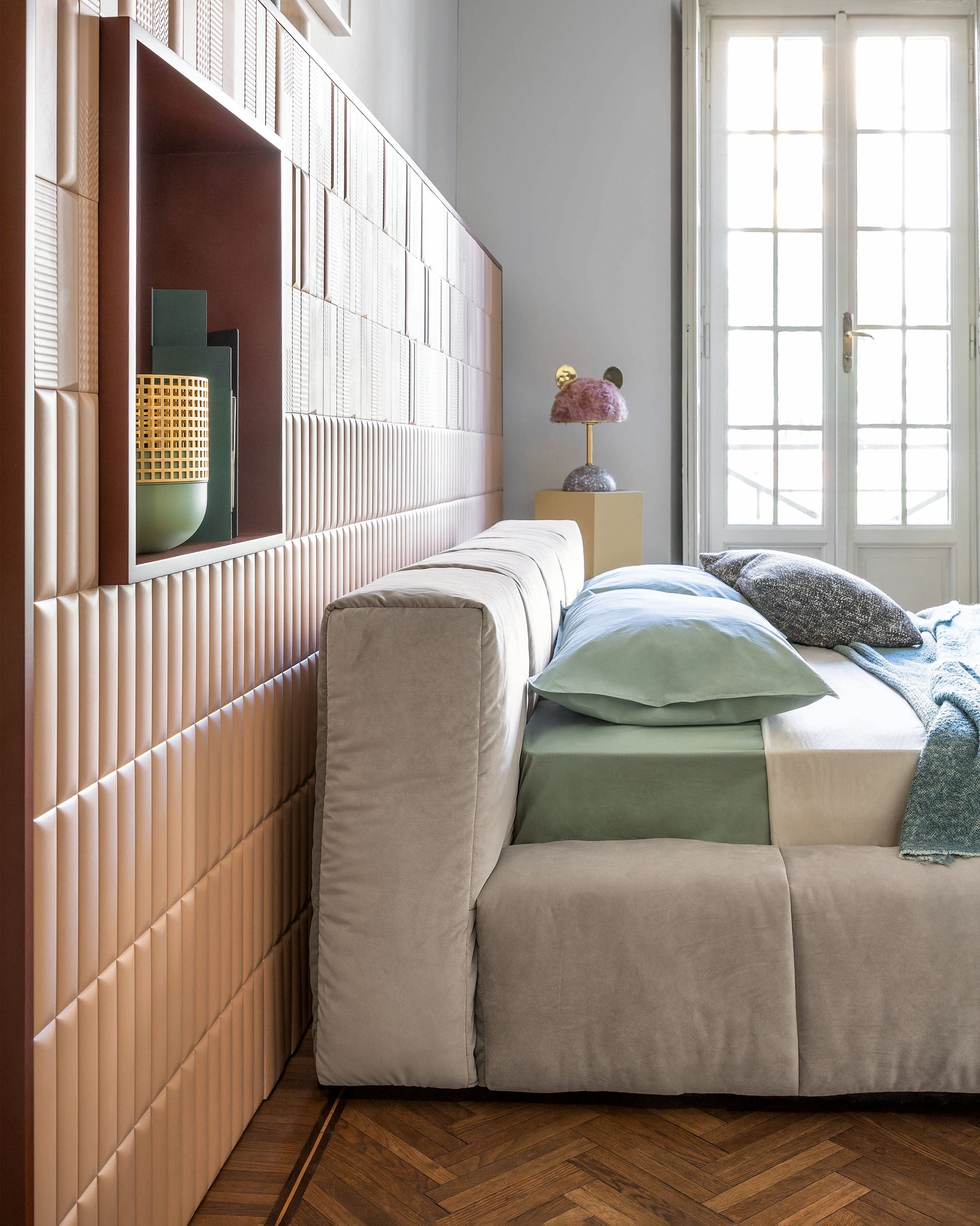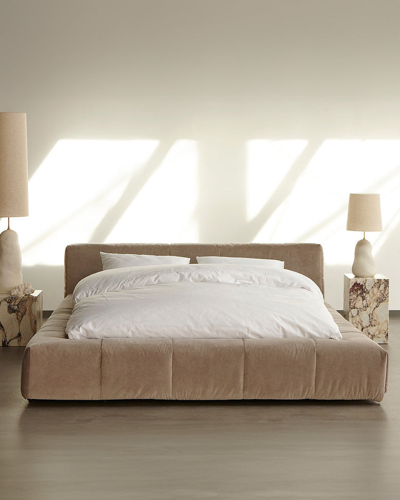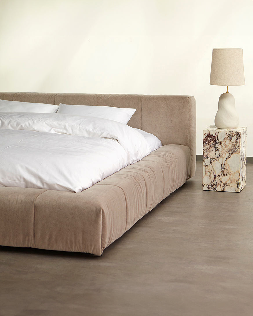Saba har overført sitt unike designuttrykk til soverommet med Pixel-sengen, og omgjort sitt ikoniske formspråk til en ny opplevelse av søvn. Pixel-sengen er generøst polstret med myke, avrundede kanter som gir et innbydende og komfortabelt uttrykk. Med karakteristiske vatterte sømmer, er både rammen og sengegavlen tydelig inspirert av den populære Pixel-sofaen.