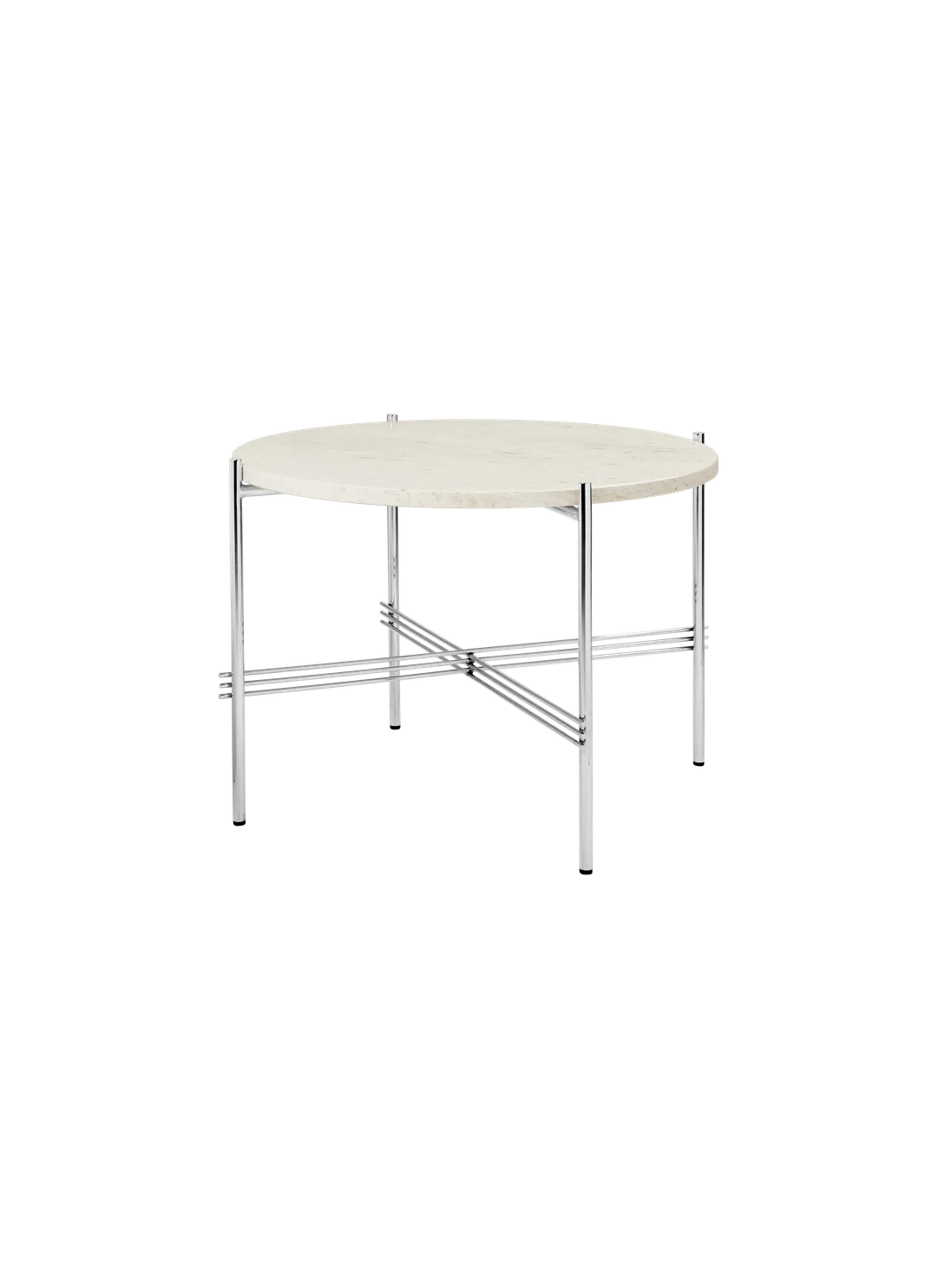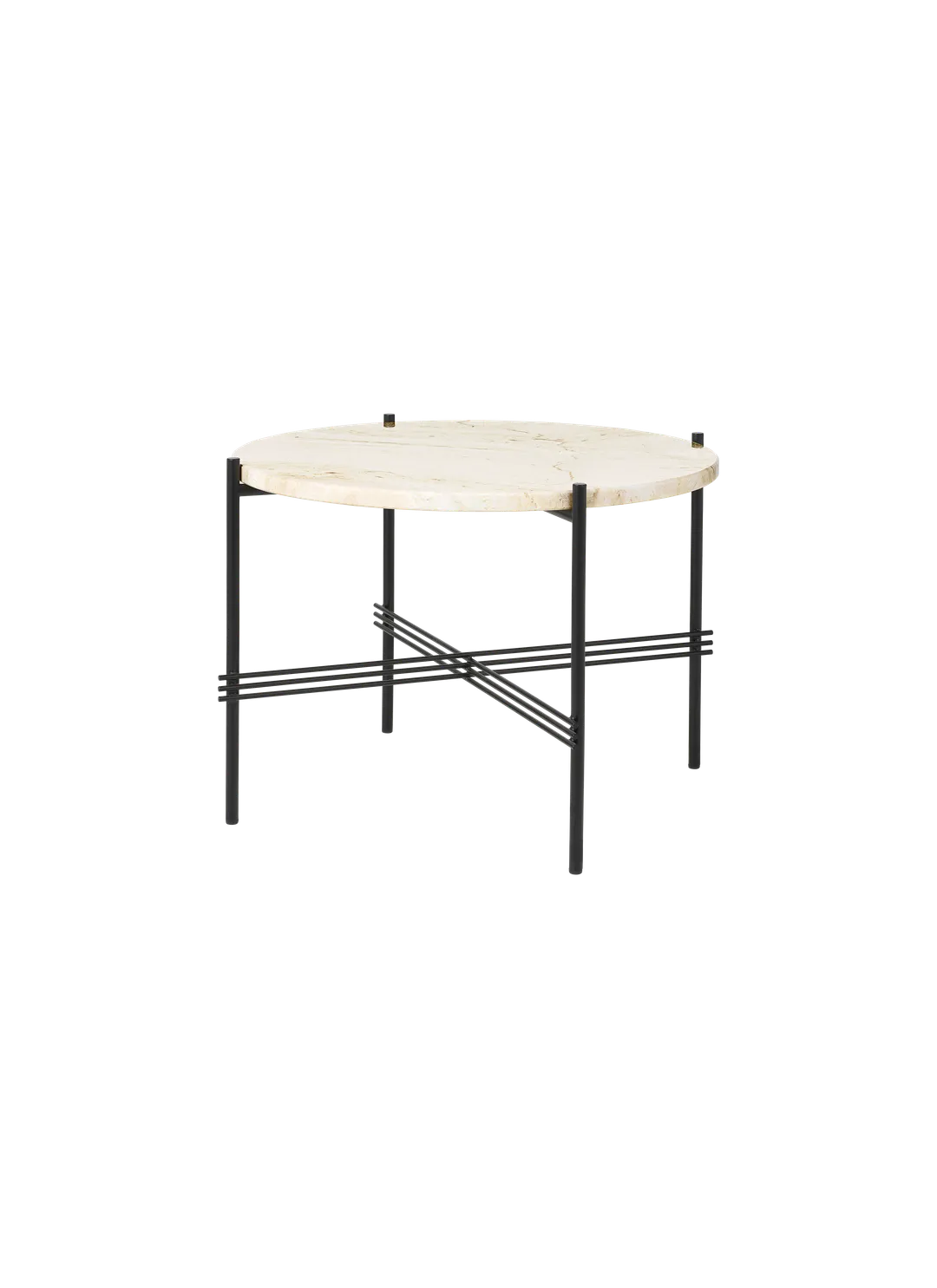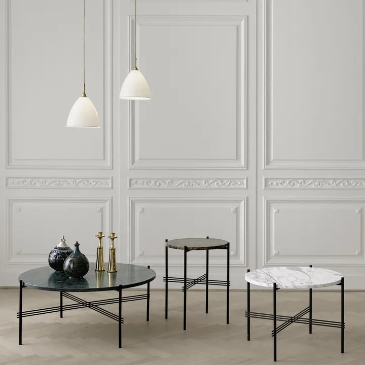 TS Coffee Table skaper en sofistikert og skulpturell estetikk for ethvert rom med sine karakteristiske slanke ben, vakre kryssende detaljer og en solid sirkulær bordplate i kontrast. Det tidløse TS Coffee Table fra GamFratesi er utvidet fra det klassiske TS Dining Table, laget for den anerkjente restauranten The Standard i København, hvor ikke bare navnet hentet sin inspirasjon, men også estetikk og materialvalg ble funnet.