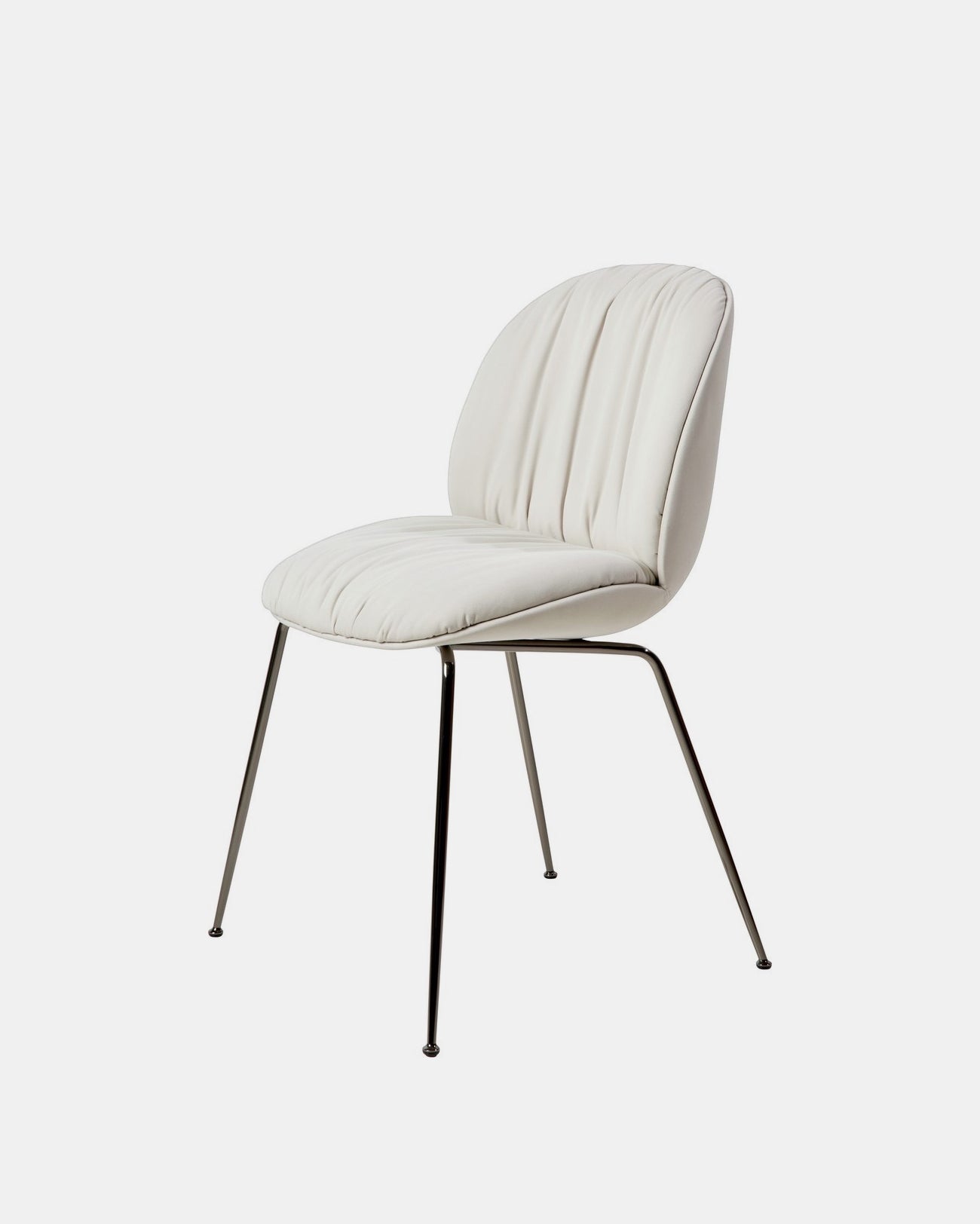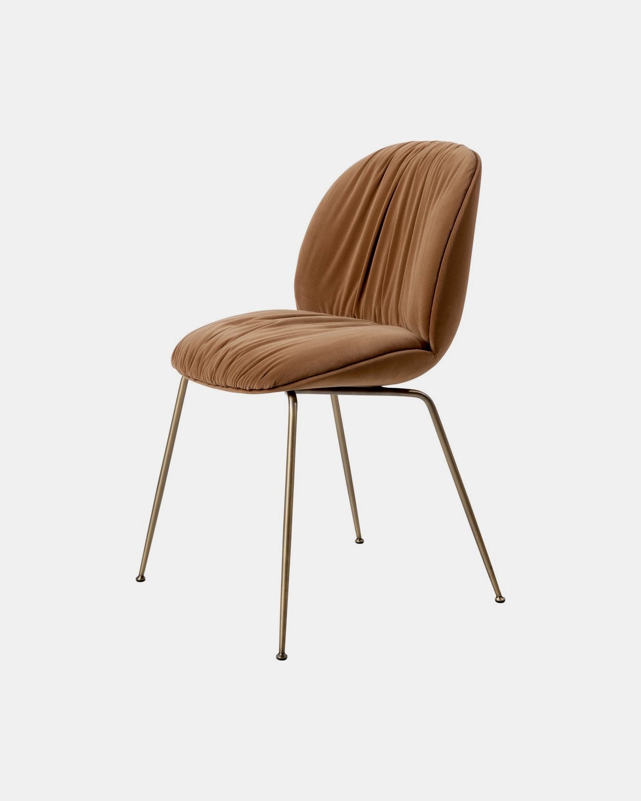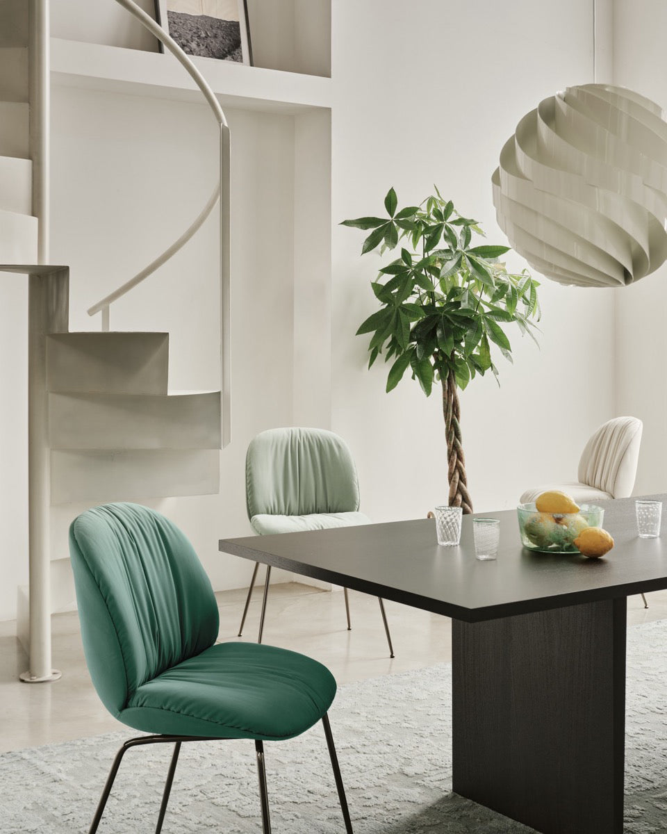 En moderne klassiker i ny drakt, Beetle Soft Dining Chair er en videreutvikling av den ikoniske Beetle-stolen fra 2013, designet av den dansk-italienske duoen GamFratesi. Med sitt karakteristiske formspråk intakt, fremstår denne varianten mer avslappet og taktil, med mykere polstring, løse folder og en piping-fri finish som gir stolen et uformelt og innbydende uttrykk.