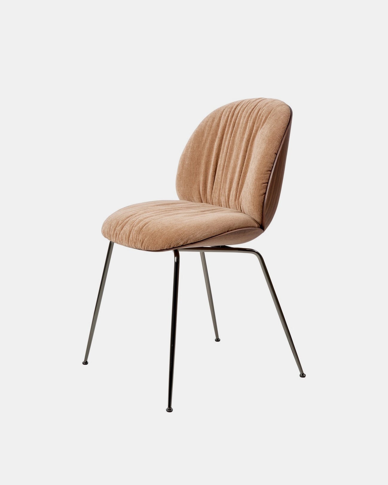 En moderne klassiker i ny drakt, Beetle Soft Dining Chair er en videreutvikling av den ikoniske Beetle-stolen fra 2013, designet av den dansk-italienske duoen GamFratesi. Med sitt karakteristiske formspråk intakt, fremstår denne varianten mer avslappet og taktil, med mykere polstring, løse folder og en piping-fri finish som gir stolen et uformelt og innbydende uttrykk.