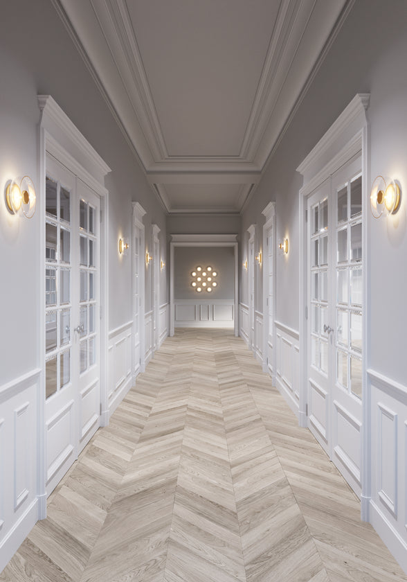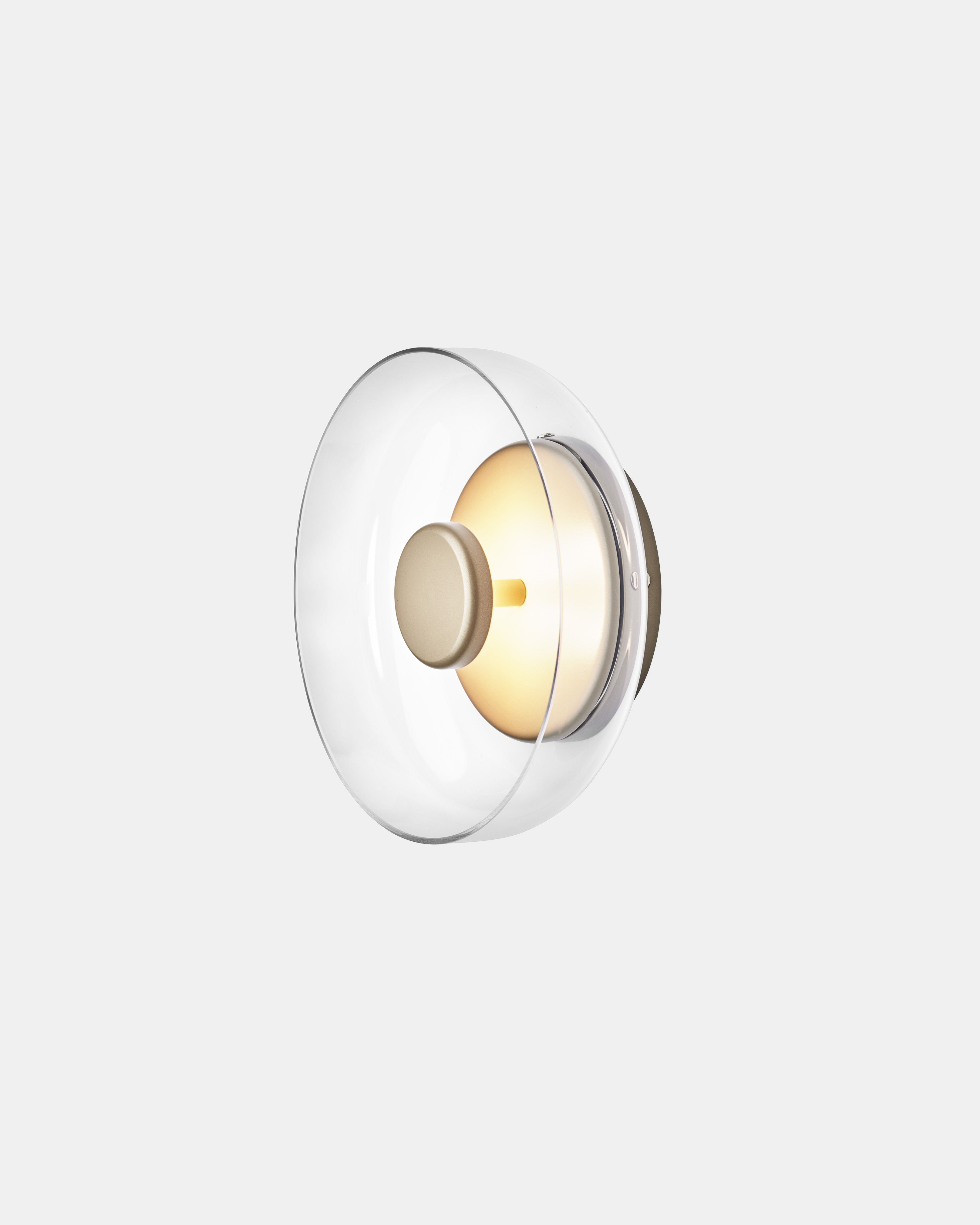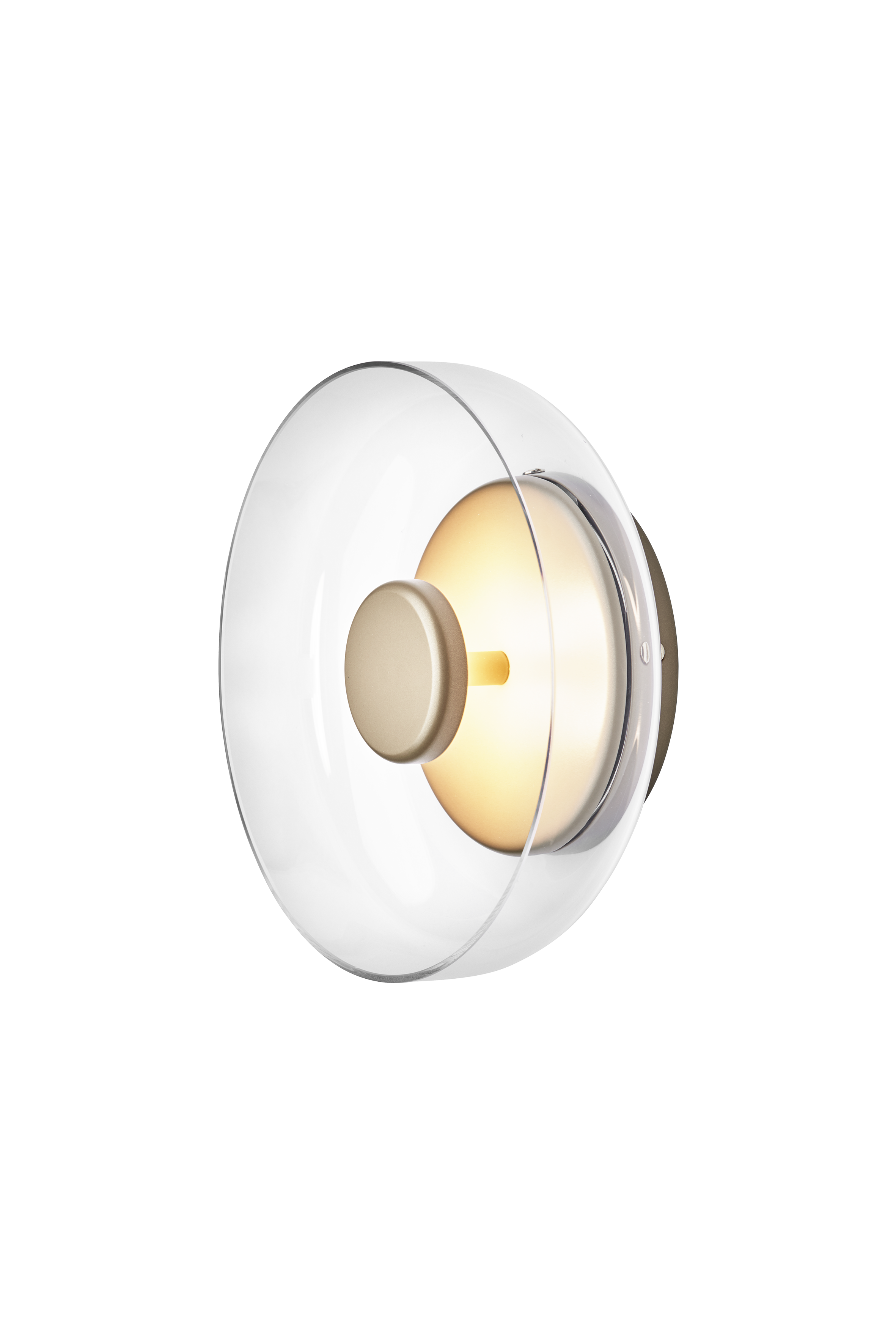 Blossi vegglampen er designet med en ren, organisk silhuett. Den kommer i to varianter, en med klart glass og en med opalt glass. Den gylne metallfinishen gir en varm og diskré atmosfære til rommet. Blossi-kolleksjonen produseres nå i en lavspenningsversjon med et lett utskiftbart LED-kort som gir flimmerfritt lys og oppfyller de siste EU-restriksjonene. Den spesialutviklede LED-platen reflekterer lyset i den klare glassskjermen og sprer et mykt, gyllent lys. De nye lavspenningsversjonene av Blossi-serien er bedre kompatible med de fleste vanlige dempesystemer enn tidligere.