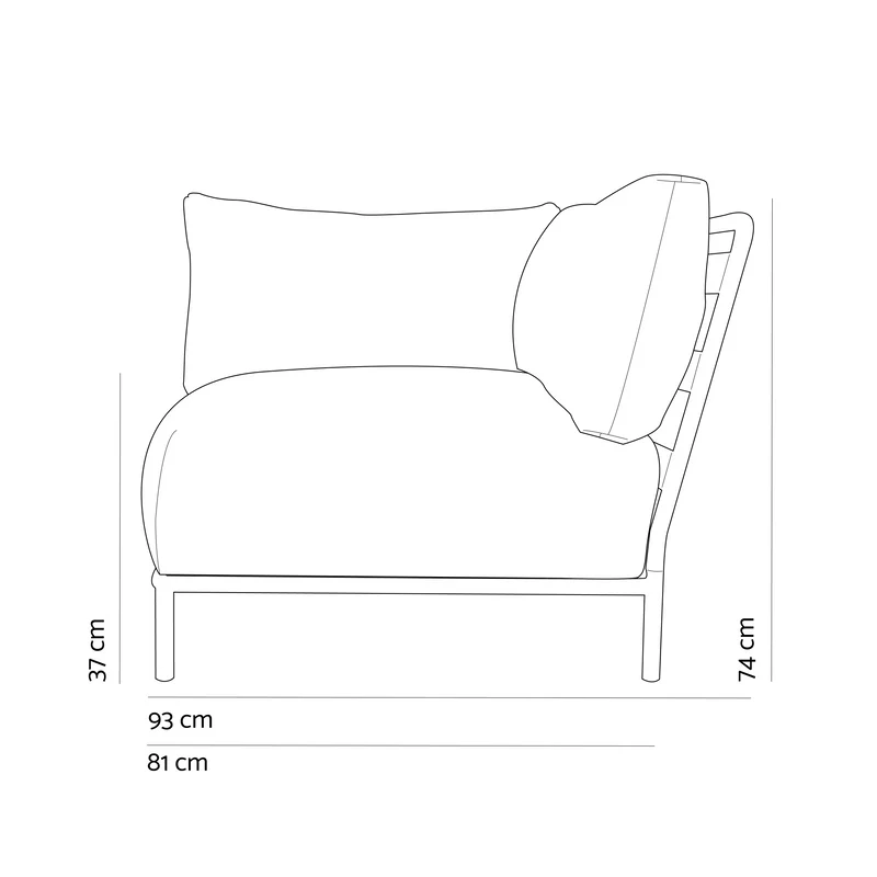Denne er en del av en modulsofa som tilbyr fleksibilitet, slik at du kan bruke en enkelt modul som en loungestol eller koble sammen flere moduler for å lage en tilpasset sofa som passer perfekt til uterommet ditt. Modulene kobles enkelt sammen med de medfølgende clip-on-holderne.