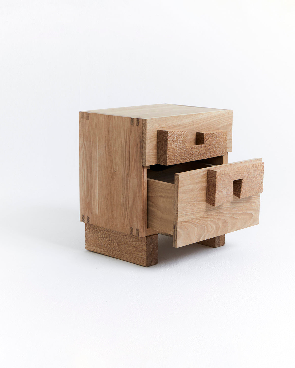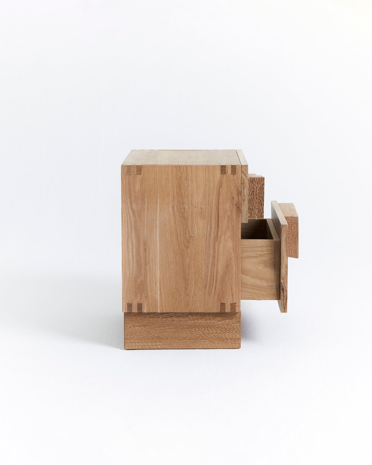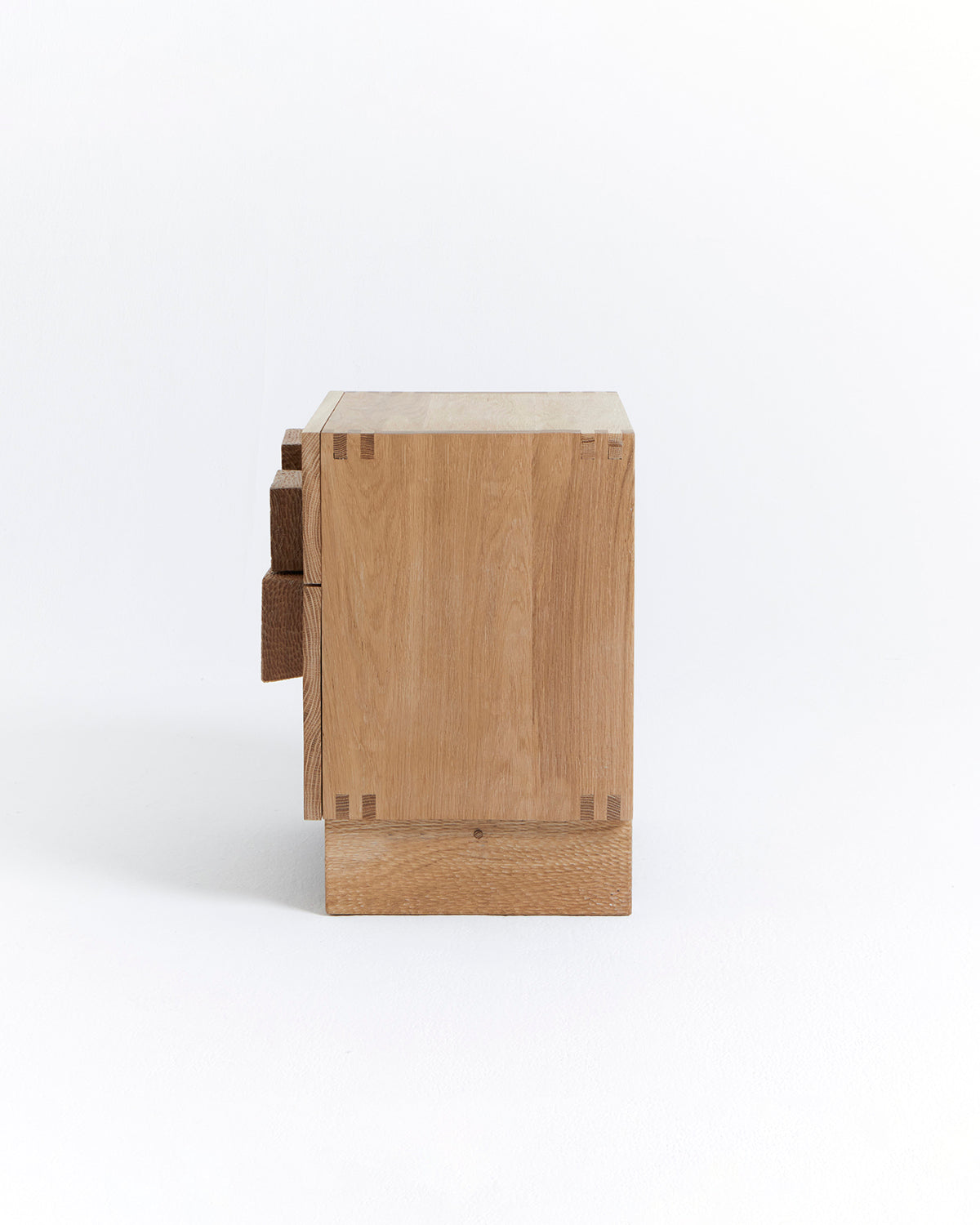 Eik er et naturlig materiale som kan variere i farge og struktur, og med tiden utvikle en unik patina. Dette gir hvert nattbord et særegent uttrykk.