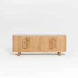 Douro skjenk er et sofistikert design fra 2023, håndlaget av dyktige håndverkere i massiv eik. Skjenken har to sett med doble dører, håndtak og ben med håndskårne detaljer, som gir et elegant og taktilt uttrykk.