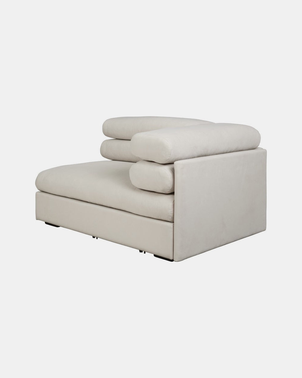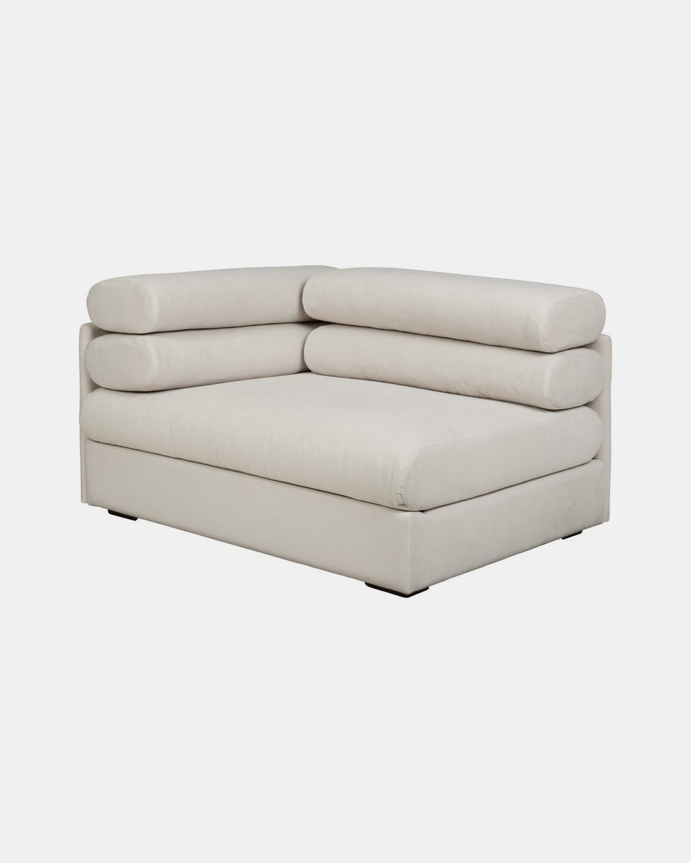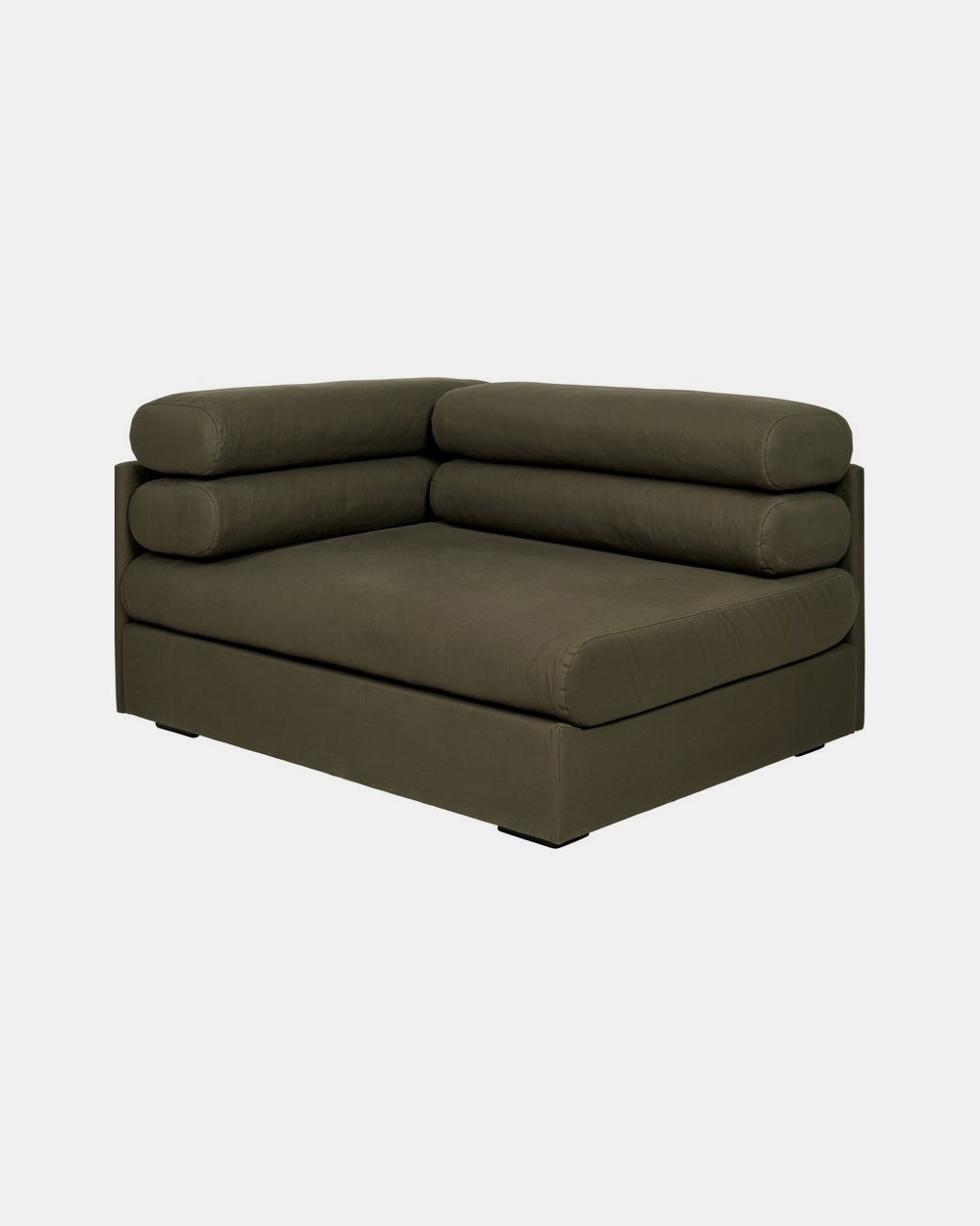 Denne hjørnemodulen fungerer som et naturlig utgangspunkt eller avslutning i et oppsett, og kan kombineres med midtmoduler eller andre hjørnedeler for å skape både klassiske sofaformer og mer lekne løsninger. De store, utskiftbare putene kan flyttes rundt, slik at sofaen enkelt kan tilpasses både rommet og behovene over tid.