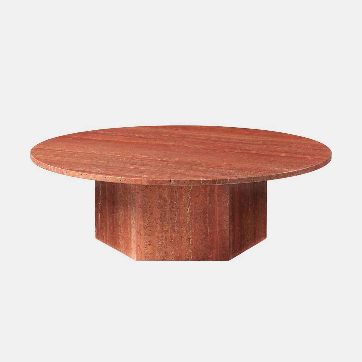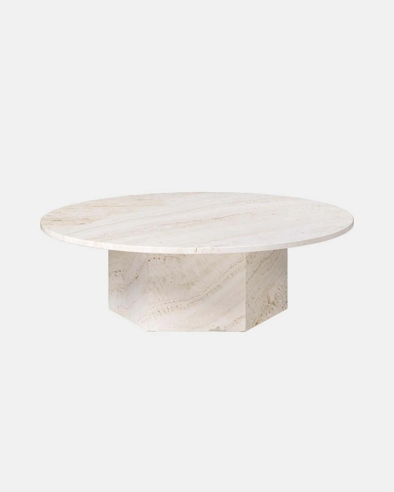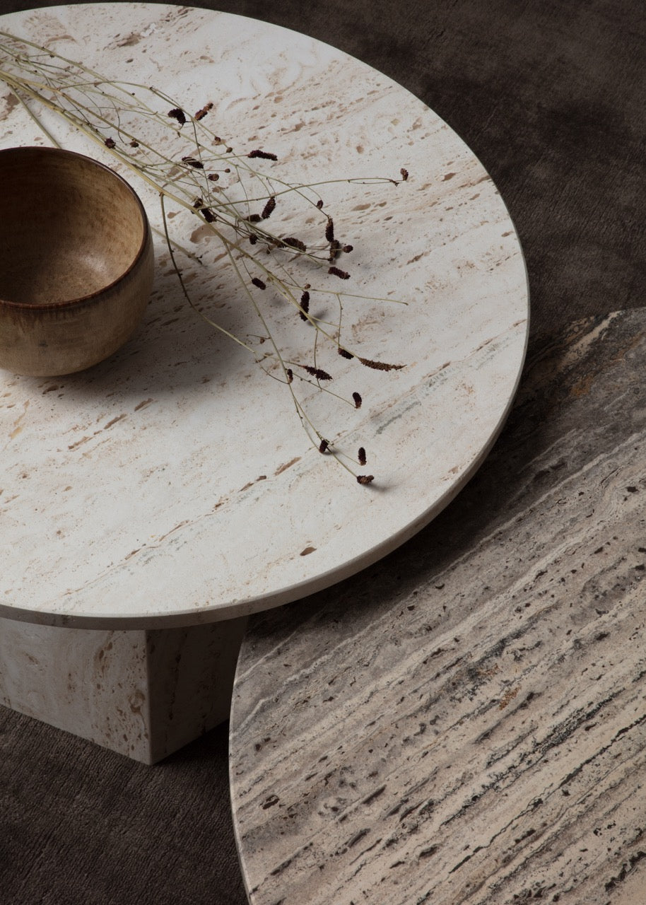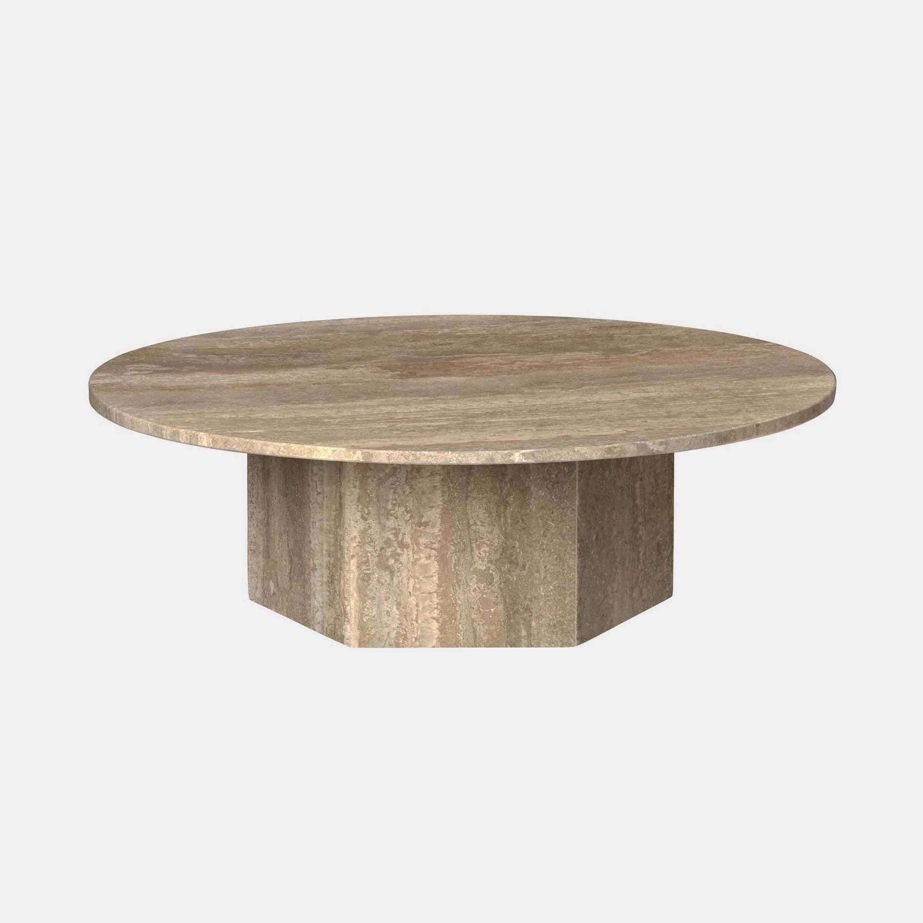 Epic-bordet, designet av GamFratesi, er et skulpturelt møbel inspirert av gresk og romersk arkitektur. Laget i Italia av travertinstein, fremhever bordet steinens naturlige årer, tekstur og patina, som gir et unikt og levende uttrykk.
