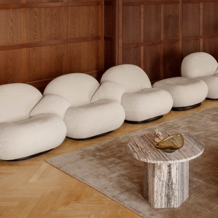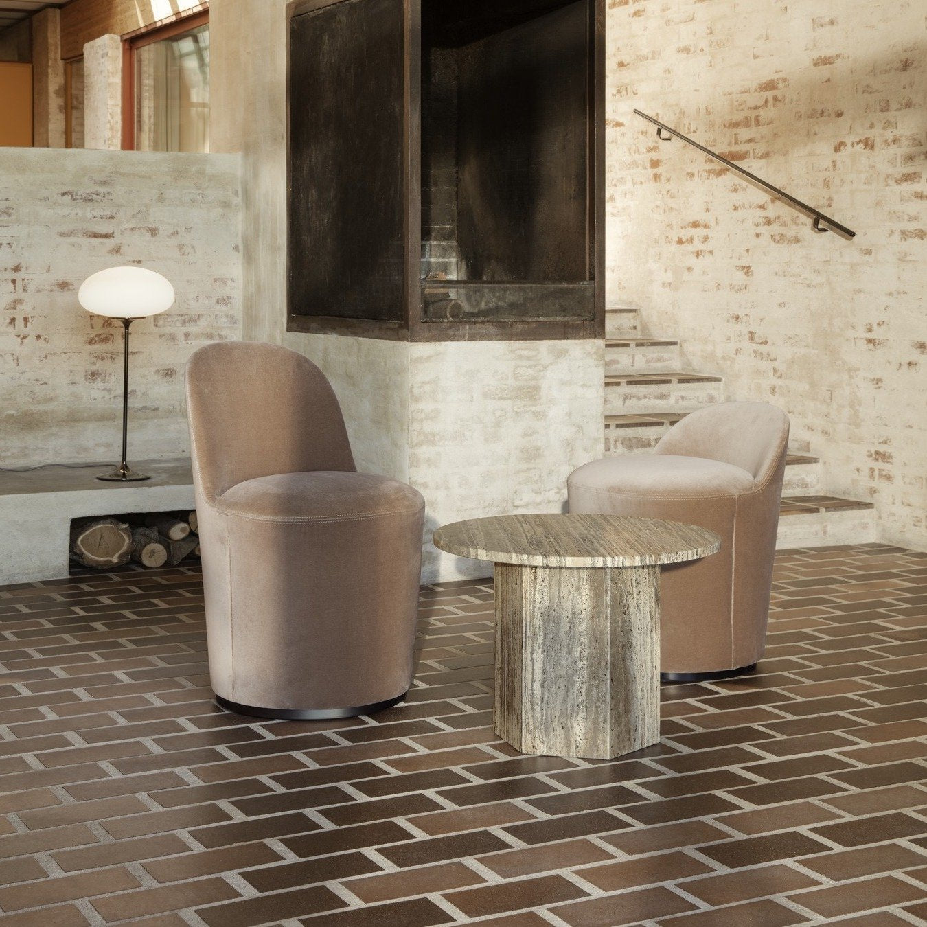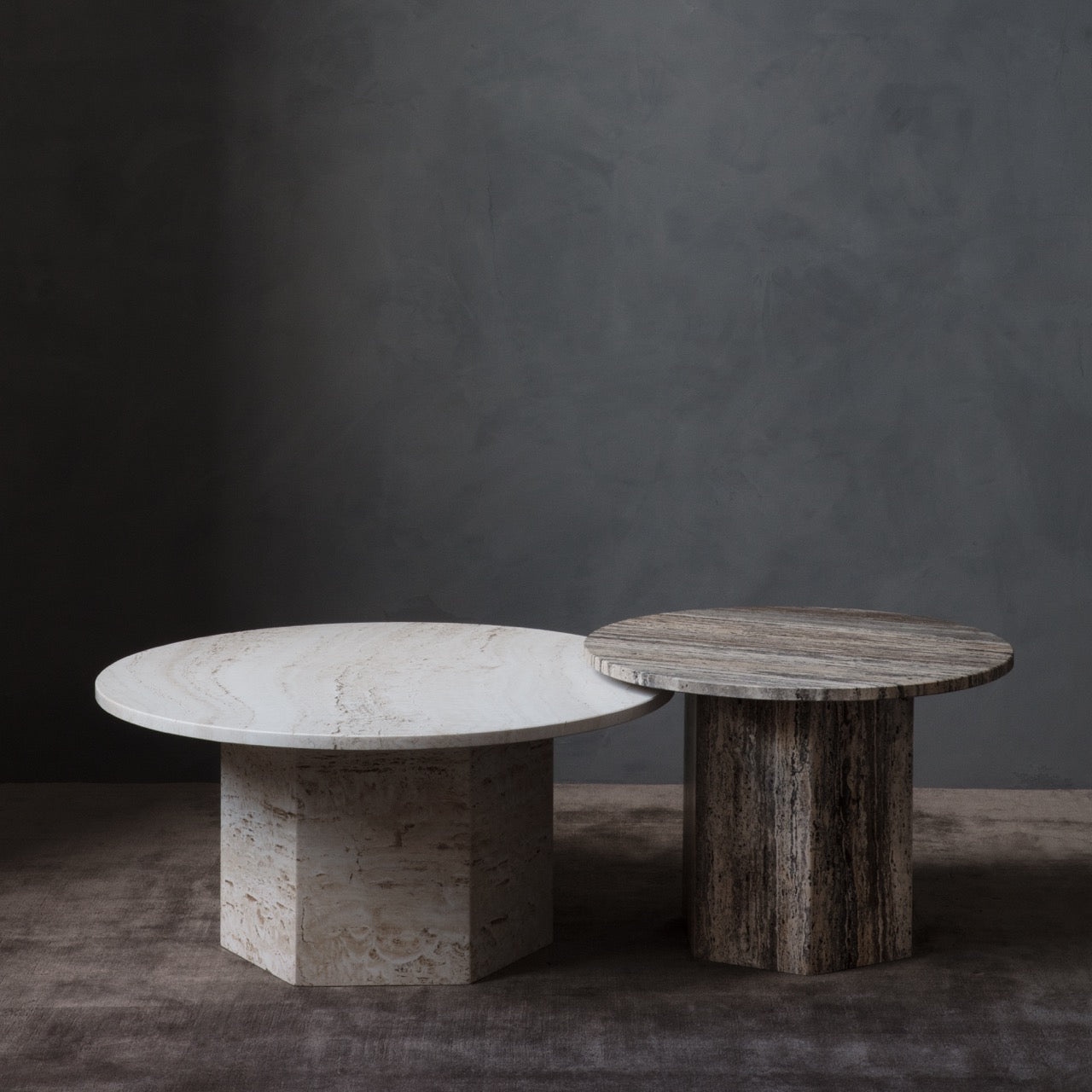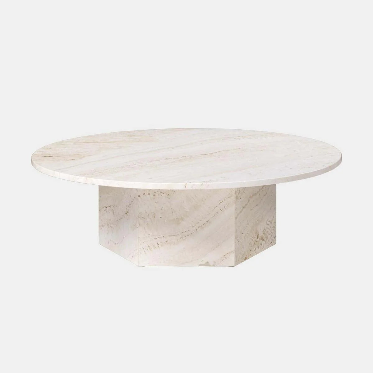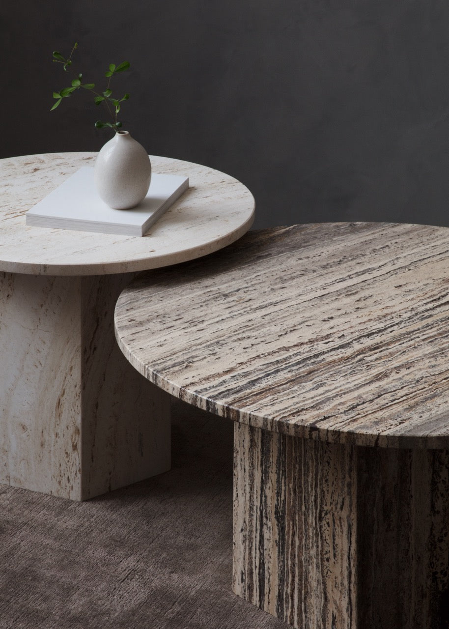 Epic-bordet, designet av GamFratesi, er et skulpturelt møbel inspirert av gresk og romersk arkitektur. Laget i Italia av travertinstein, fremhever bordet steinens naturlige årer, tekstur og patina, som gir et unikt og levende uttrykk.