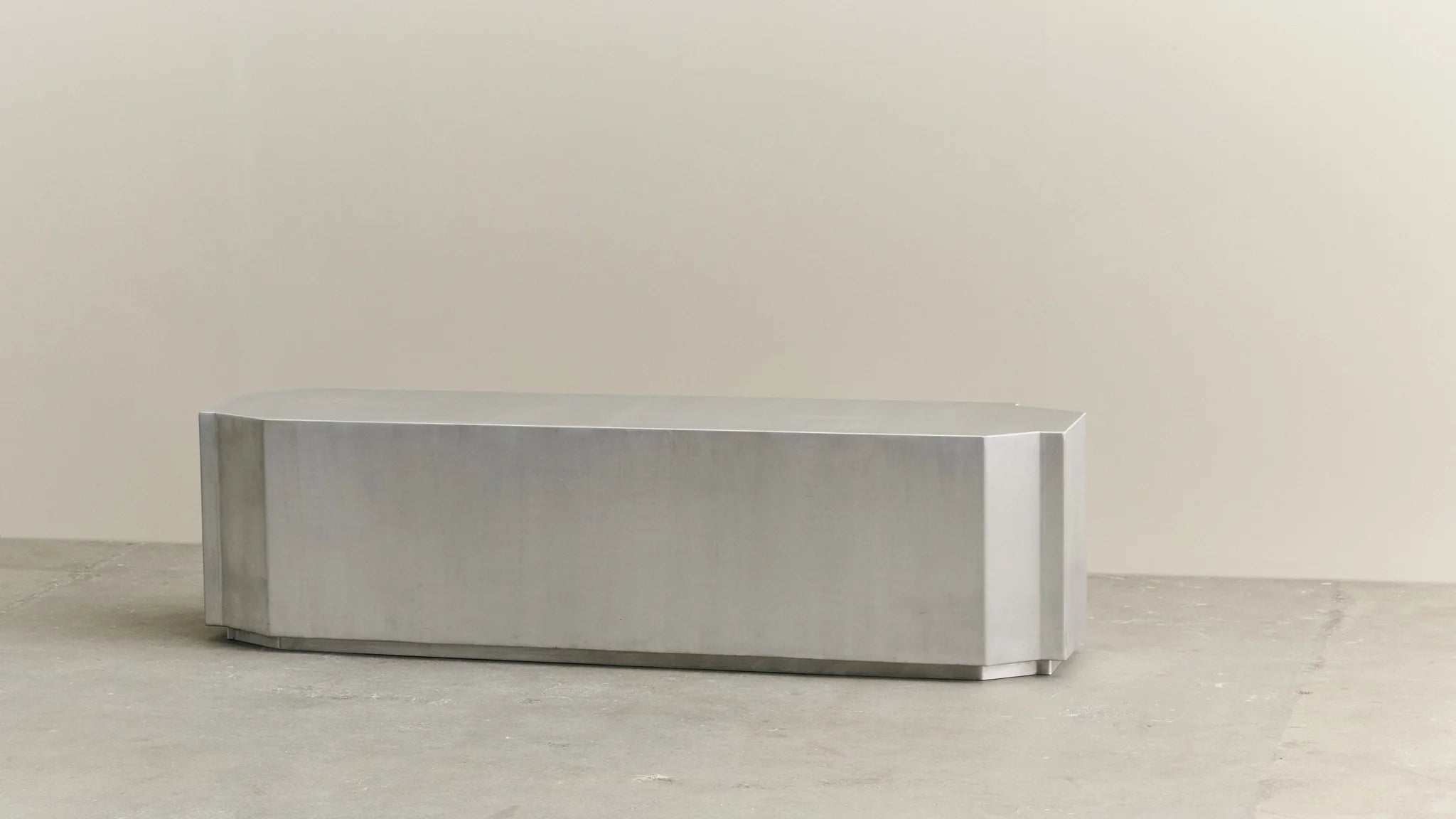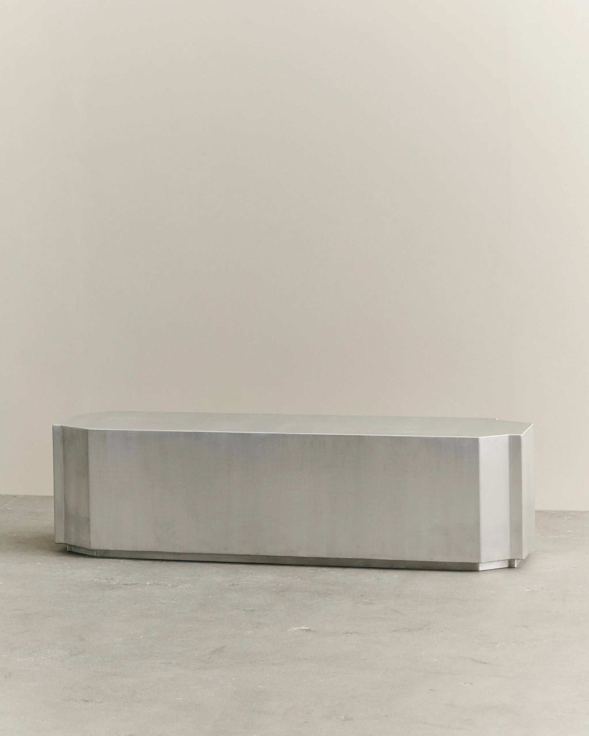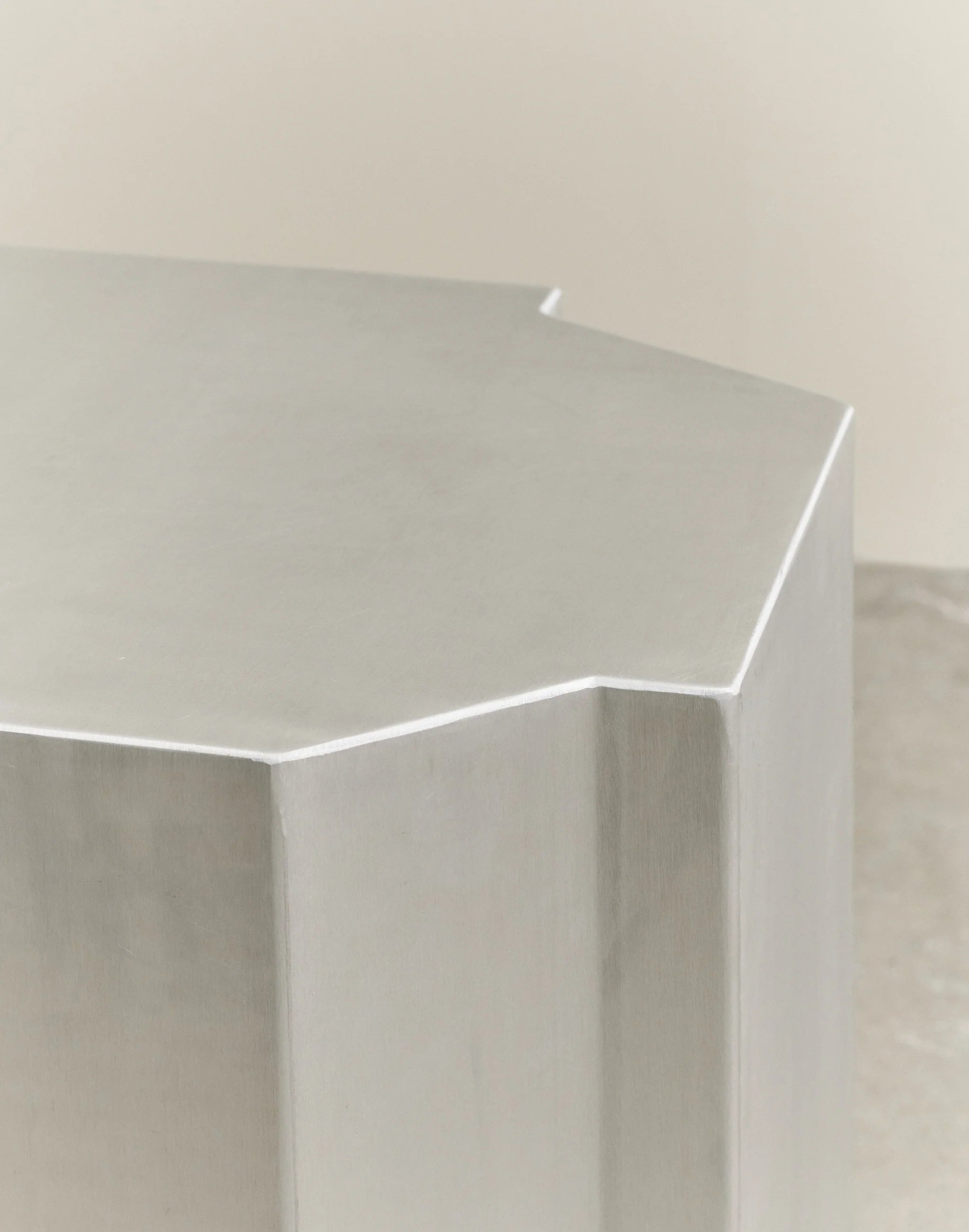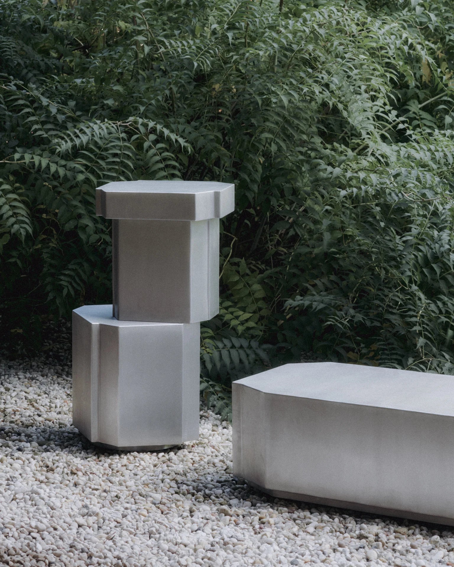 Den skulpturelle bordet er håndsveiset av dyktige håndverkere; mindre variasjoner i vekt og fargeintensitet angir kun den genuine skapelsen. De to inntrykkene, børstet aluminium og råjern, tåler begge utendørs. Dette gir hele serien allsidighet.
