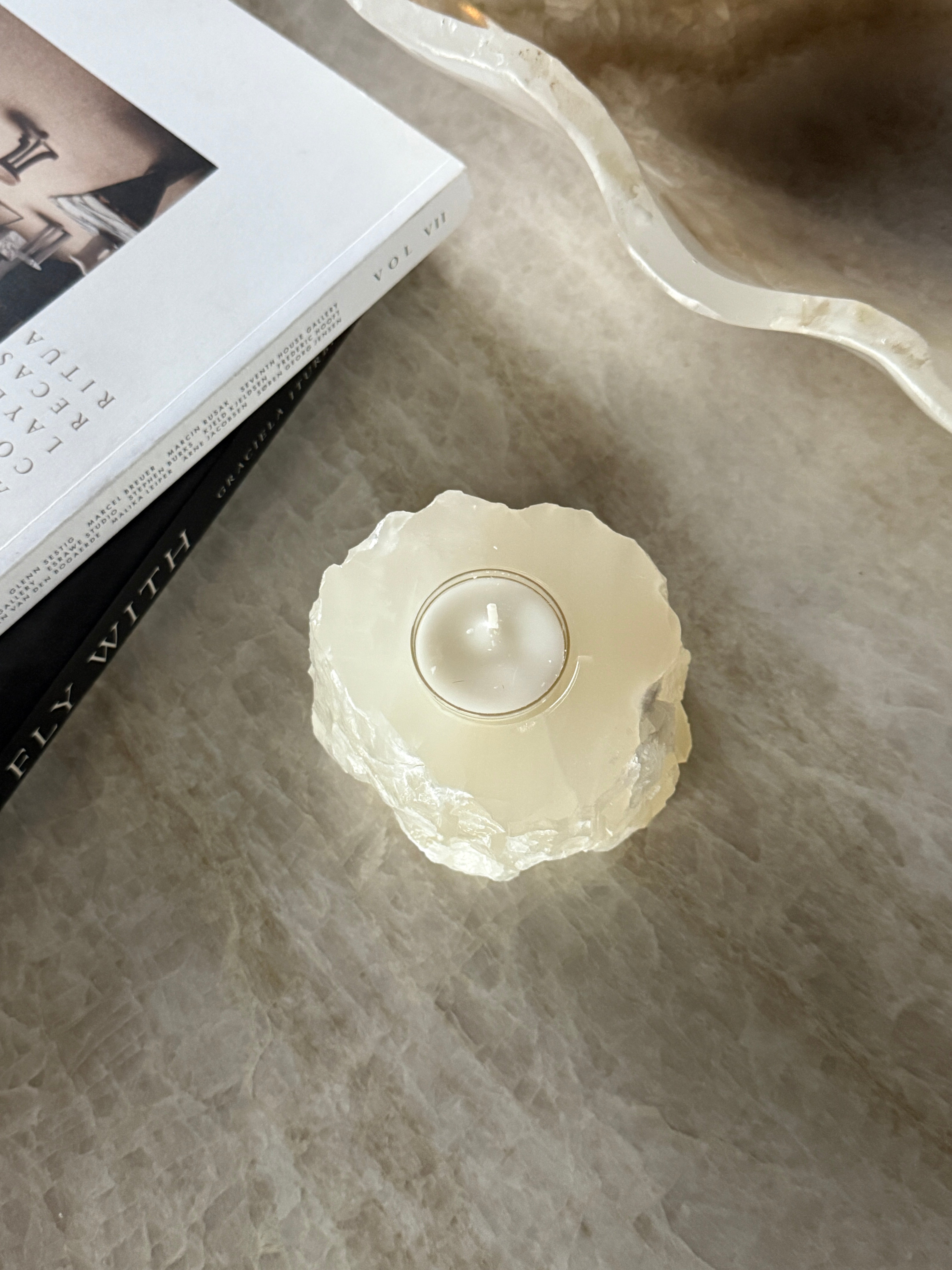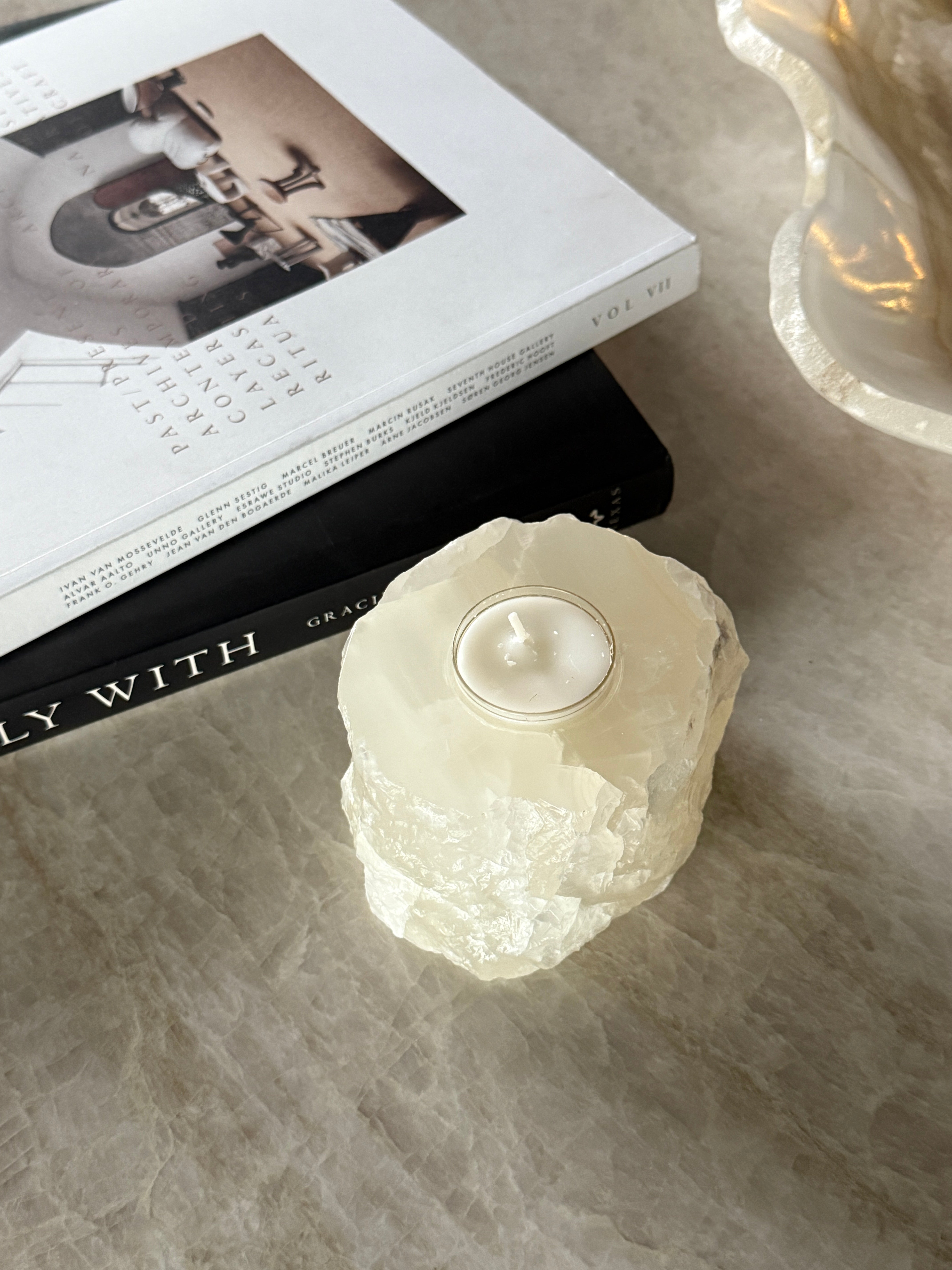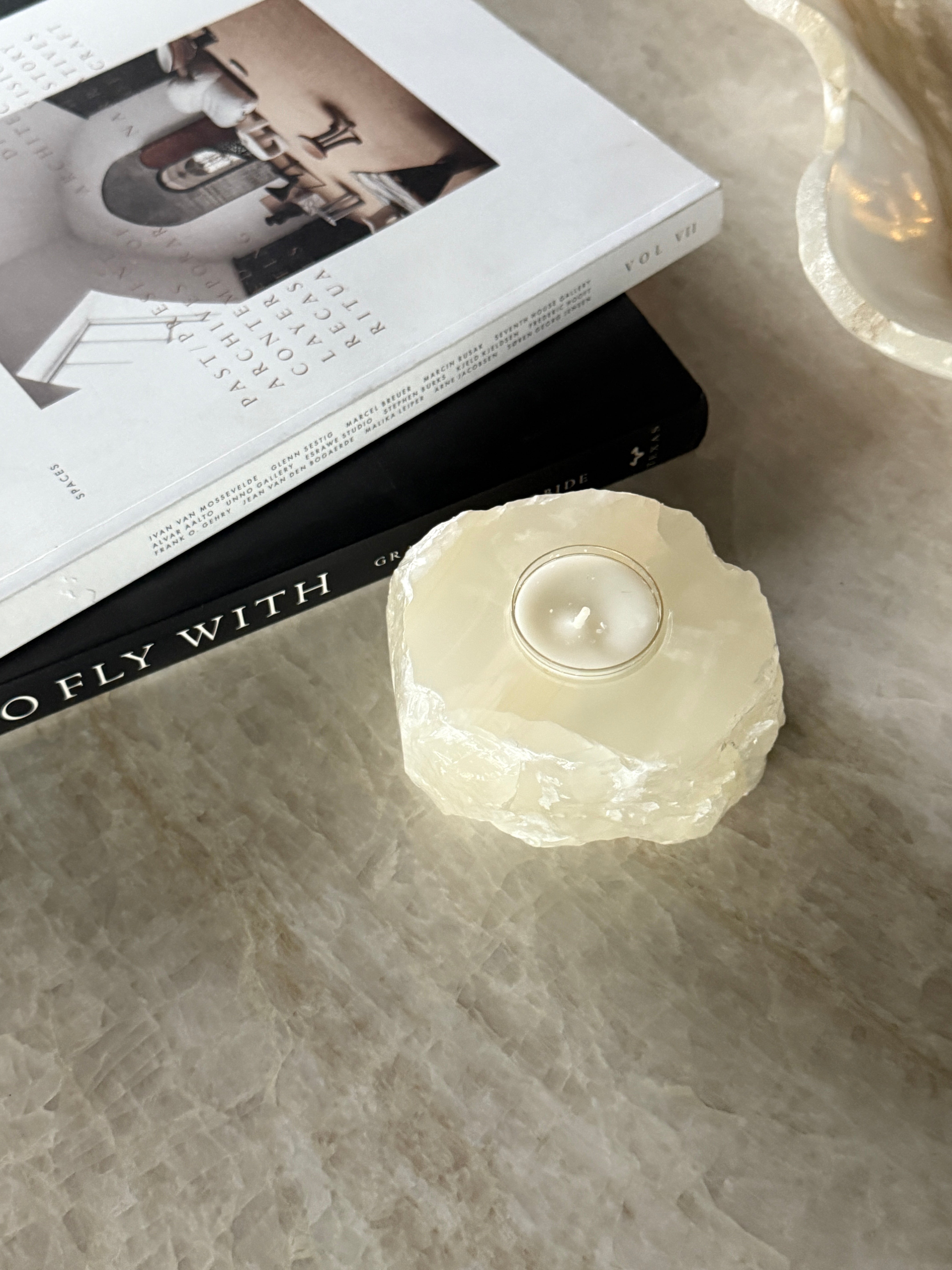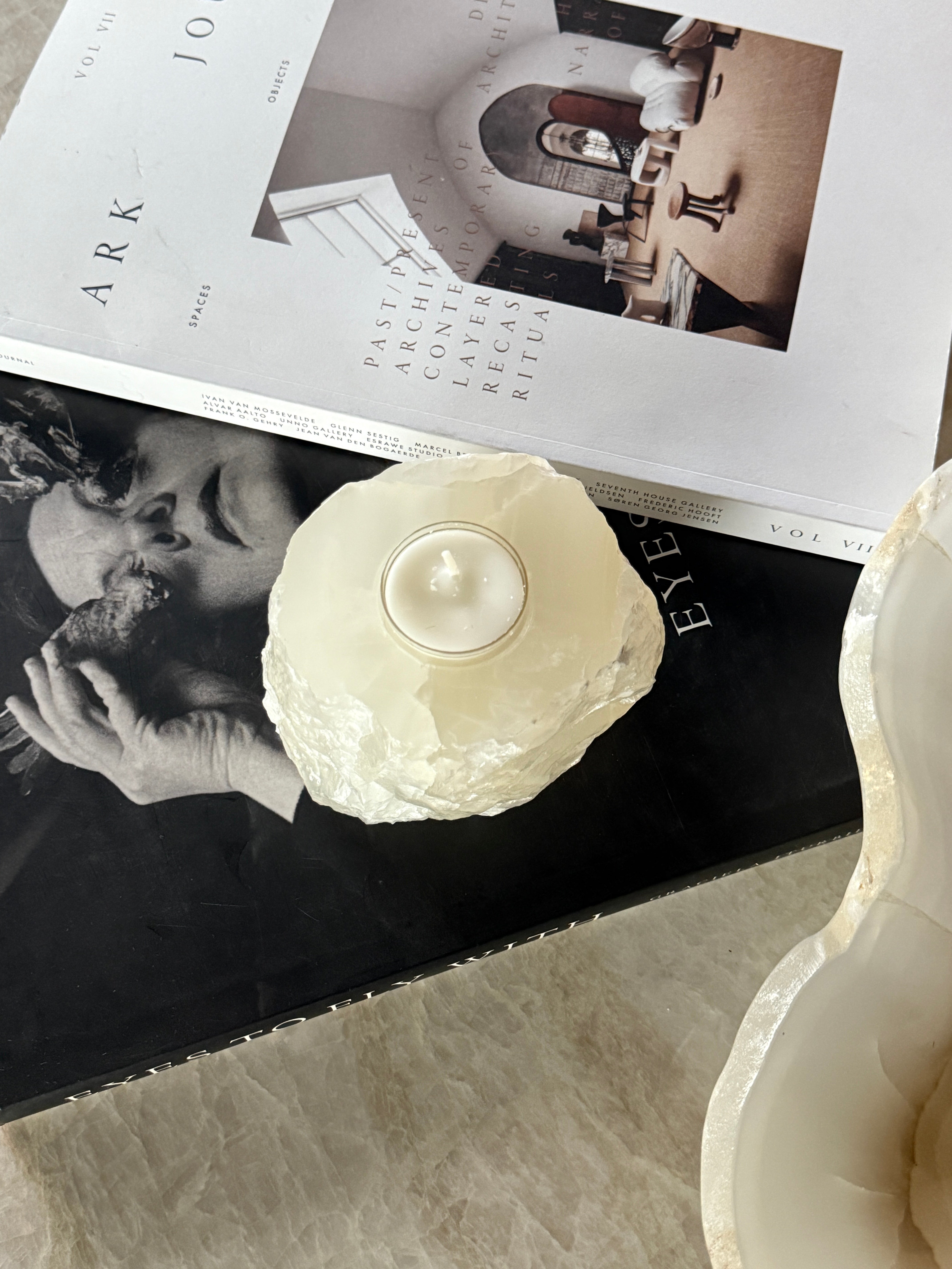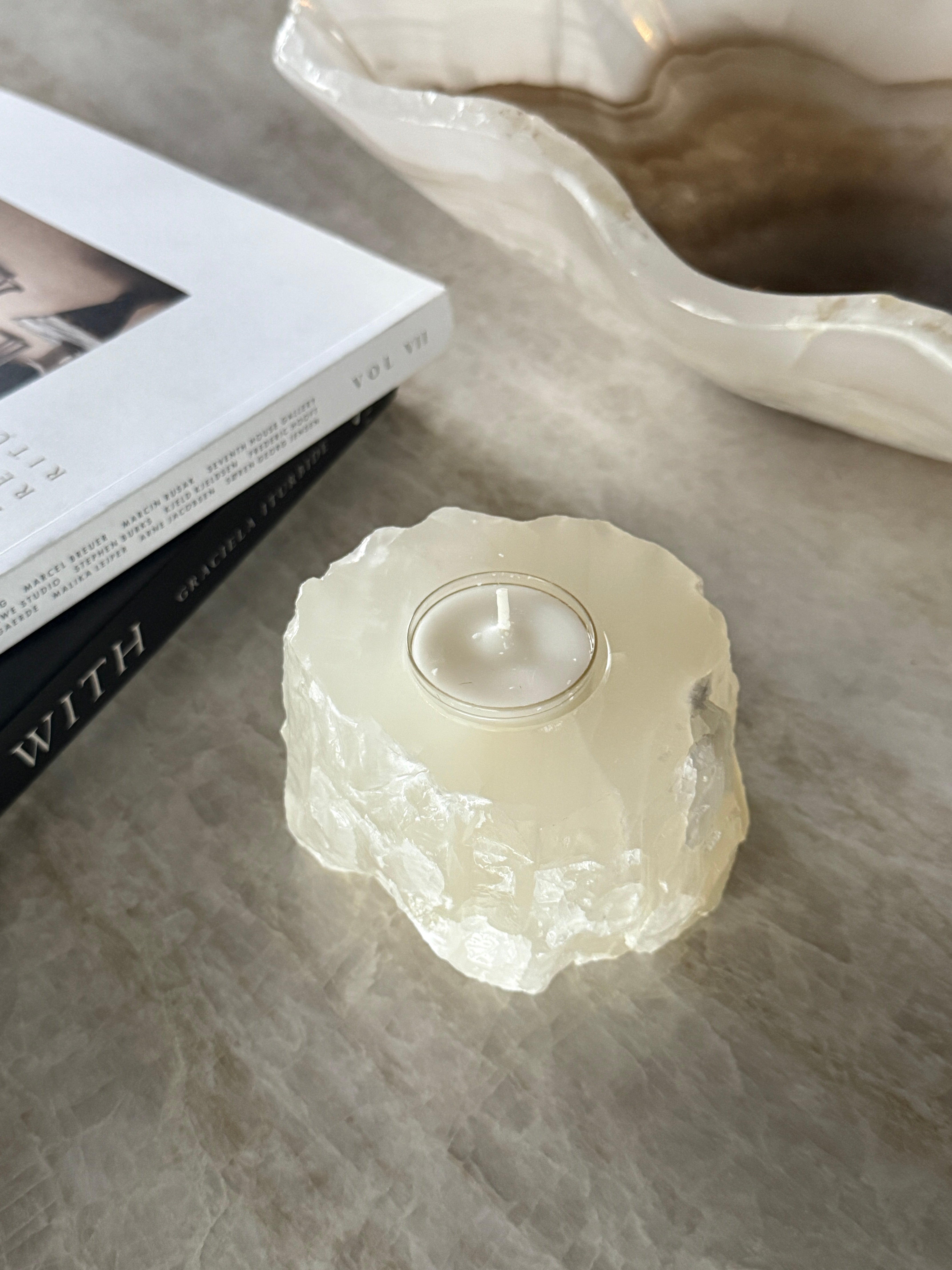 Vakker, rå og grov onyx-telysholder, håndlaget av høykvalitets onyx i Mexico. Dens elegante og unike farge gir et snev av raffinement til ethvert rom. Perfekt som en dekorativ tilegg; hvert stykke viser frem kunstnerisk meksikansk håndverk. Tidløs skjønnhet og  vakkert håndverksmessige kvalitet!