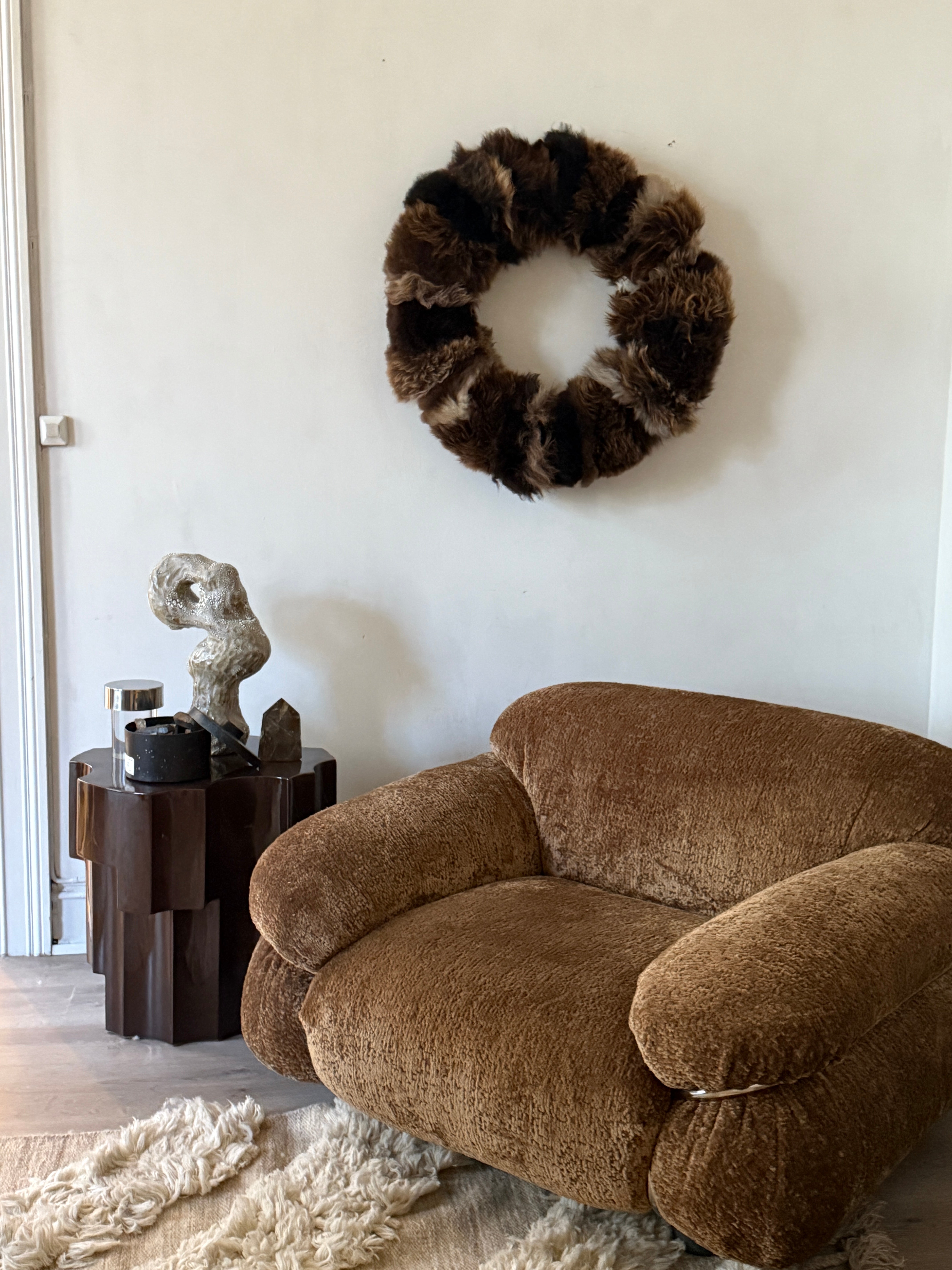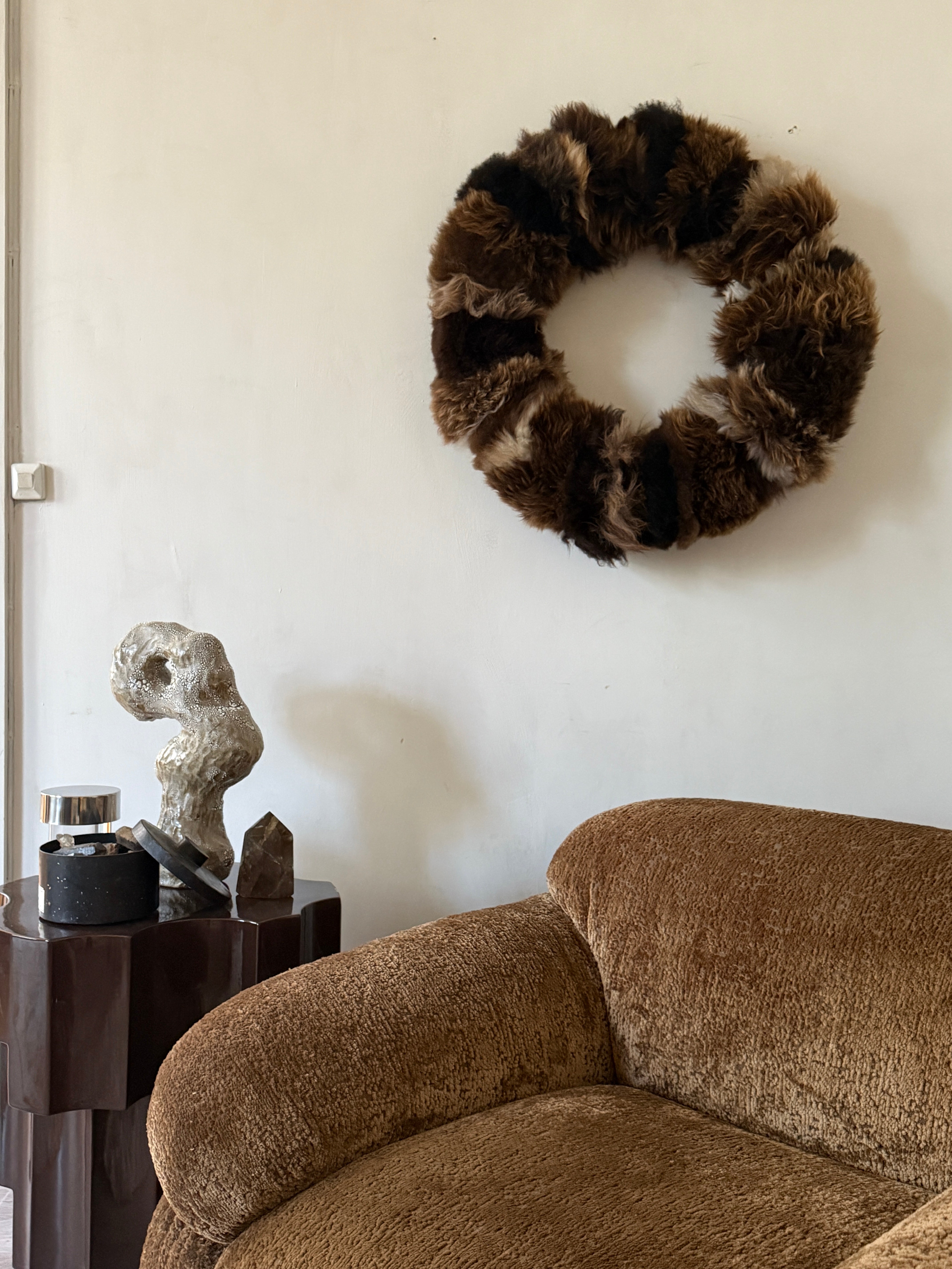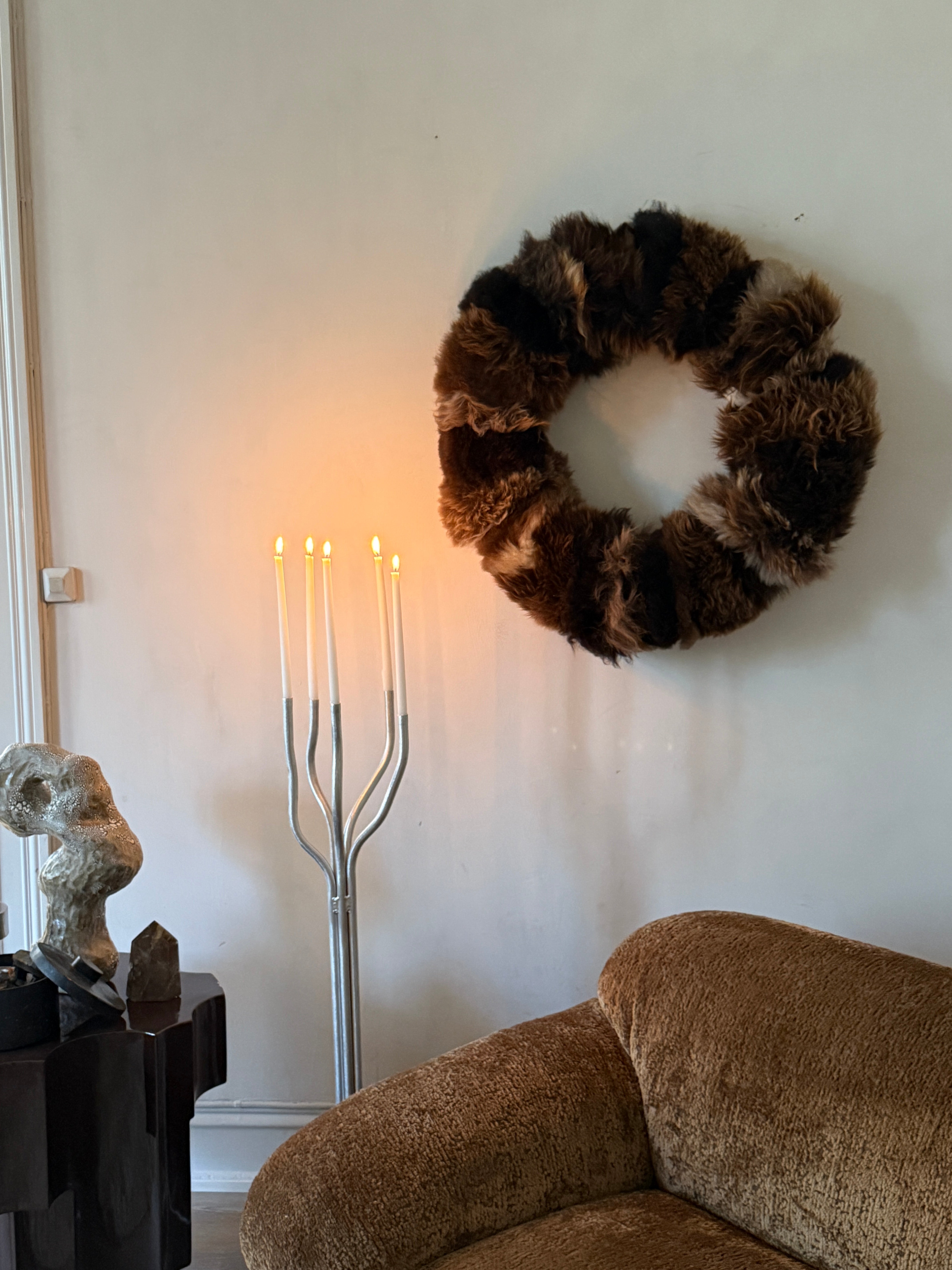 Gi hjemmet et varmt og naturlig uttrykk med denne håndlagde kransen i ekte saueskinn. Kransen er helt unik og laget for å vare i mange år. Den myke, fluffy overflaten gir et eksklusivt og nordisk preg som passer perfekt både til jul og resten av året. Heng den på døren, over peisen eller som en dekorativ detalj på veggen – et tidløst innslag som skaper lun stemning sesong etter sesong.