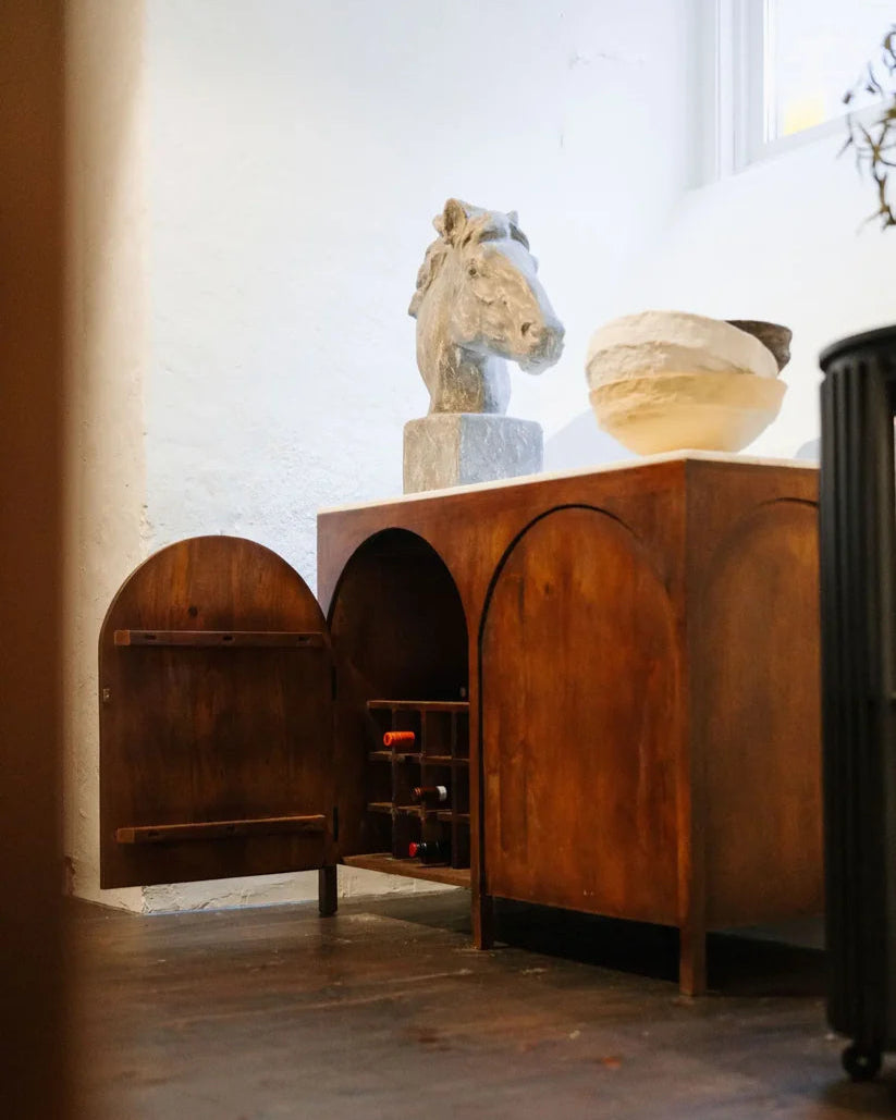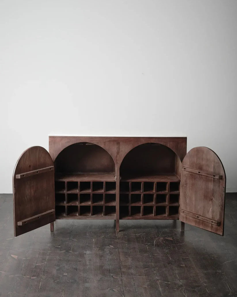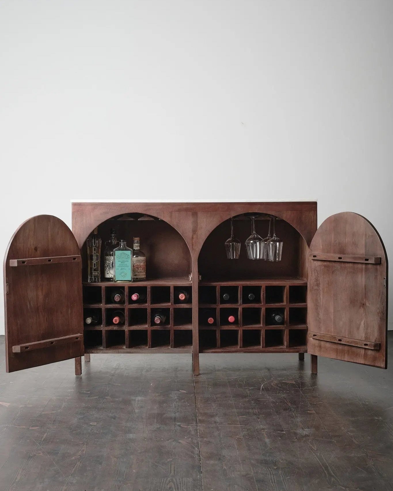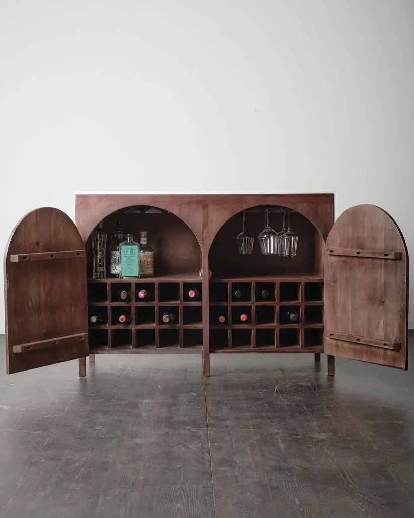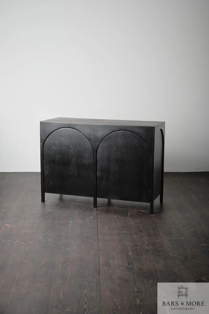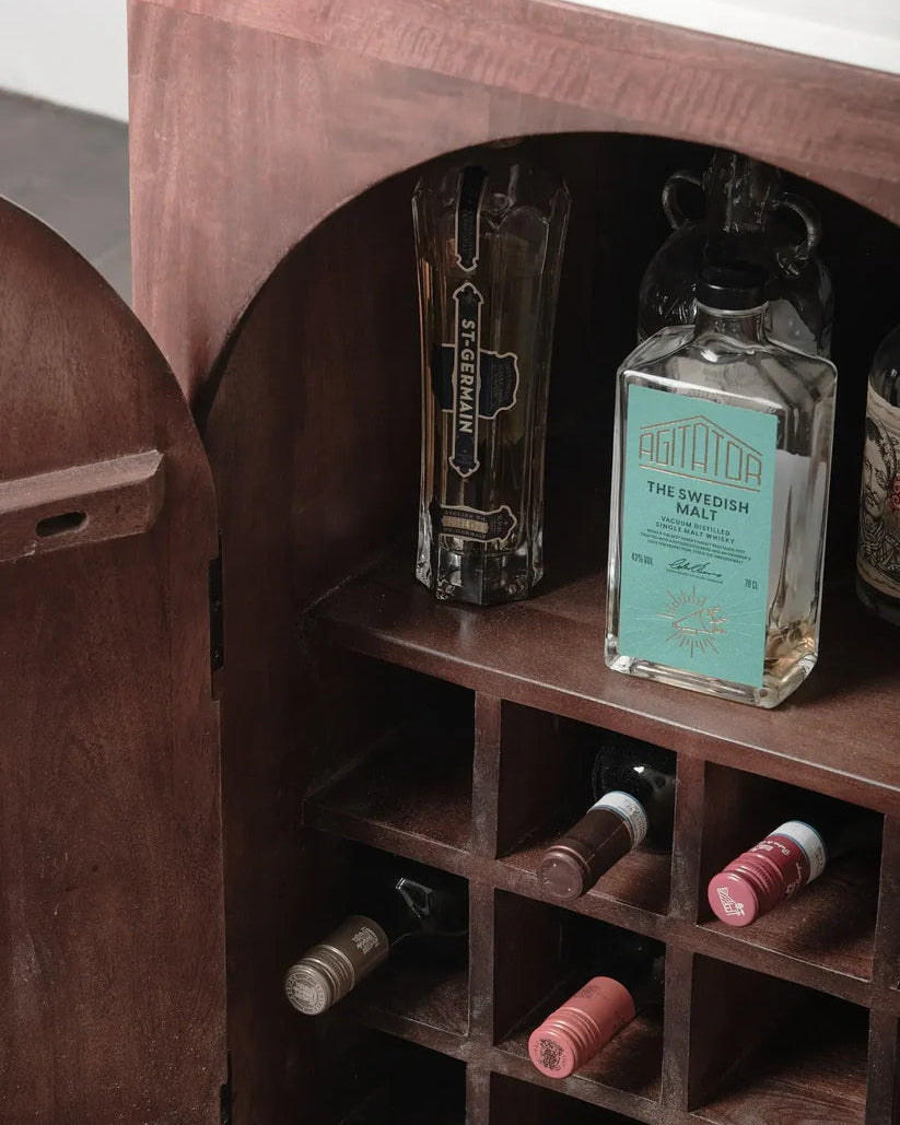 Lukket oppbevaring: Bak de to stilige dørene finner du ekstra plass til brennevin, barverktøy og tilbehør, slik at alt holdes pent organisert og innen rekkevidde.