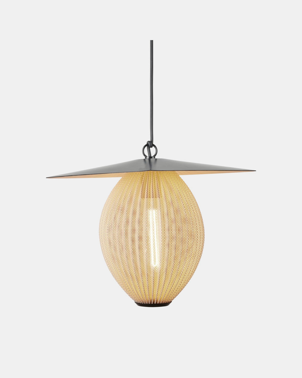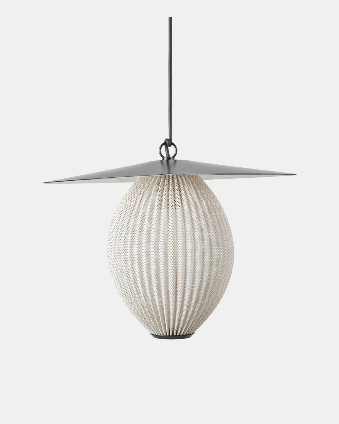 Satellite Outdoor Pendant fra GUBI er en videreføring av den ikoniske Satellite-kolleksjonen, opprinnelig designet av Mathieu Matégot i 1953. Nå tilgjengelig i en utgave spesielt utviklet for utendørs bruk, kombinerer denne pendellampen leken modernisme med funksjonell eleganse.