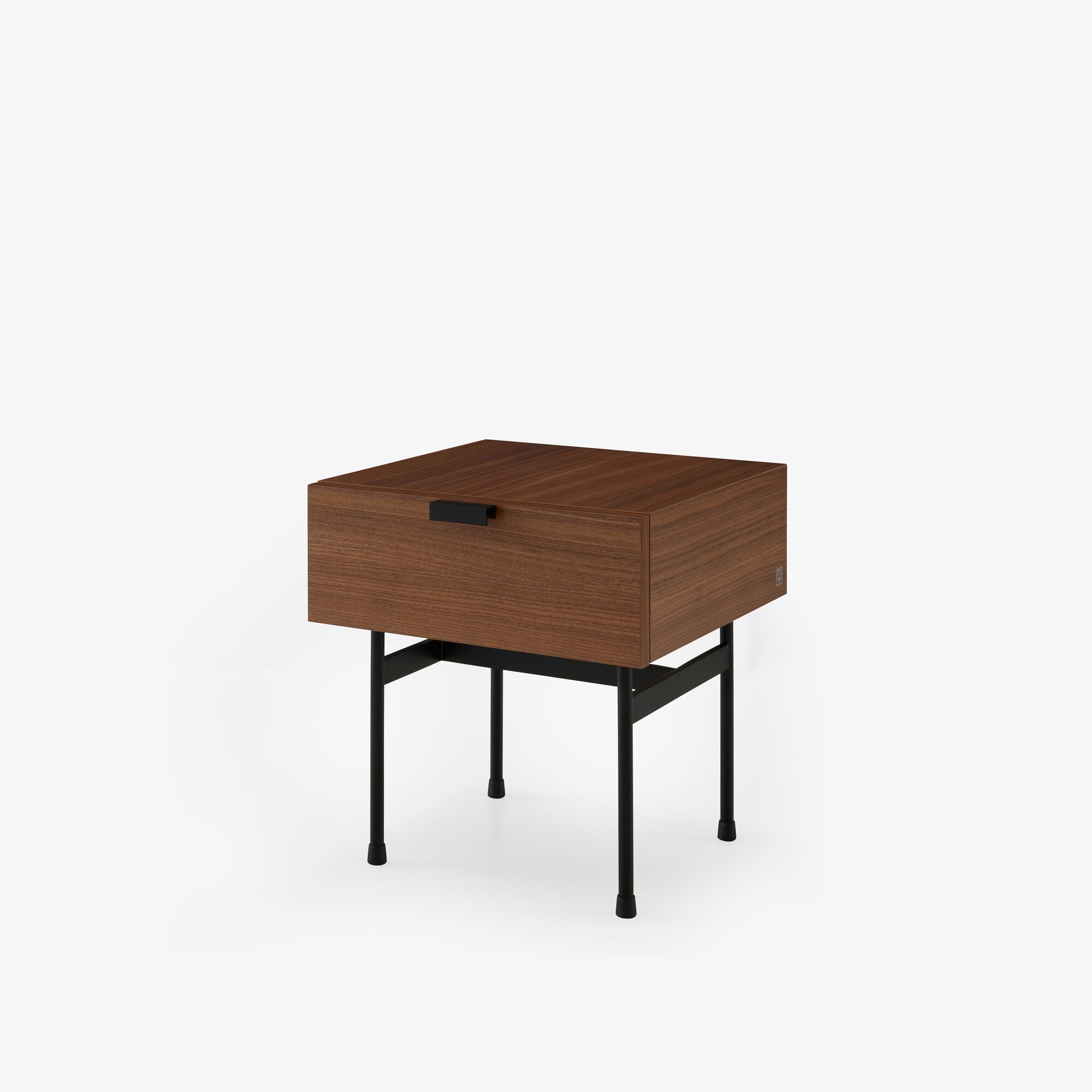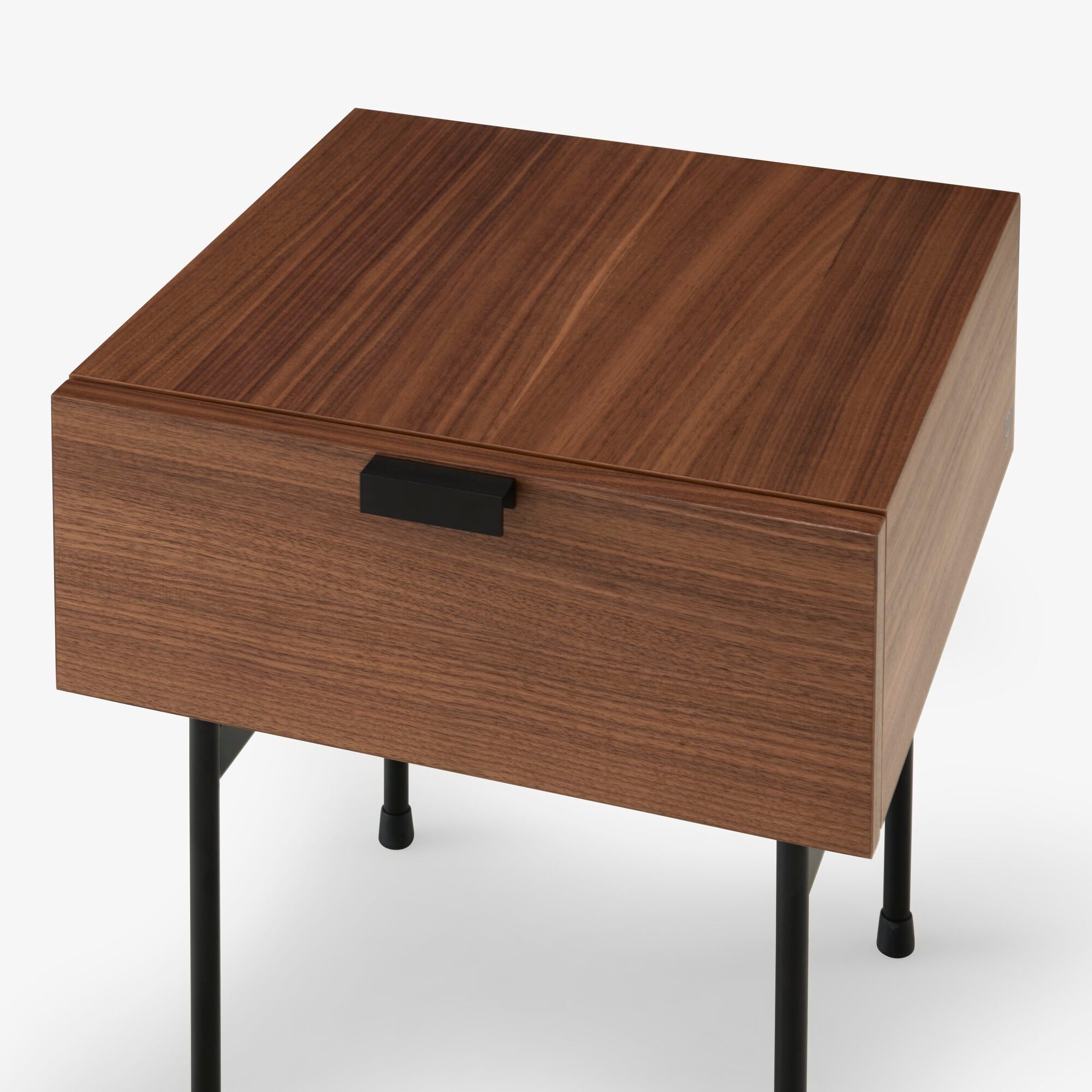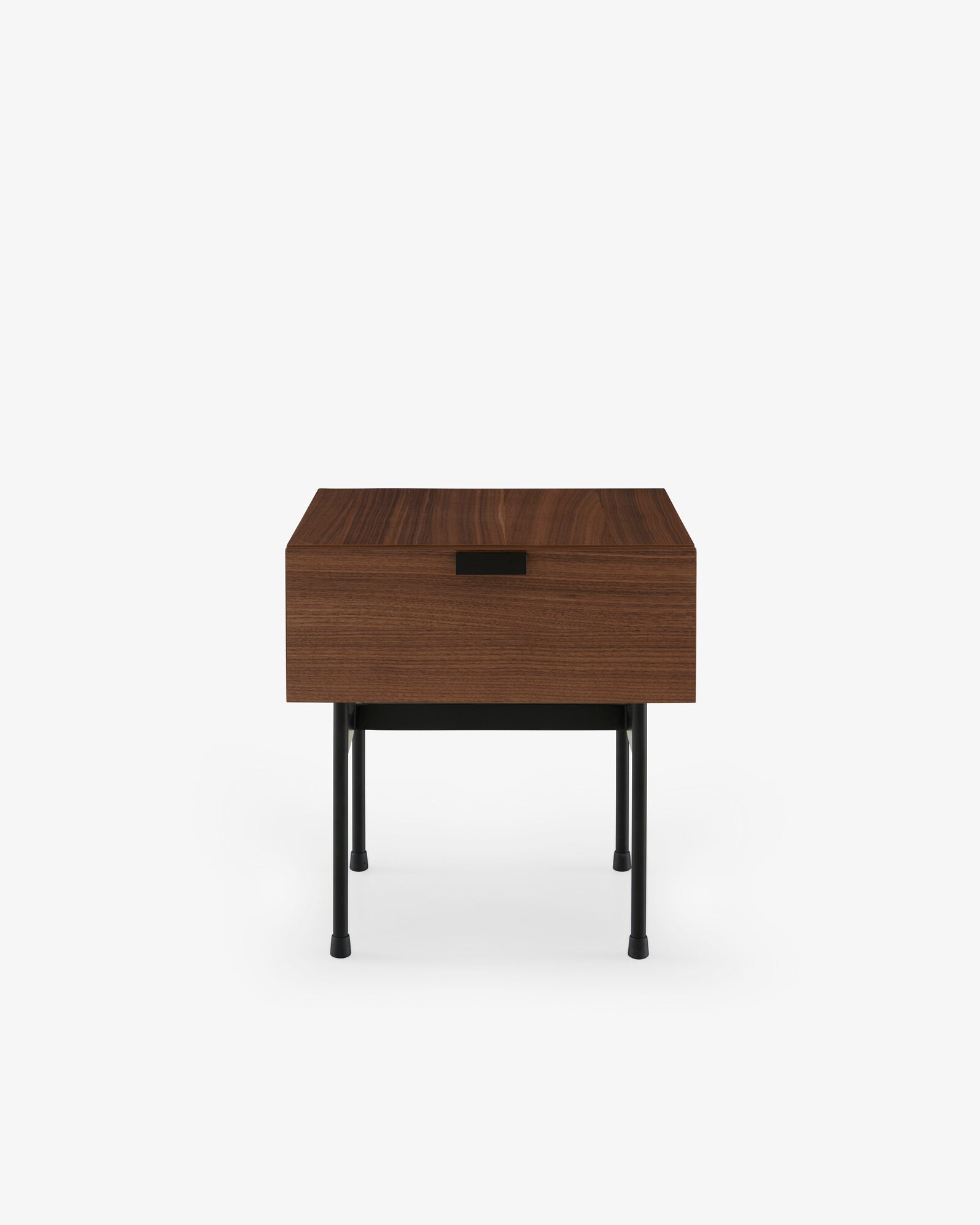 Et tidløst og klassisk nattbord med rene linjer som passer inn i mange forskjellige interiør! Bordet består av valnøtt med solid stål understell og en laminatoverflate som tåler mye.
