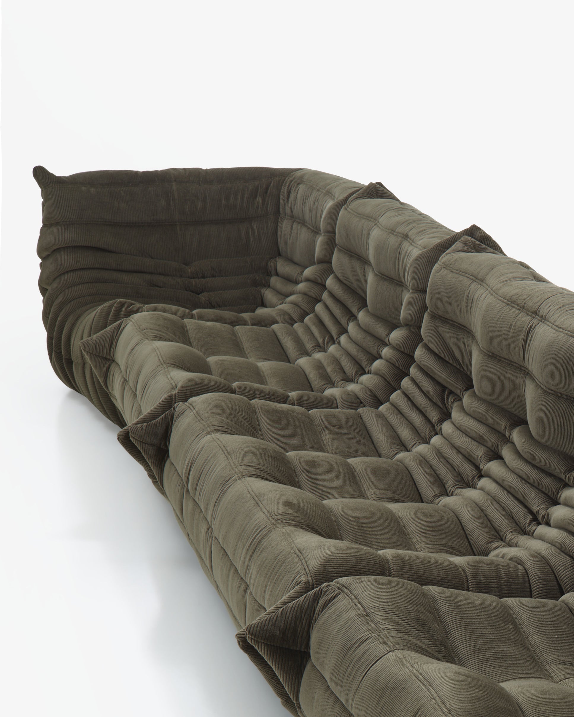Togo, designet av Michel Ducaroy for Ligne Roset i 1973, har i over førti år vært et ikon innen komfort, stil og tidløst design. Denne klassikeren er like populær i dag som den var da den først ble lansert, og har blitt et symbol på ekte sitteglede og estetikk. Med sin ergonomiske utforming og konstruksjon av flere tettheter polyeter-skum, skaper Togo en helt unik sitteopplevelse som omfavner kroppen. De quiltede, polstrede trekkene gir møbelet et mykt, innbydende uttrykk, mens den solide skumkonstruksjonen sikrer varig komfort og støtte.